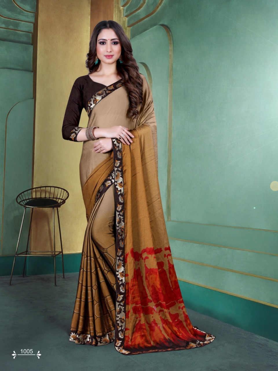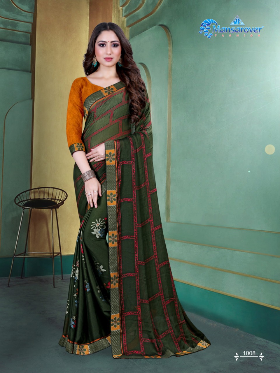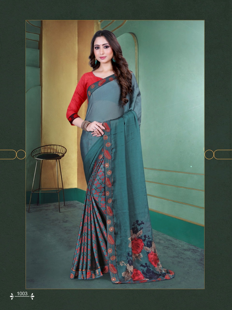 Karuna By Mansarover Fashion Moss Chiffon Print Exclusive Border Saree