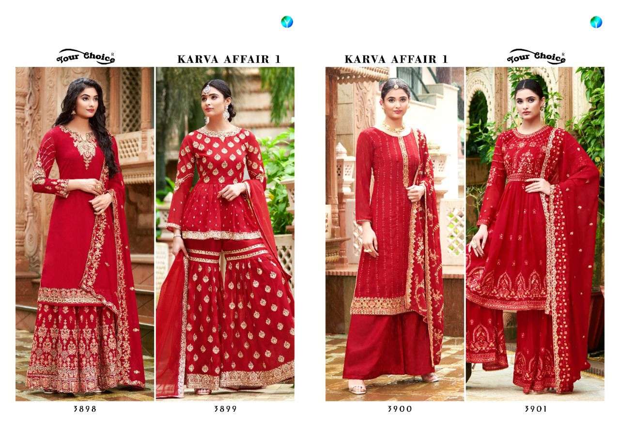 Your choiceâ  Karva chouth special We are presenting new concept *karva affair * sabysachi  petrn Red in 4 design 1 set in 4 pettern *Skirt-Peplum * Sarara- Duppta work CatlogâââKarva affairââ1 Fabrics Blooming Georgette        Blooming Georgette        inner botton santon        Blooming Georgette          3899 in nett duppta RateSâ 3898--2395/- 3899--2295/- length 39â 3900--1895/- 3901--2195/- Set to set Desâââ4 pcs only Deshpatchingââ Wendusday Limited stock booking fast Limited stock booking fast |