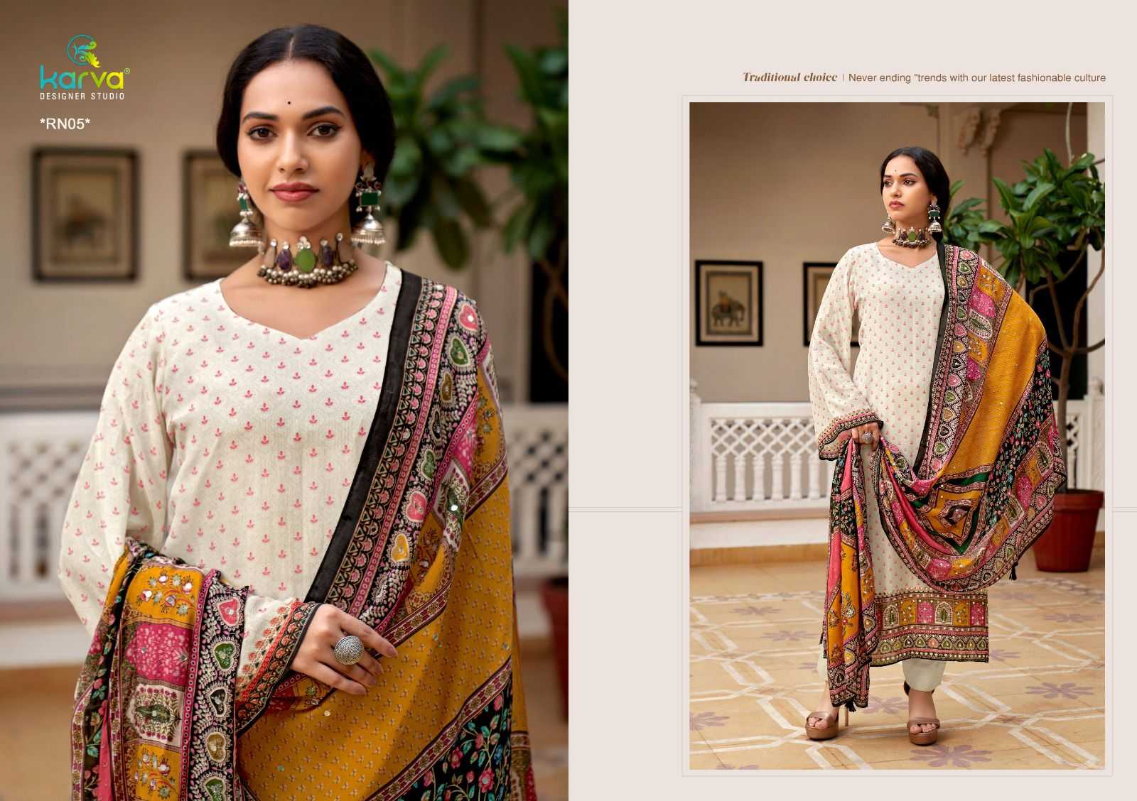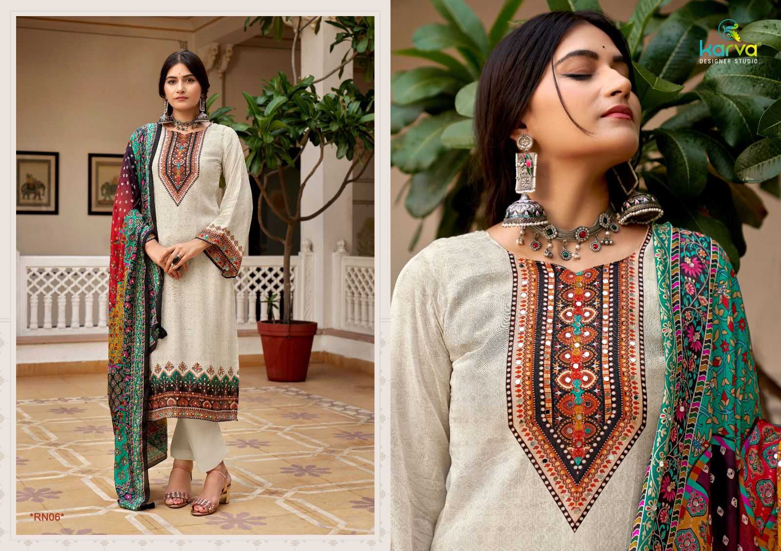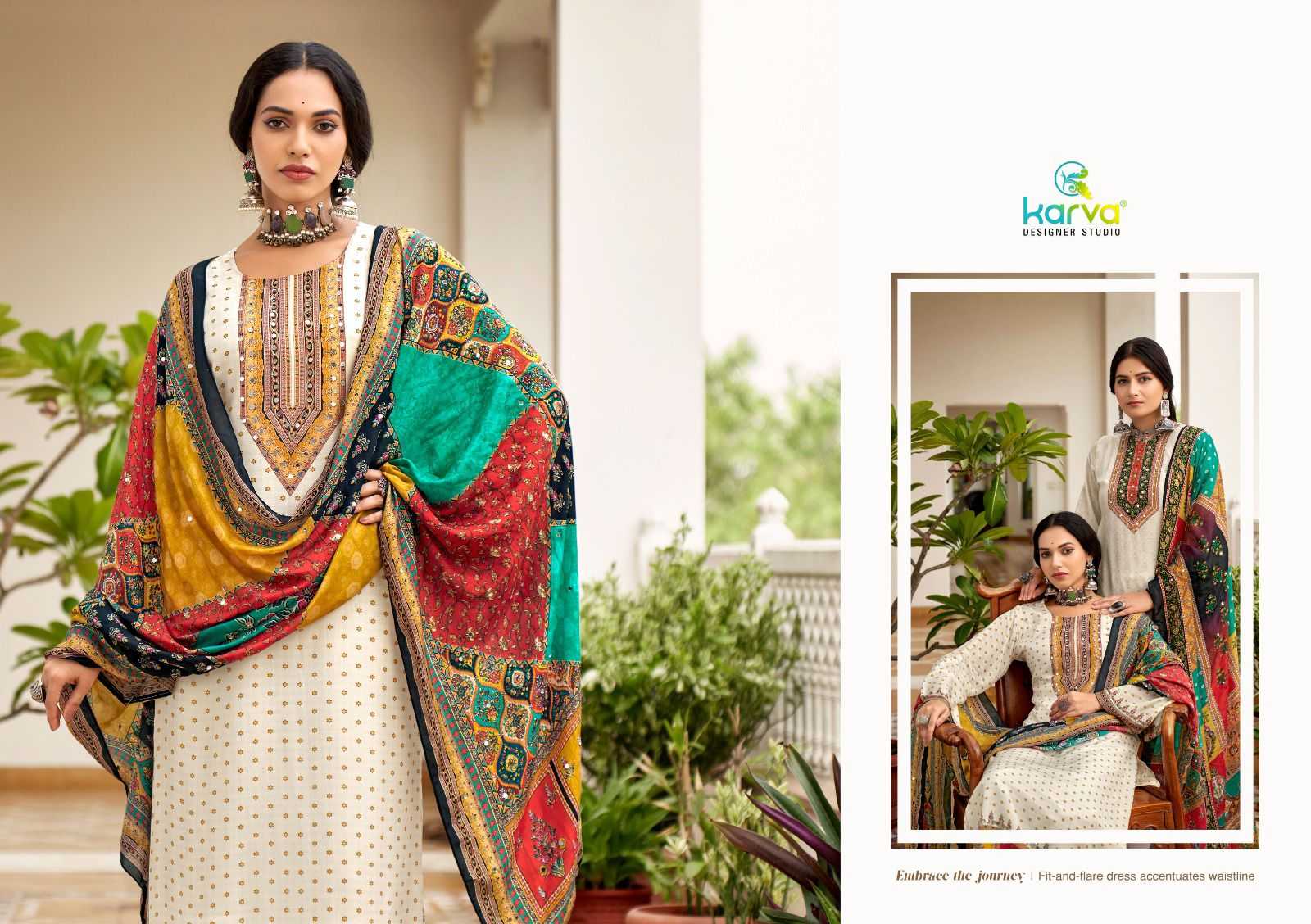 Karva Designer Studio Presents Latest Collection Launched on 03-10-2024. Presenting Beautiful collection of 6 PCS with Unstitched .