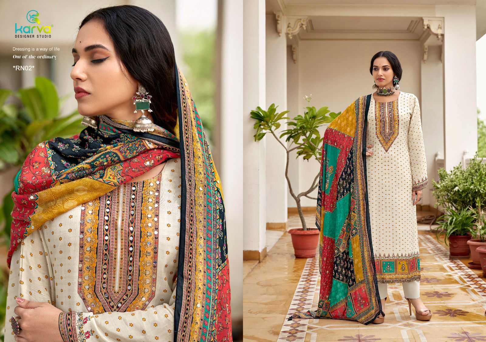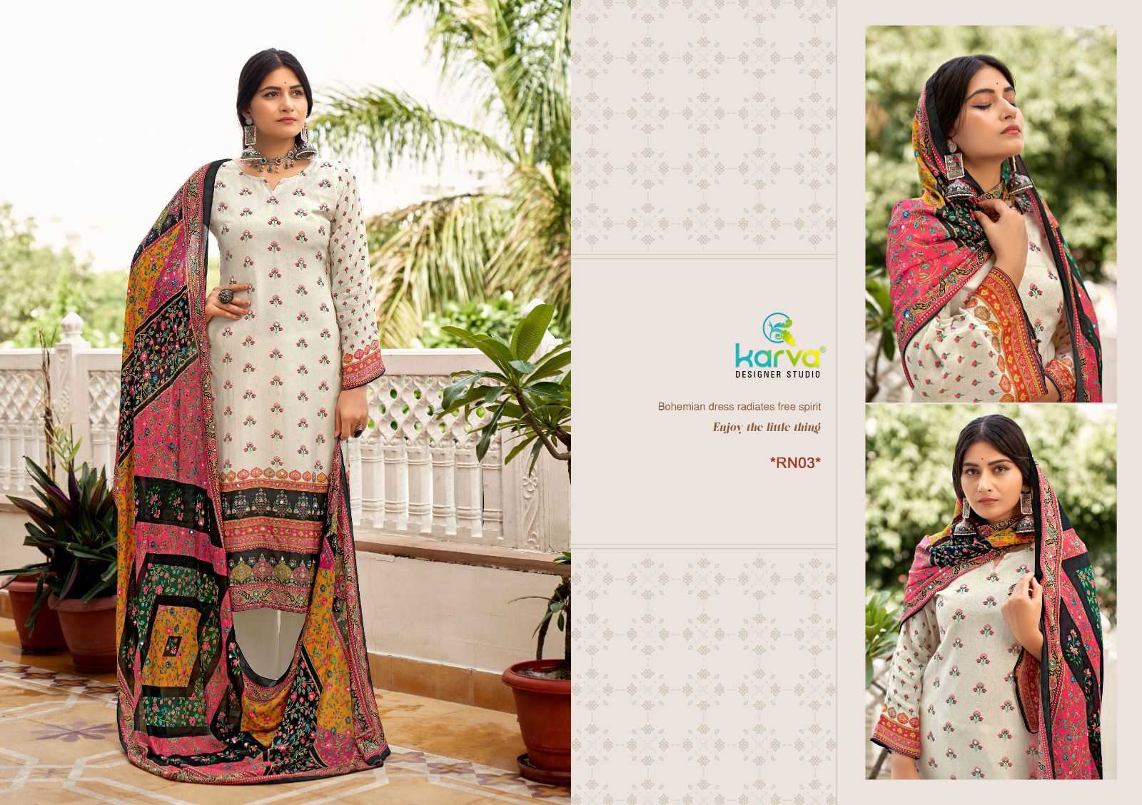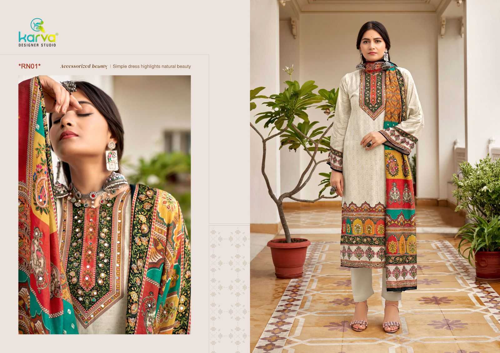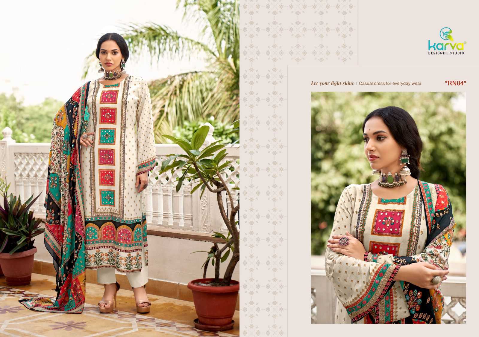 Karva Designer Studio Presents Latest Collection Launched on 03-10-2024. Presenting Beautiful collection of 6 PCS with Unstitched .
