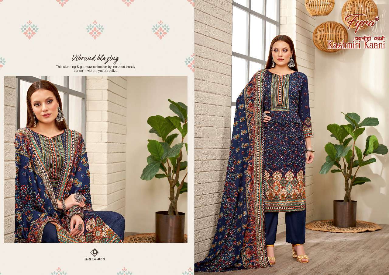 👗 Fyra Designing Hub by Alok Suit - Make in India 👗 Launches its New Catalog: KASHMIRI KAANI Fabric Details: 👖 BOTTOM: Pure Spun Pashmina Dyed 🧣 DUPPATTA: Pure Pashmina Print Dupatta SetRate: 3️⃣4️⃣1️⃣+5️⃣% GST ❌8️⃣pcs |
