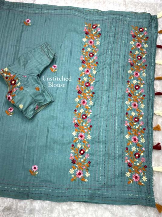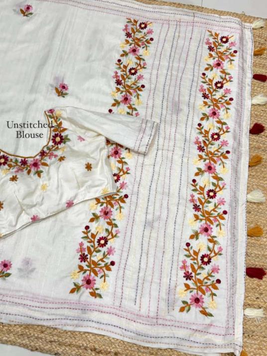 kashmiri tusser cotton embroidered work saree exports
