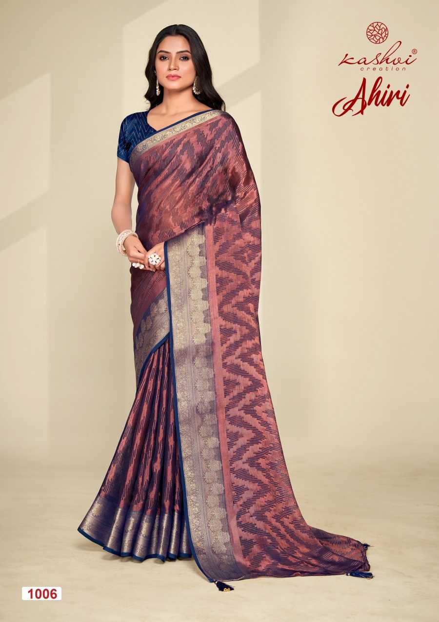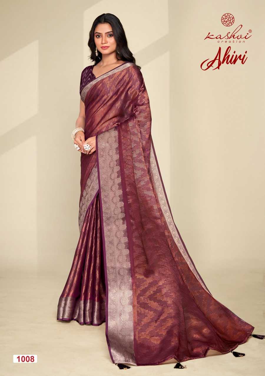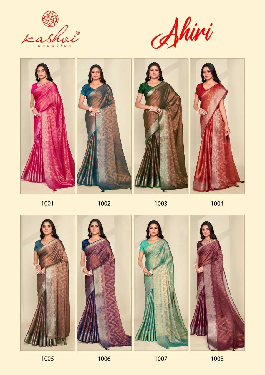 kashvi creation ahiri 1001-1008 fancy function wear brasso sarees