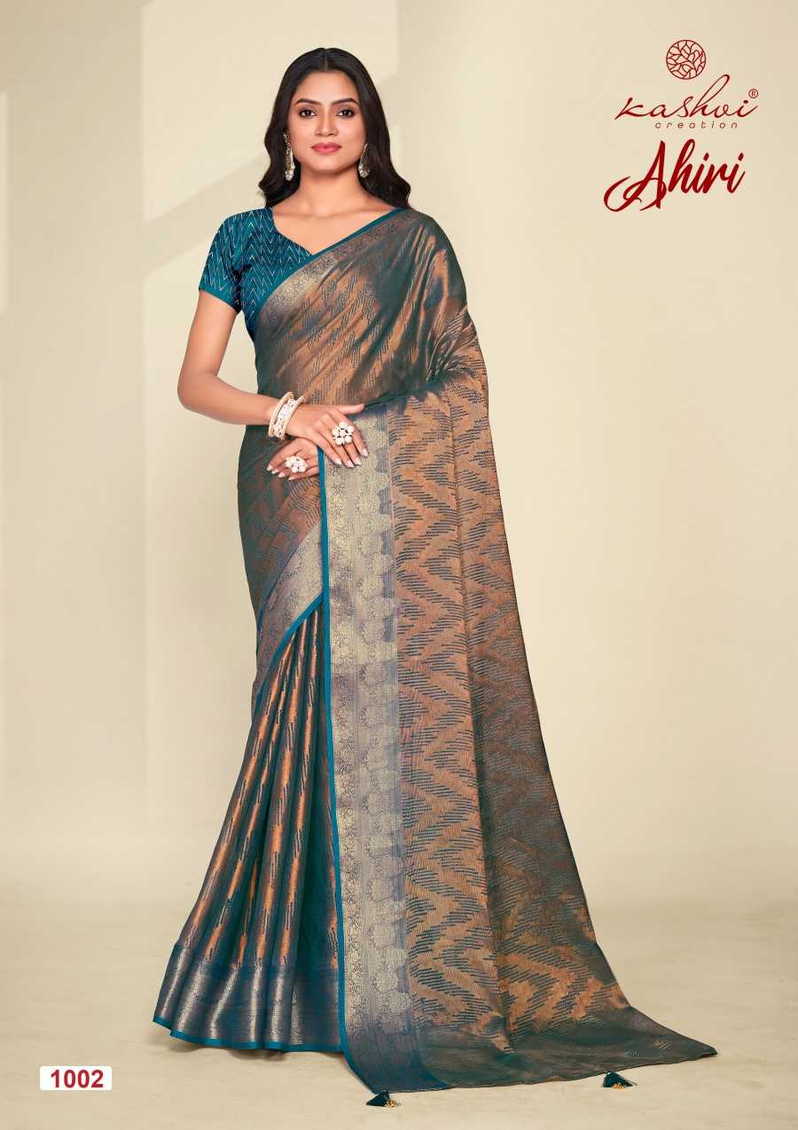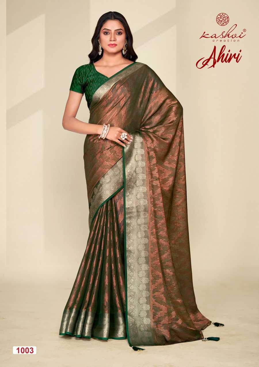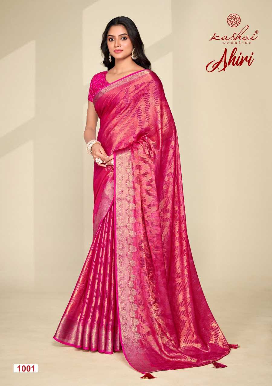 kashvi creation ahiri 1001-1008 fancy function wear brasso sarees