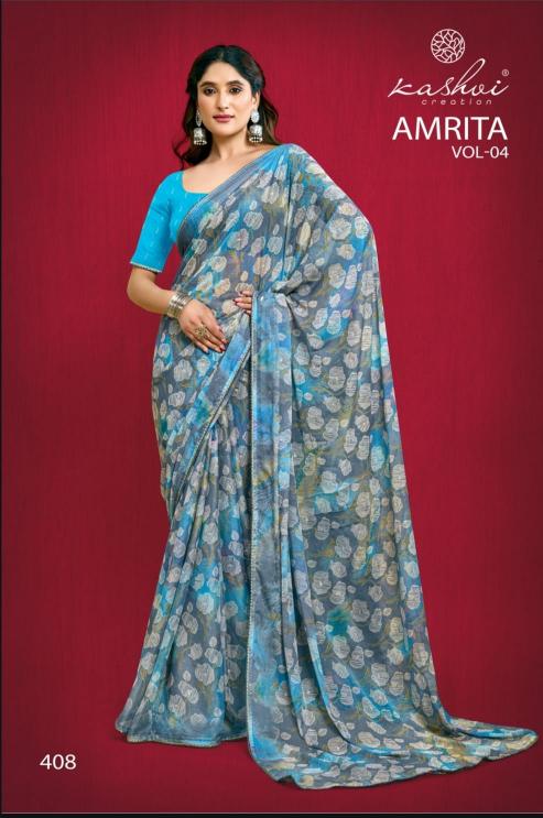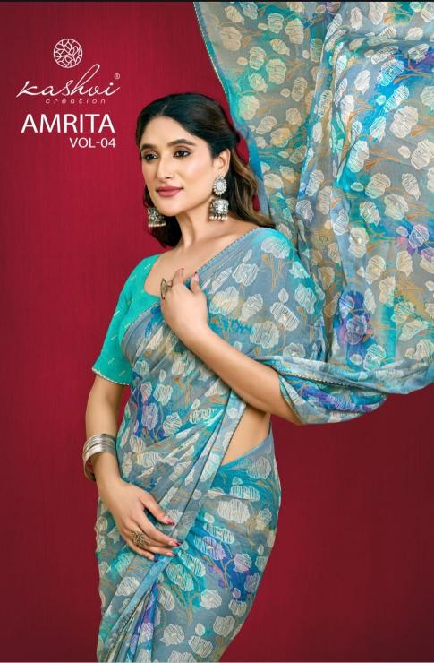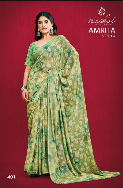 kashvi creation amrita vol 4 dull moss pretty look saree wholesaler