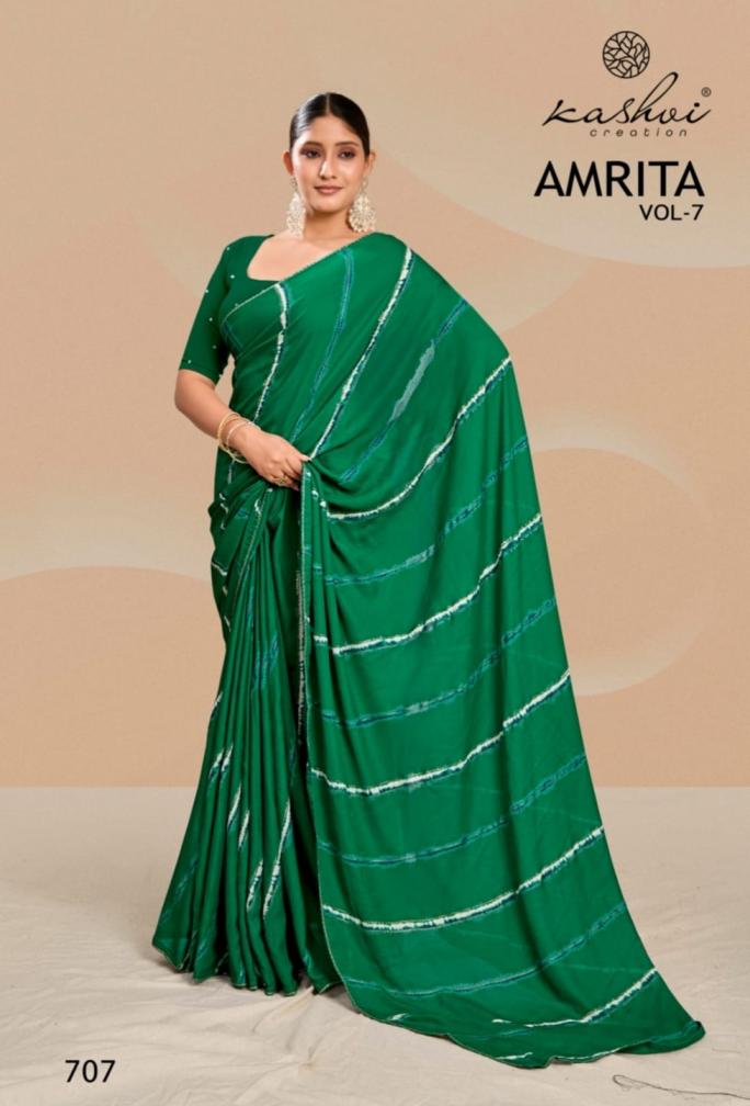 kashvi creation amrita vol 7 amazing dull moss saree for womens