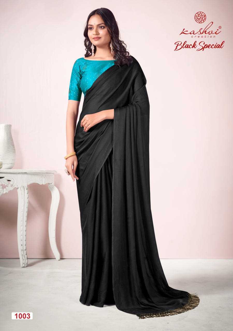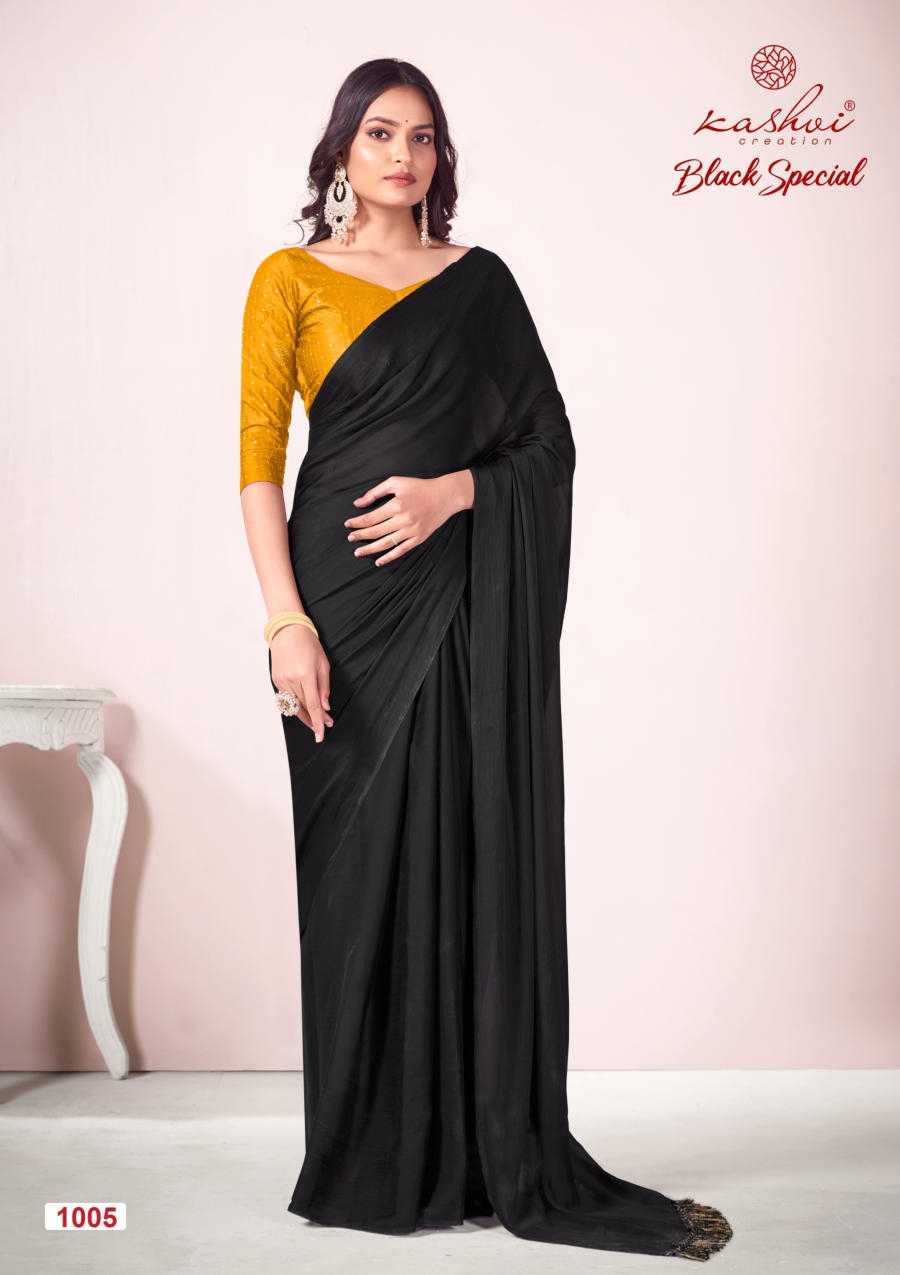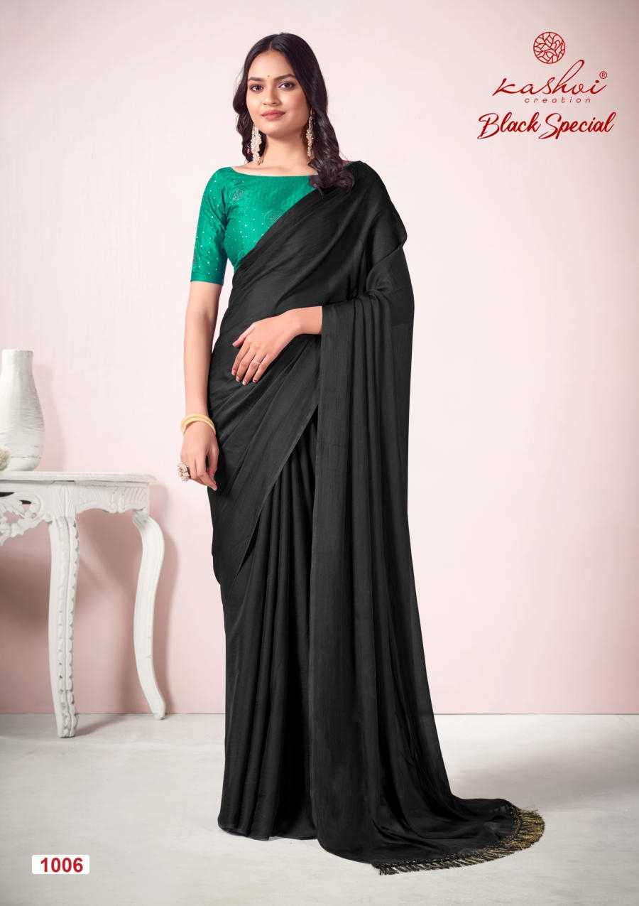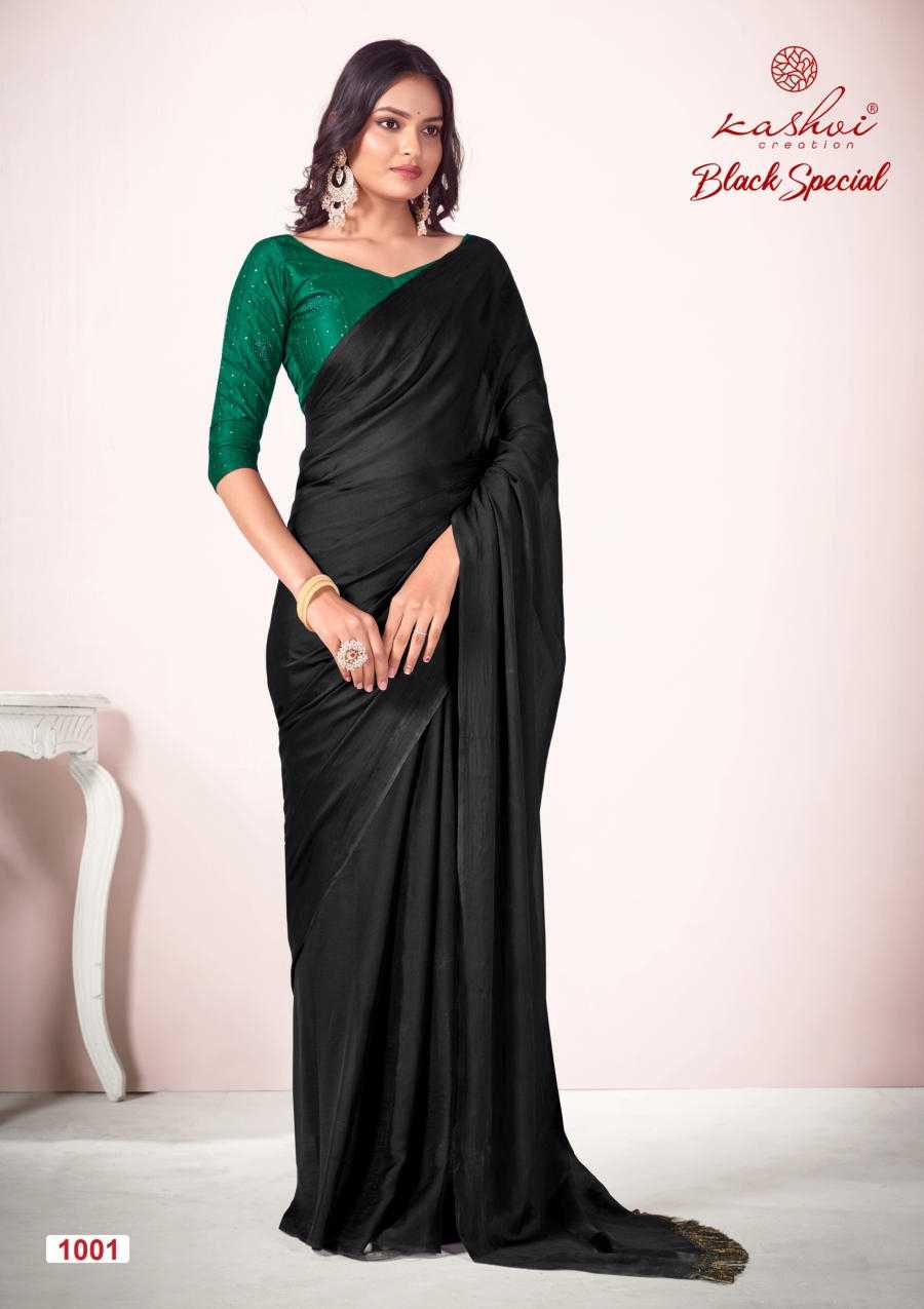 kashvi creation black special fancy dull moss saree with embroidery blouse collection