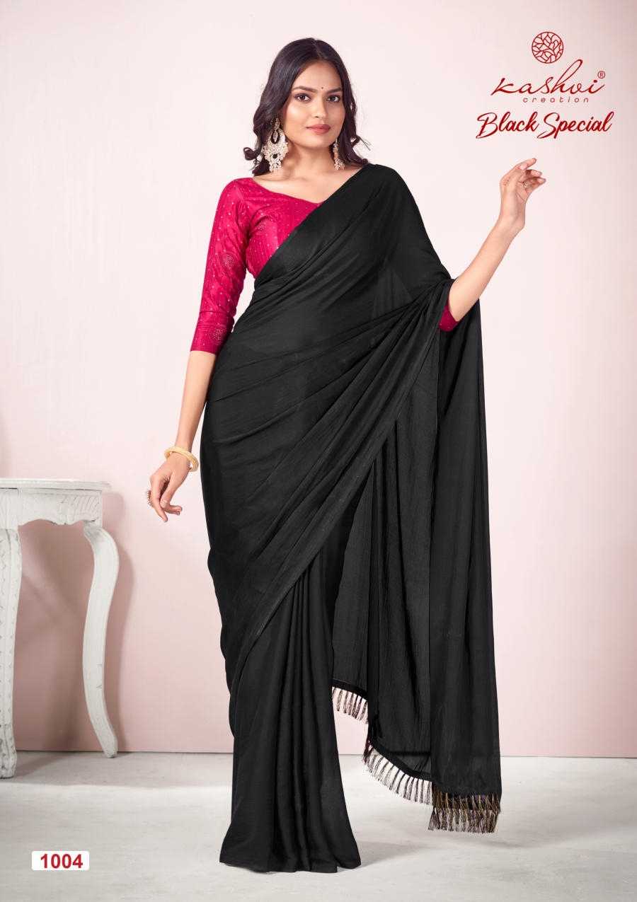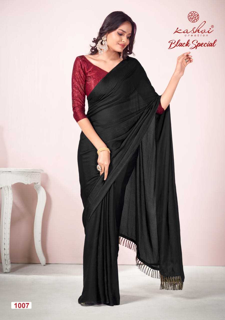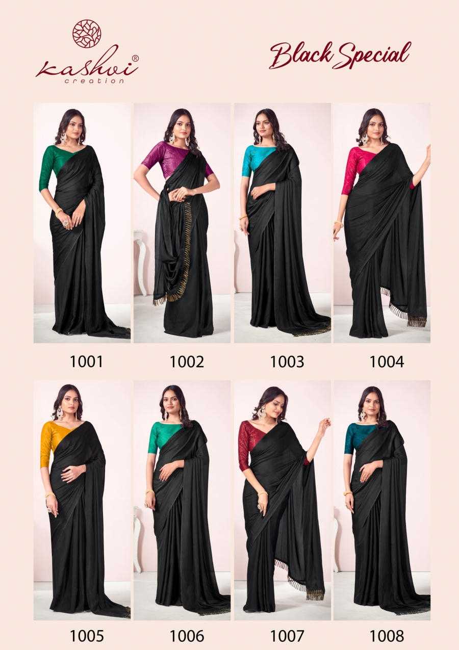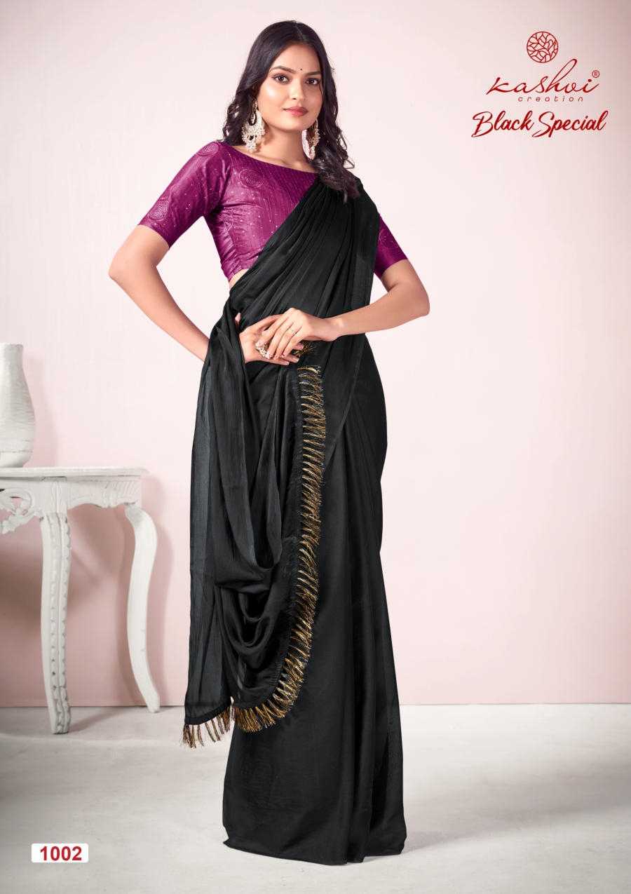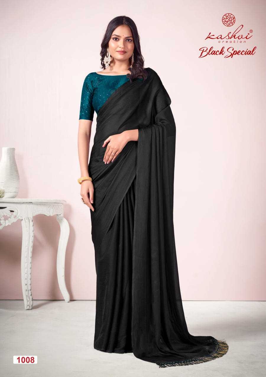kashvi creation black special fancy dull moss saree with embroidery blouse collection