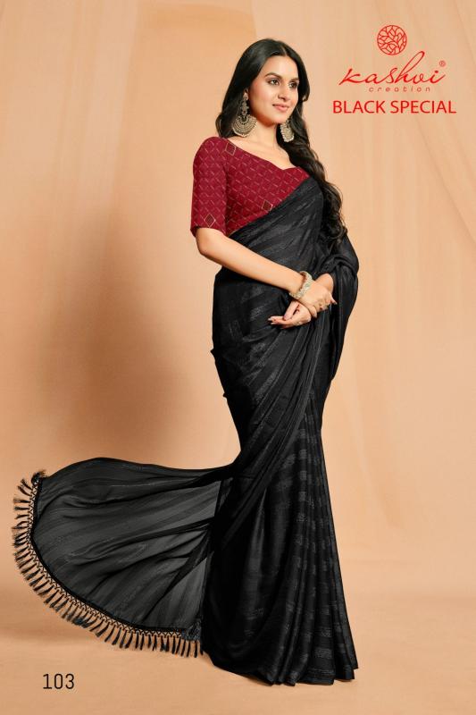 kashvi creation launch black special rimzim latest bold and beautiful saree