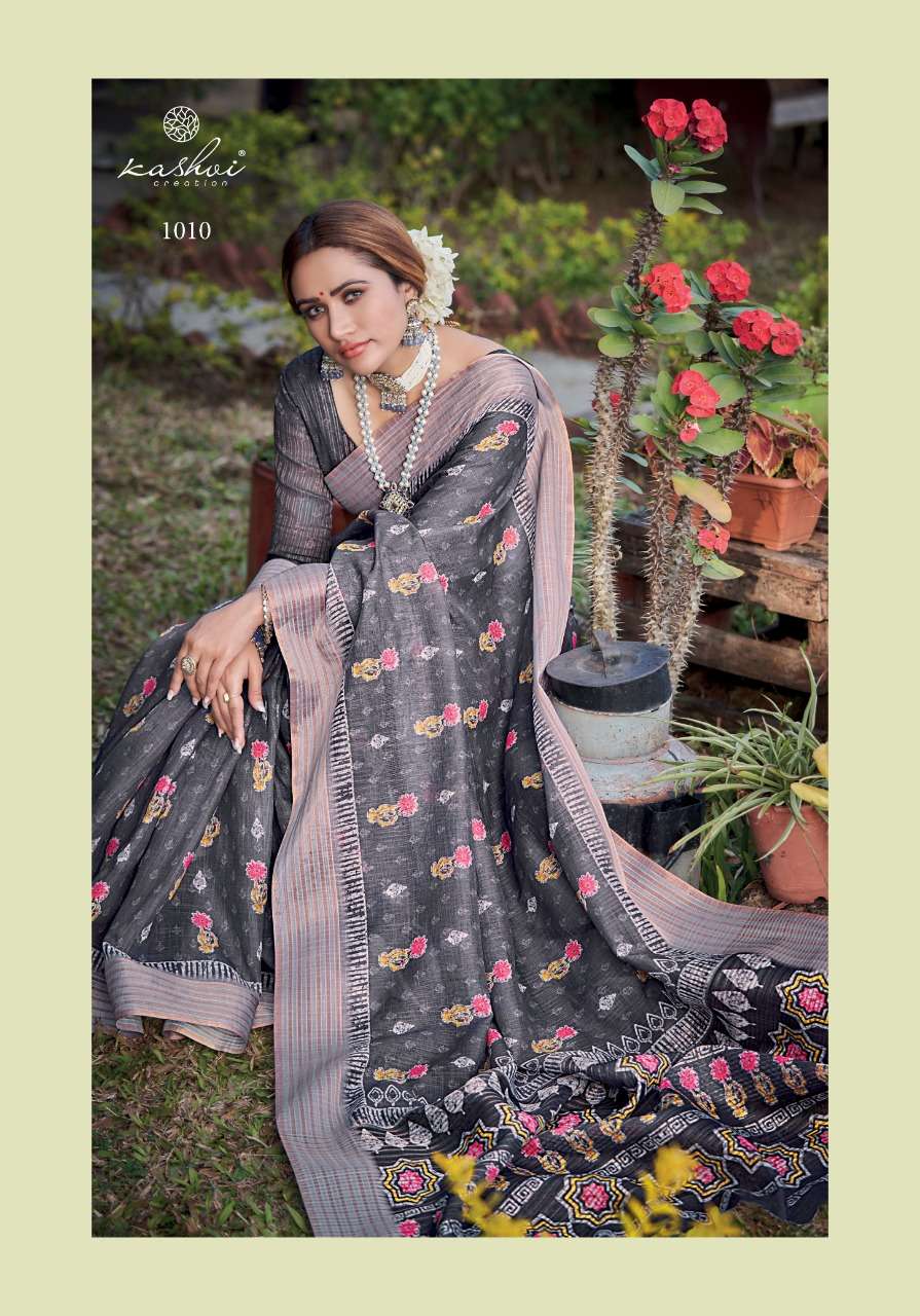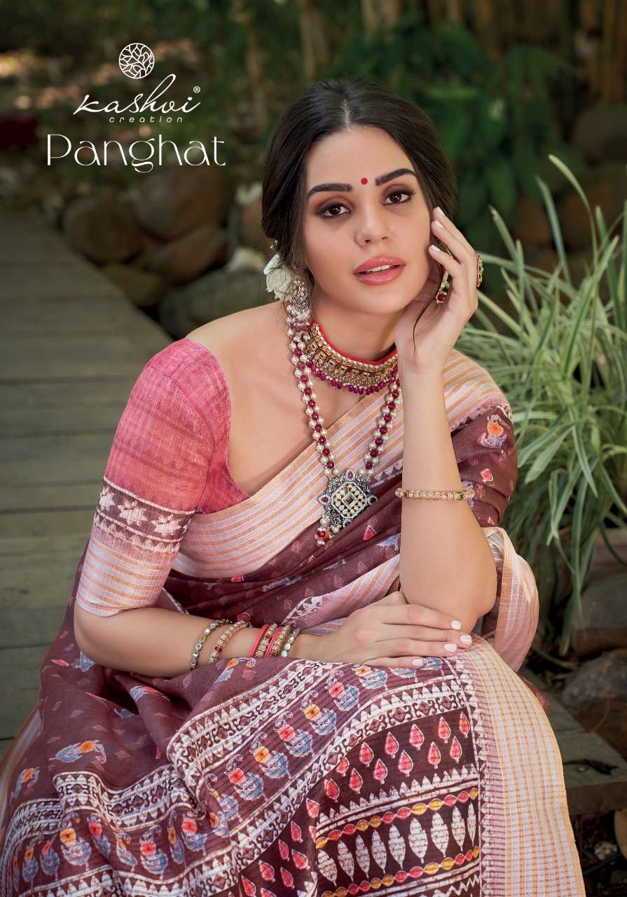 kashvi creation panghat linen silk digital printed good looking sarees collection