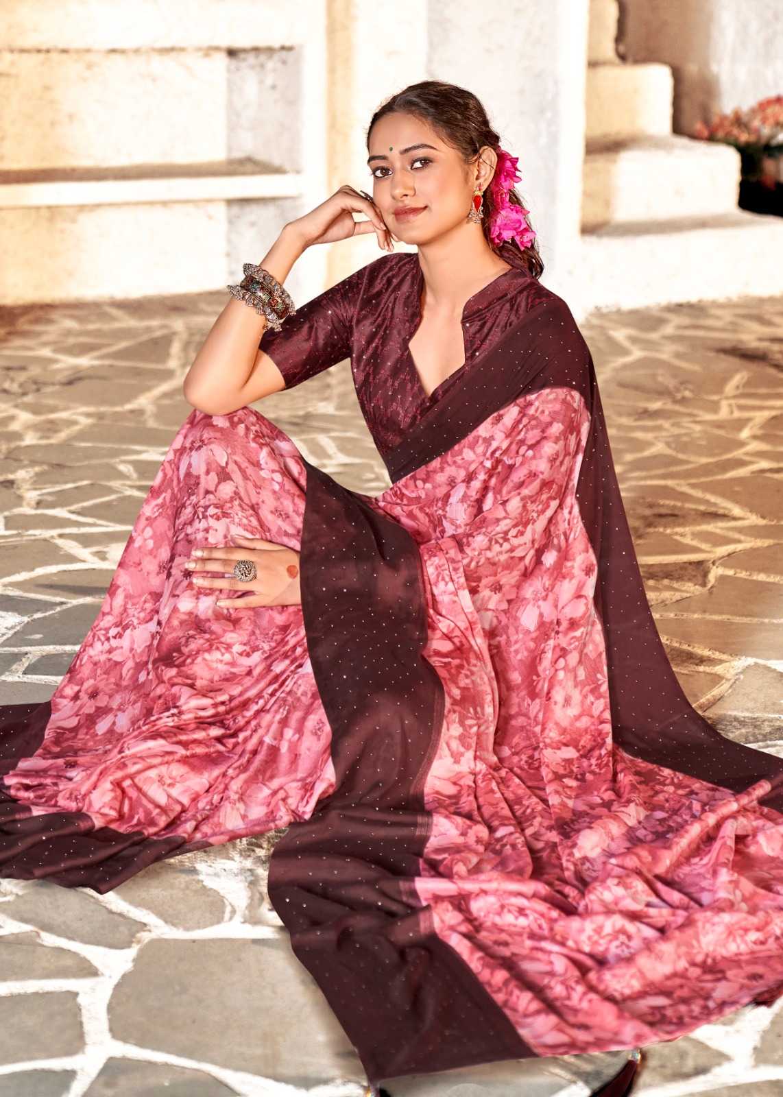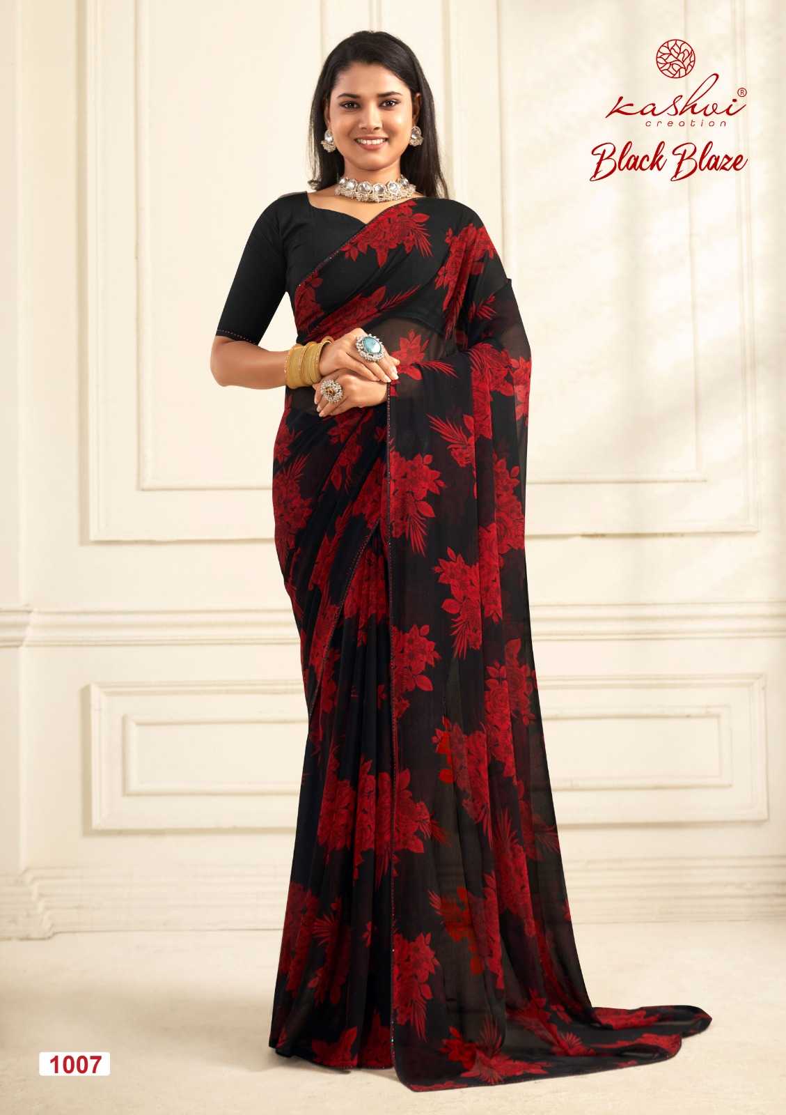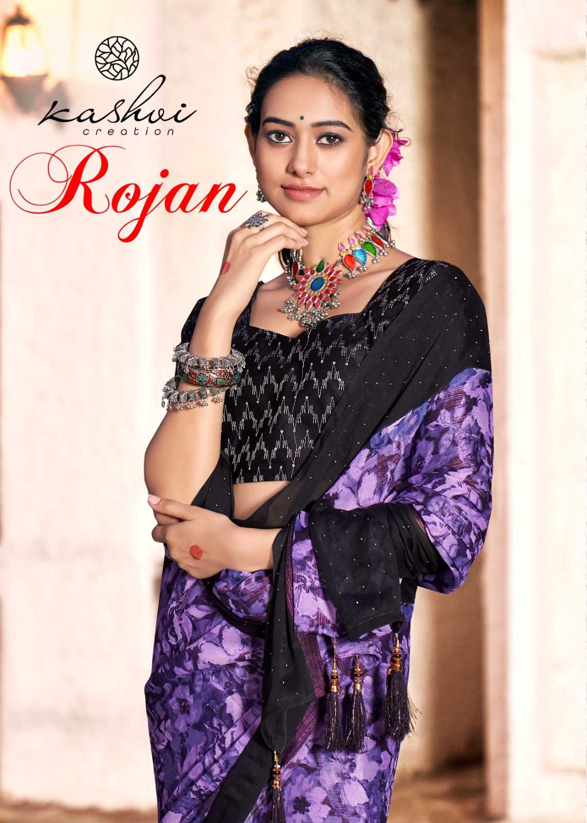 kashvi creation rojan fancy crape saree with embroidery blouse