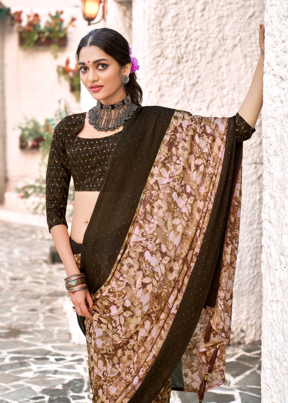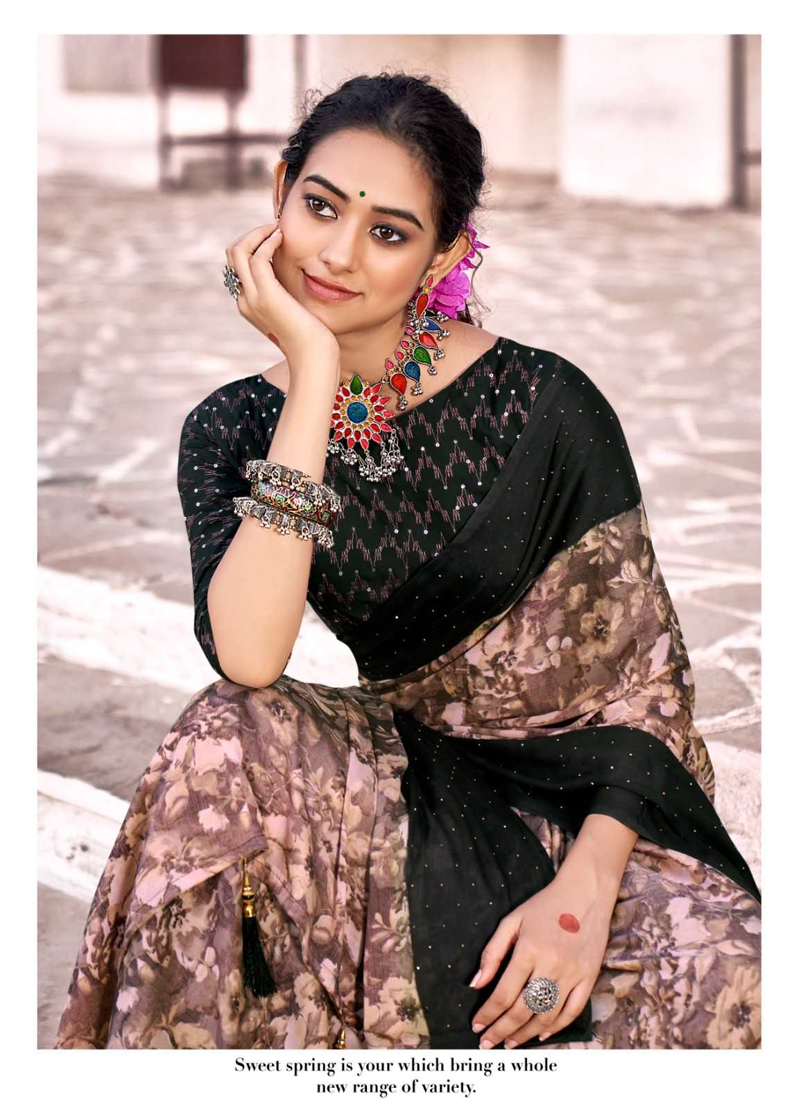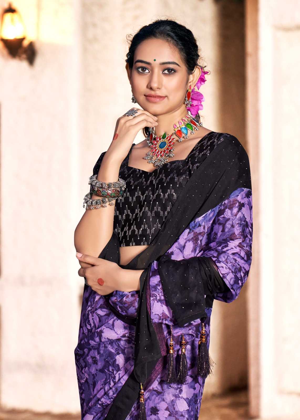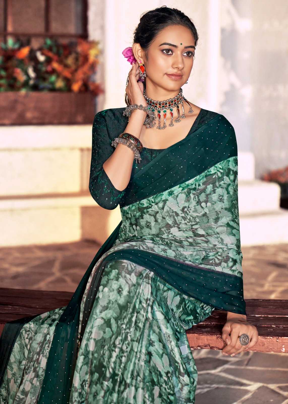kashvi creation rojan fancy crape saree with embroidery blouse
