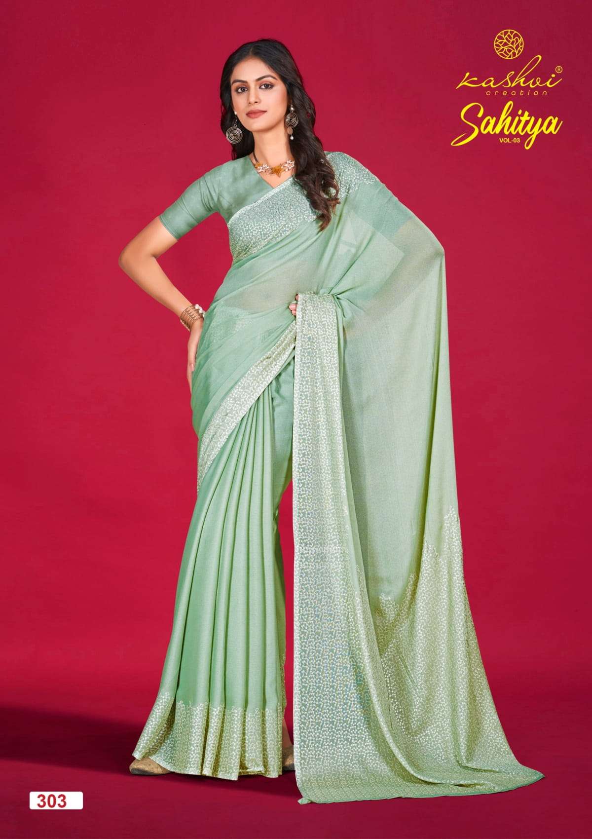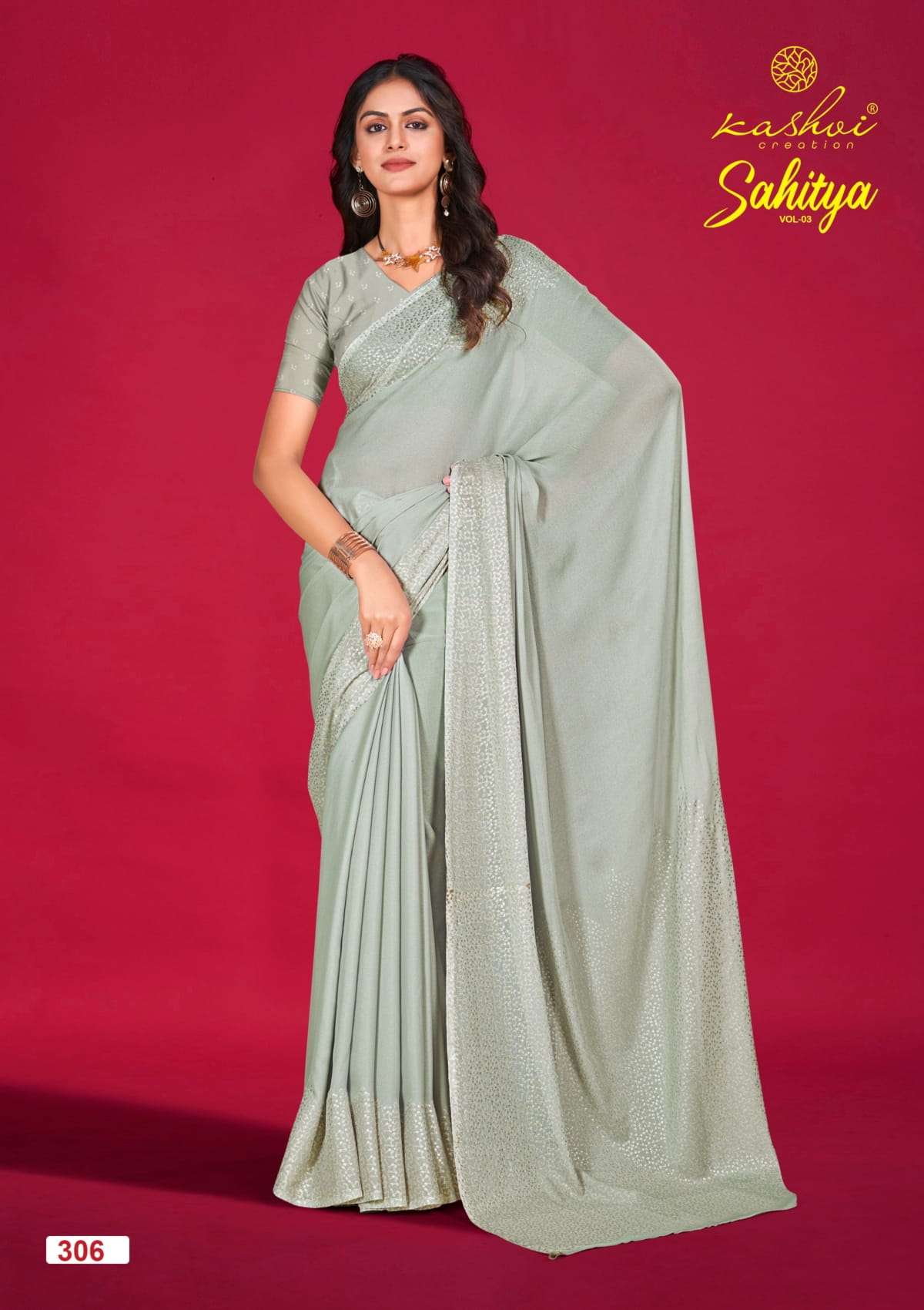 kashvi creation sahitya vol 3 dull moss print best saree online