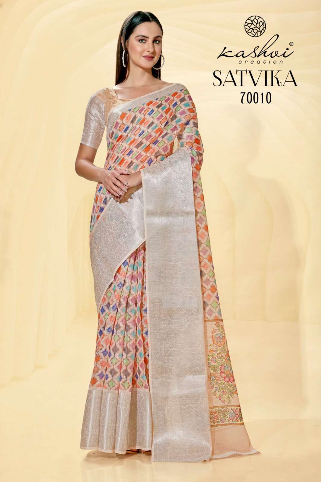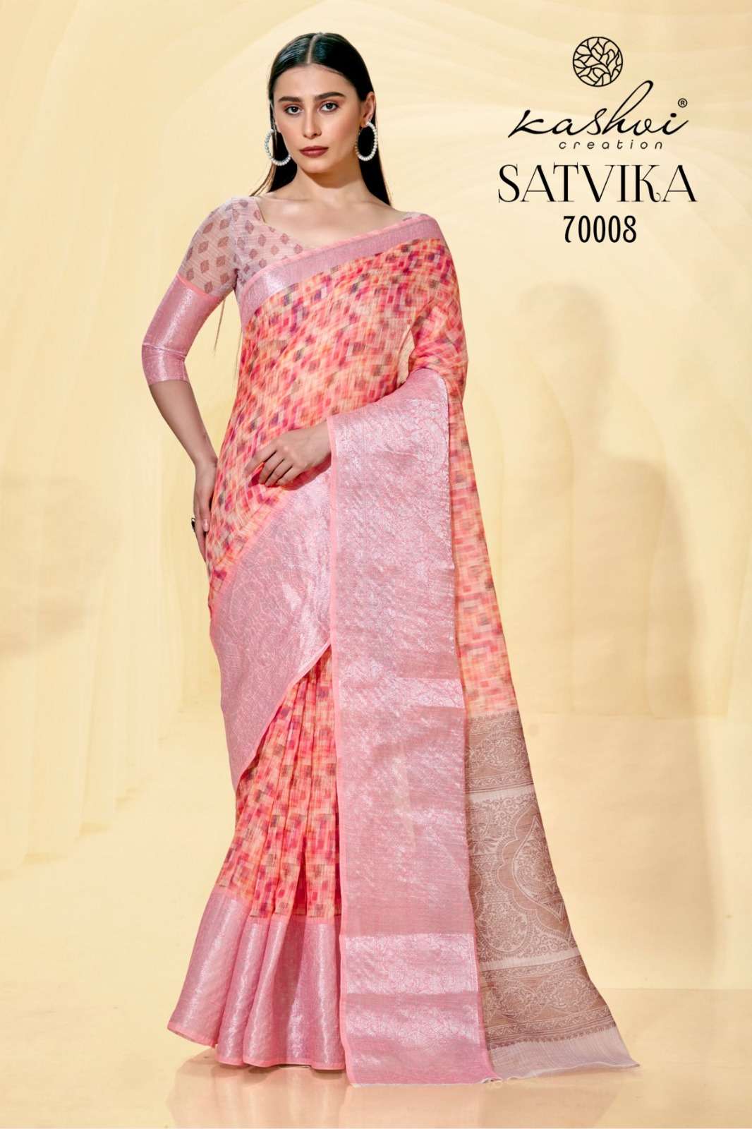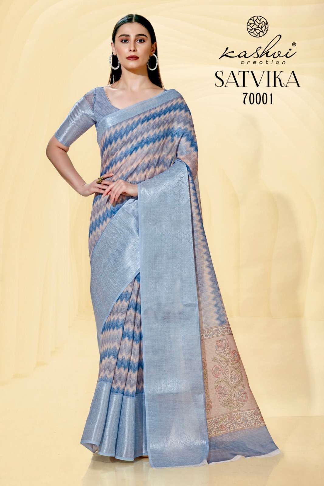 kashvi creation satvika fancy linen jacquard sarees wholesaler