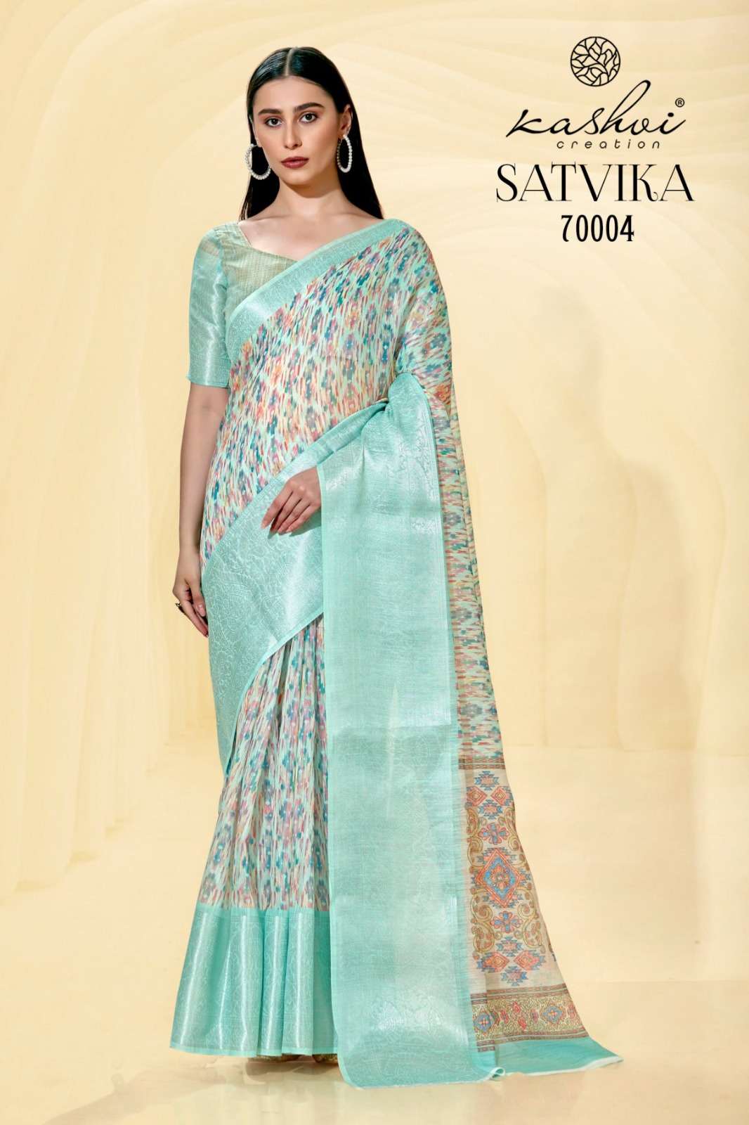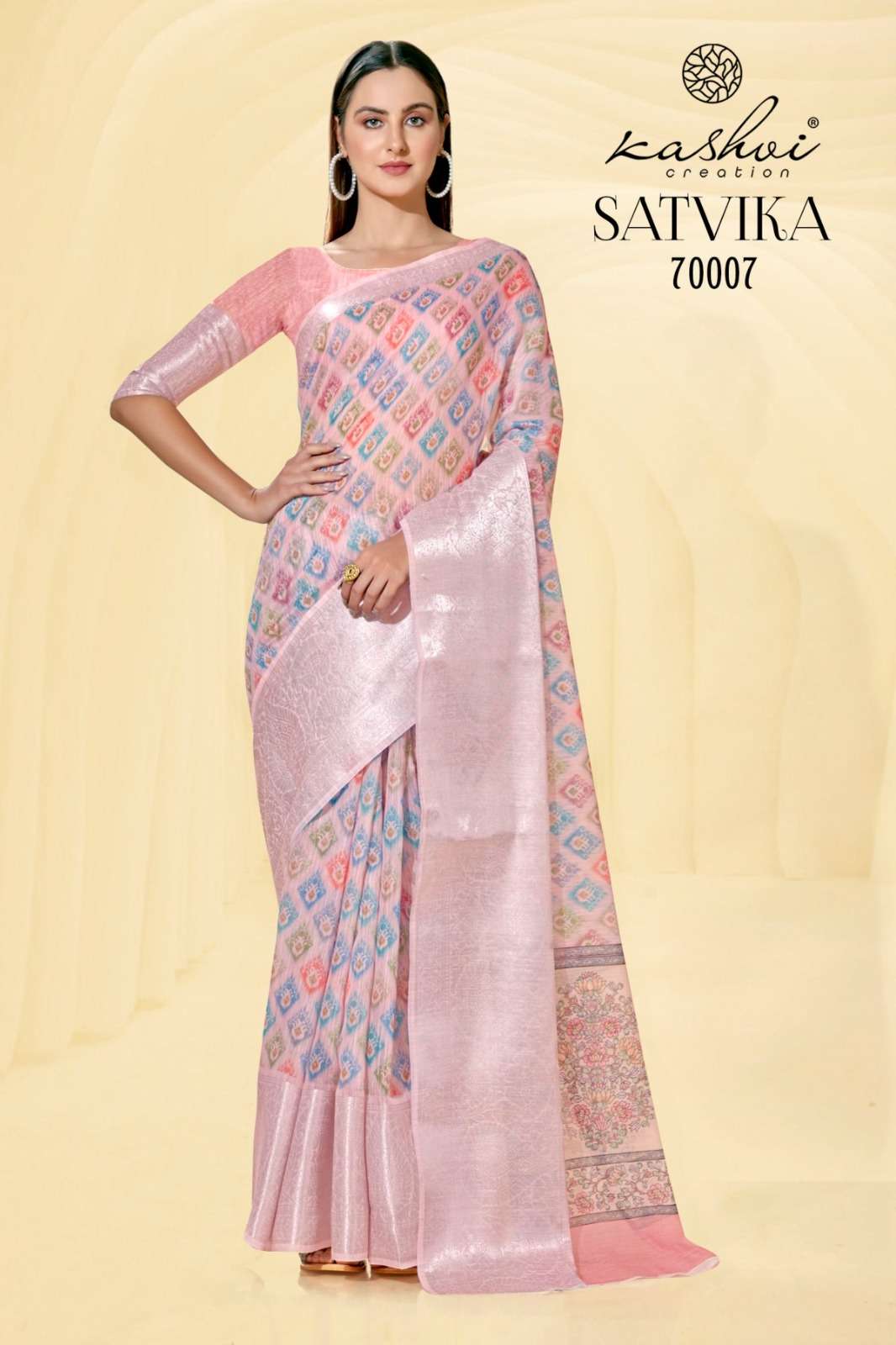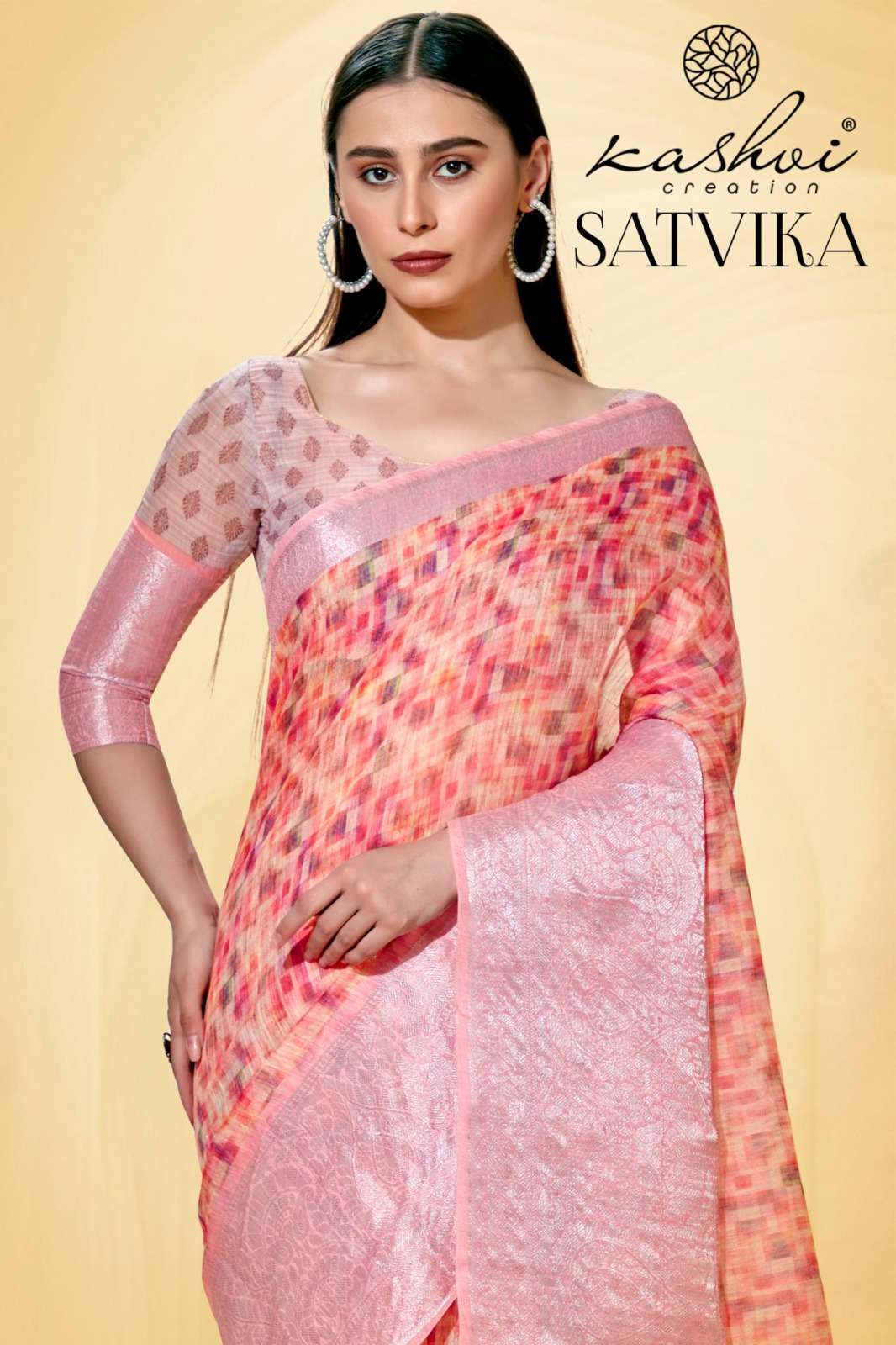 kashvi creation satvika fancy linen jacquard sarees wholesaler