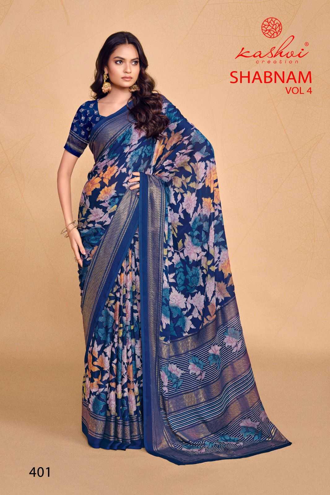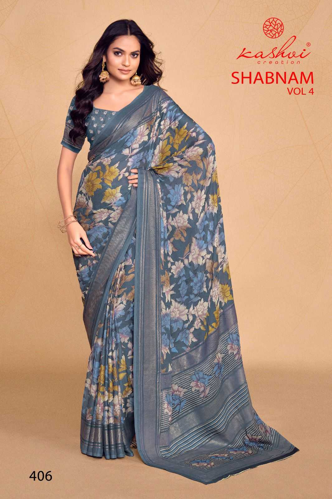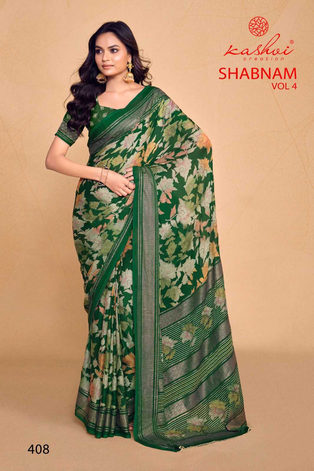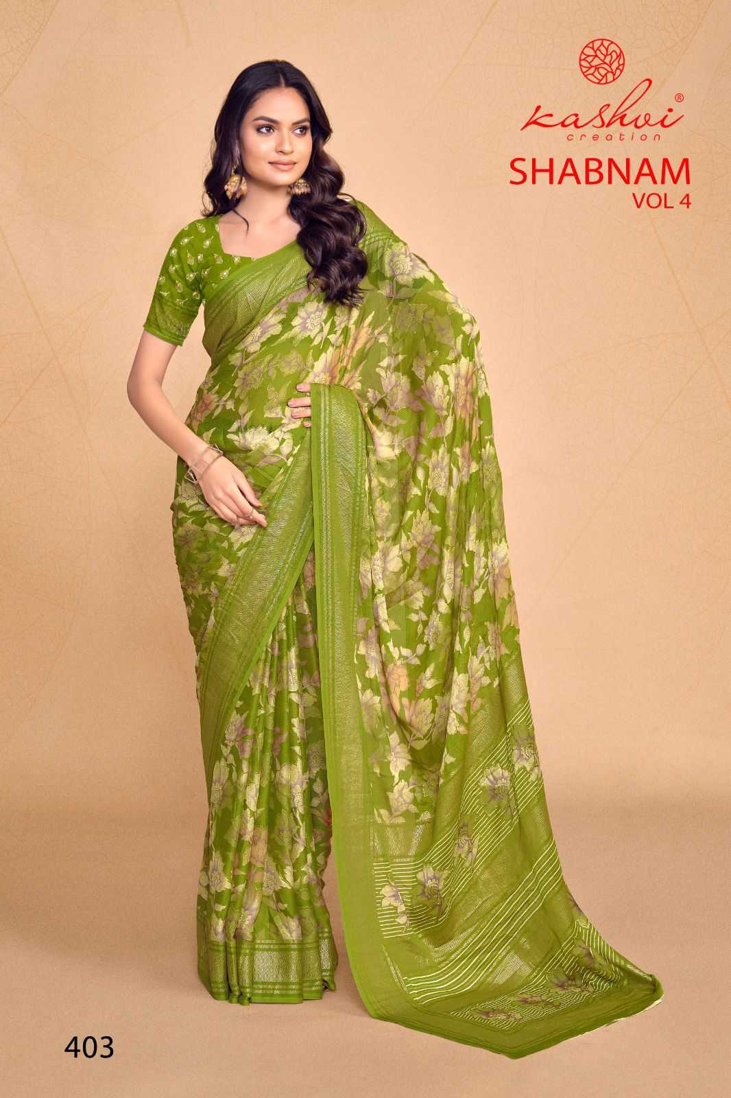 kashvi creation shabnam vol 4 dull moss foil printed saree