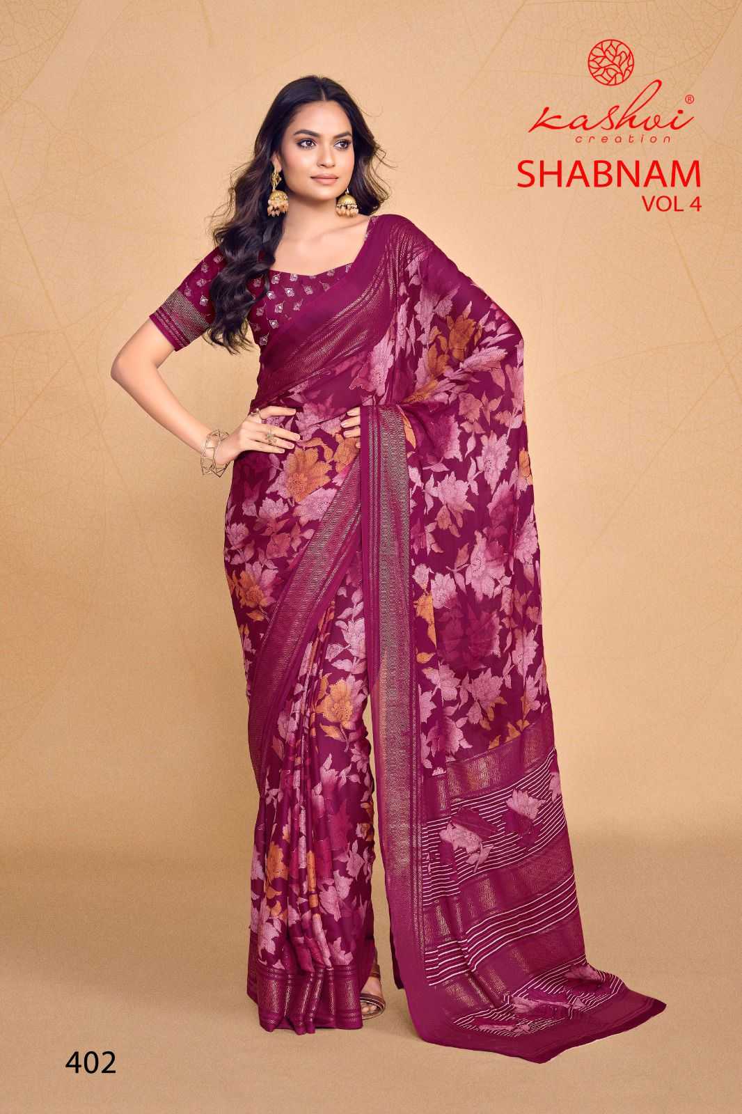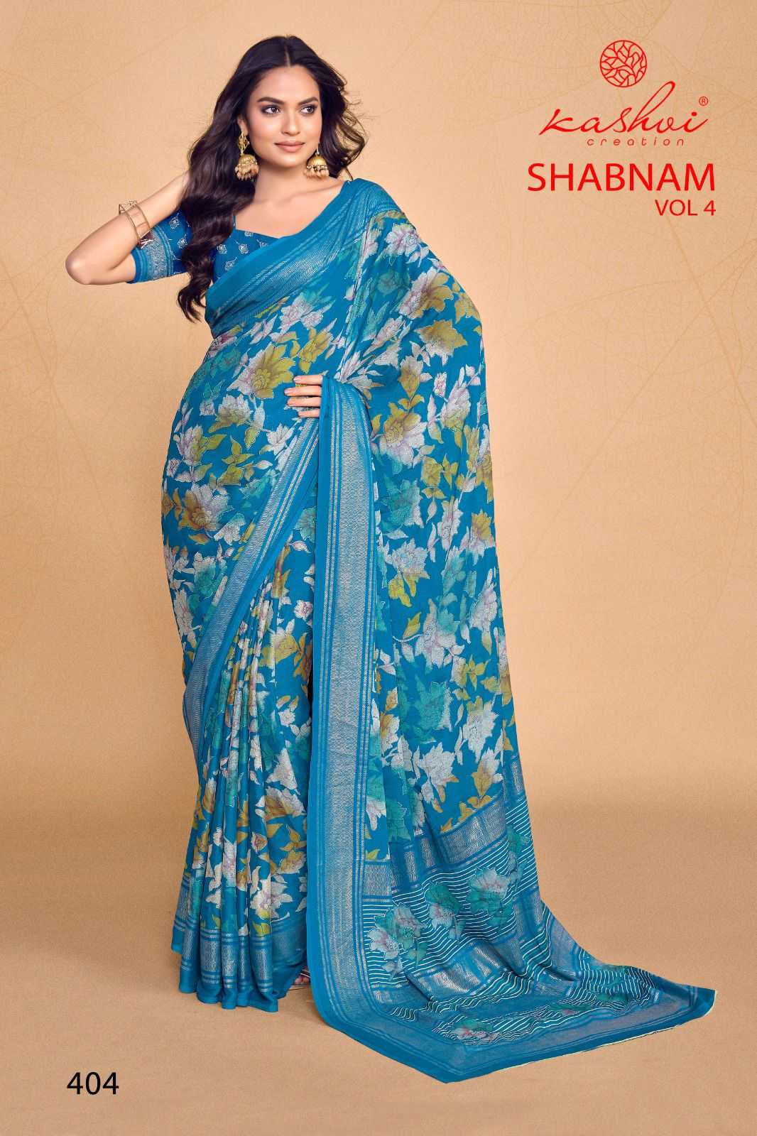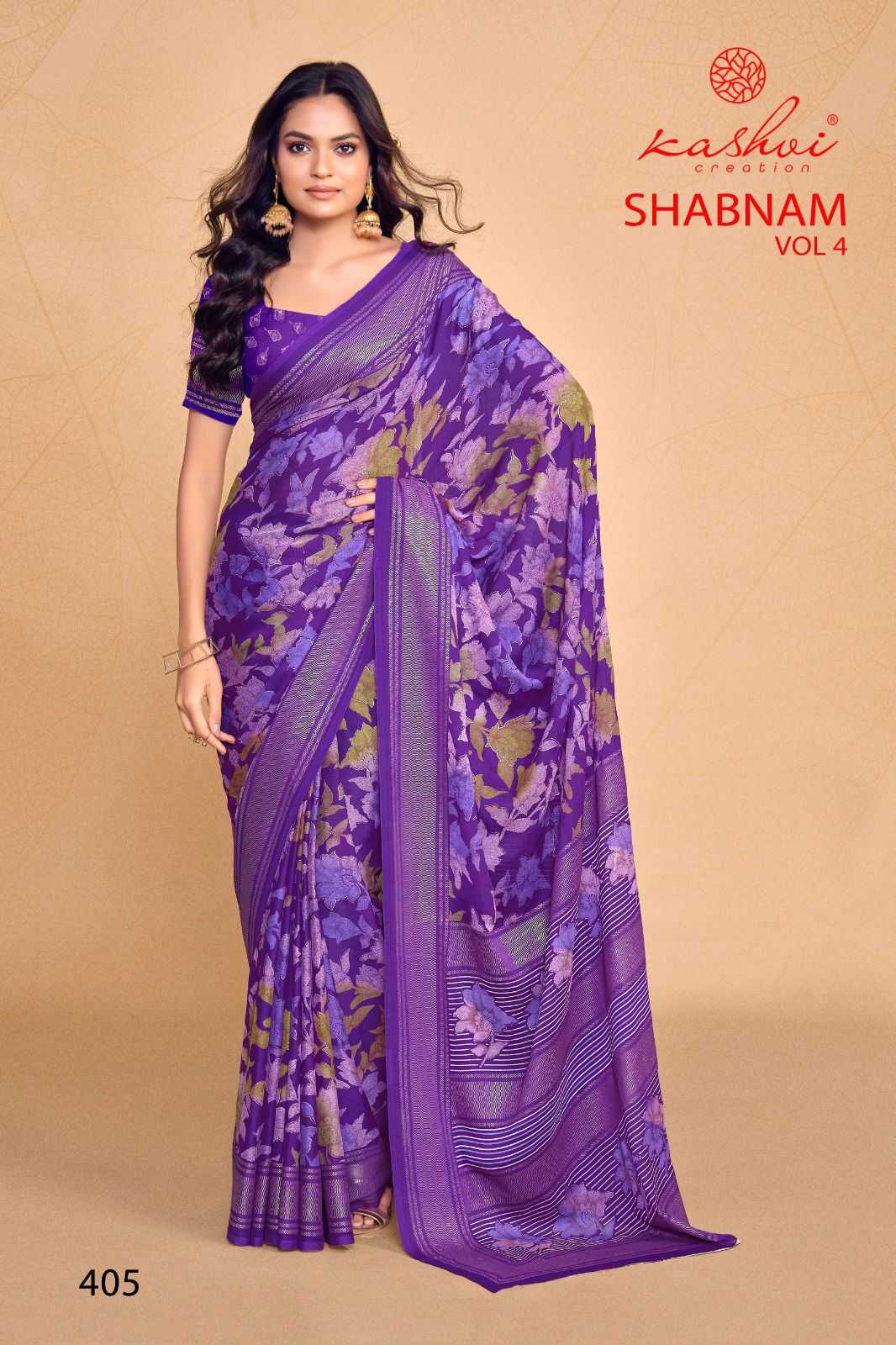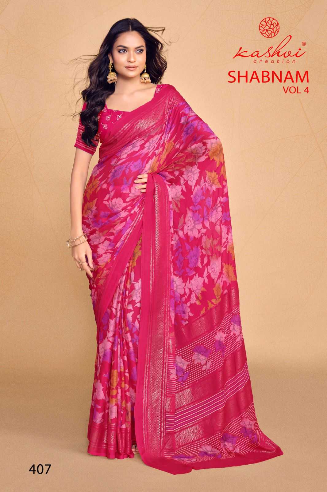 kashvi creation shabnam vol 4 dull moss foil printed saree