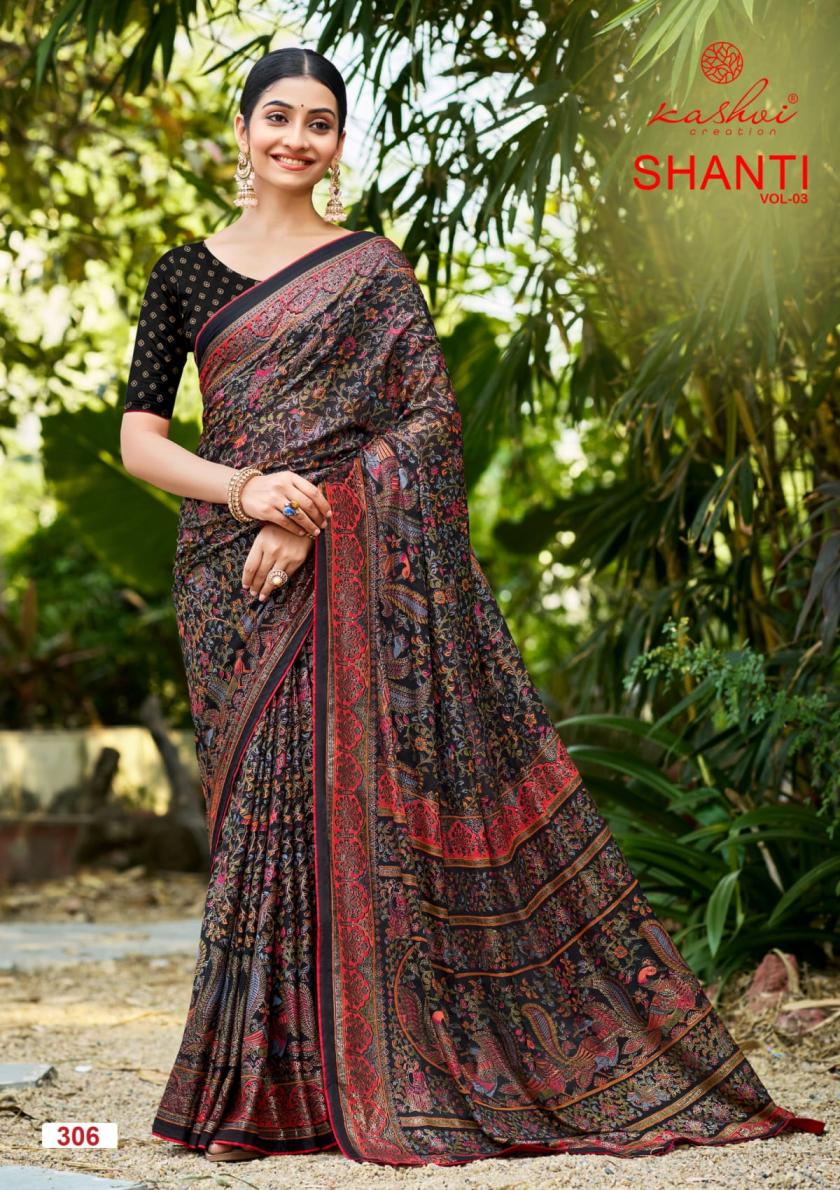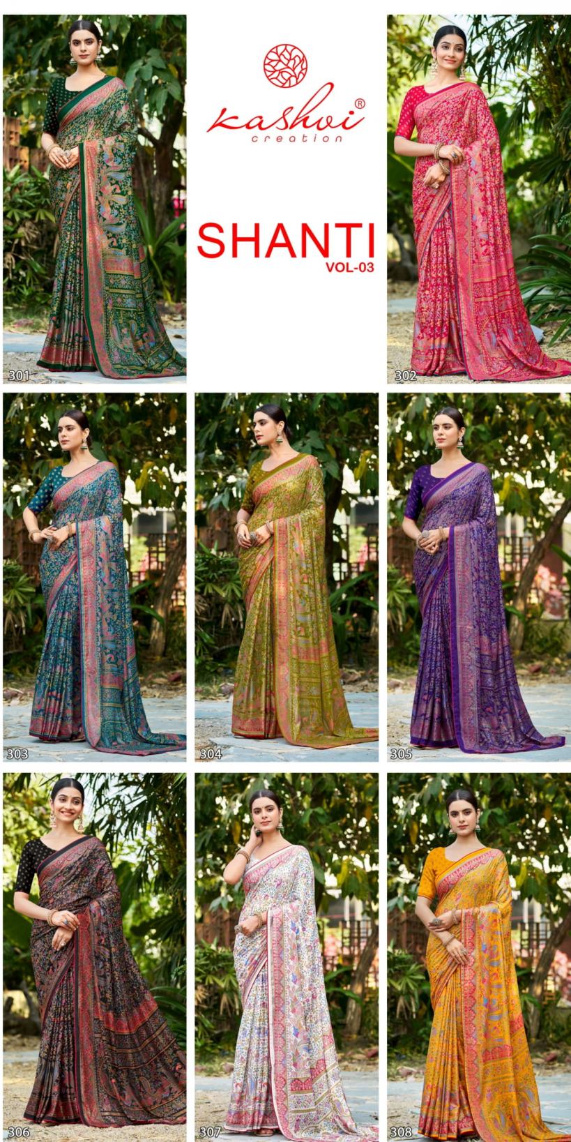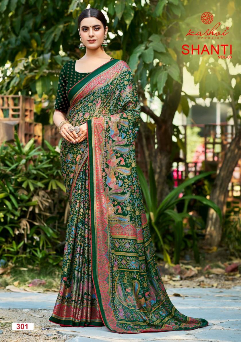 kashvi creation shanti vol 3 elegant style bright moss foil saree online