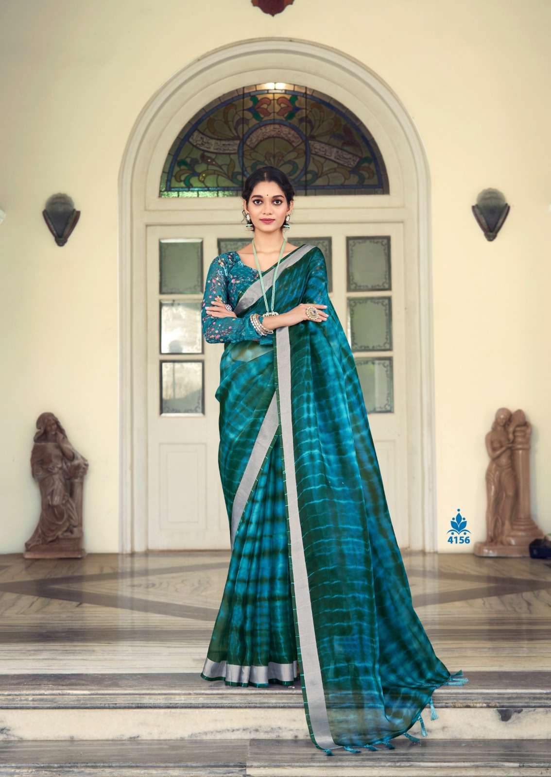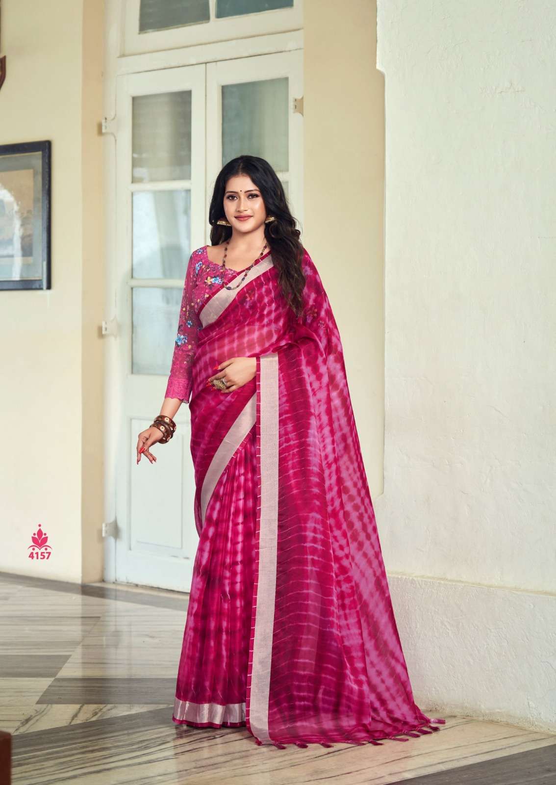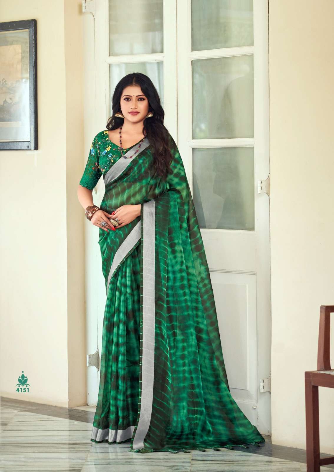 kashvi creation vamika 4151-4158 series fancy organza with silver border sarees