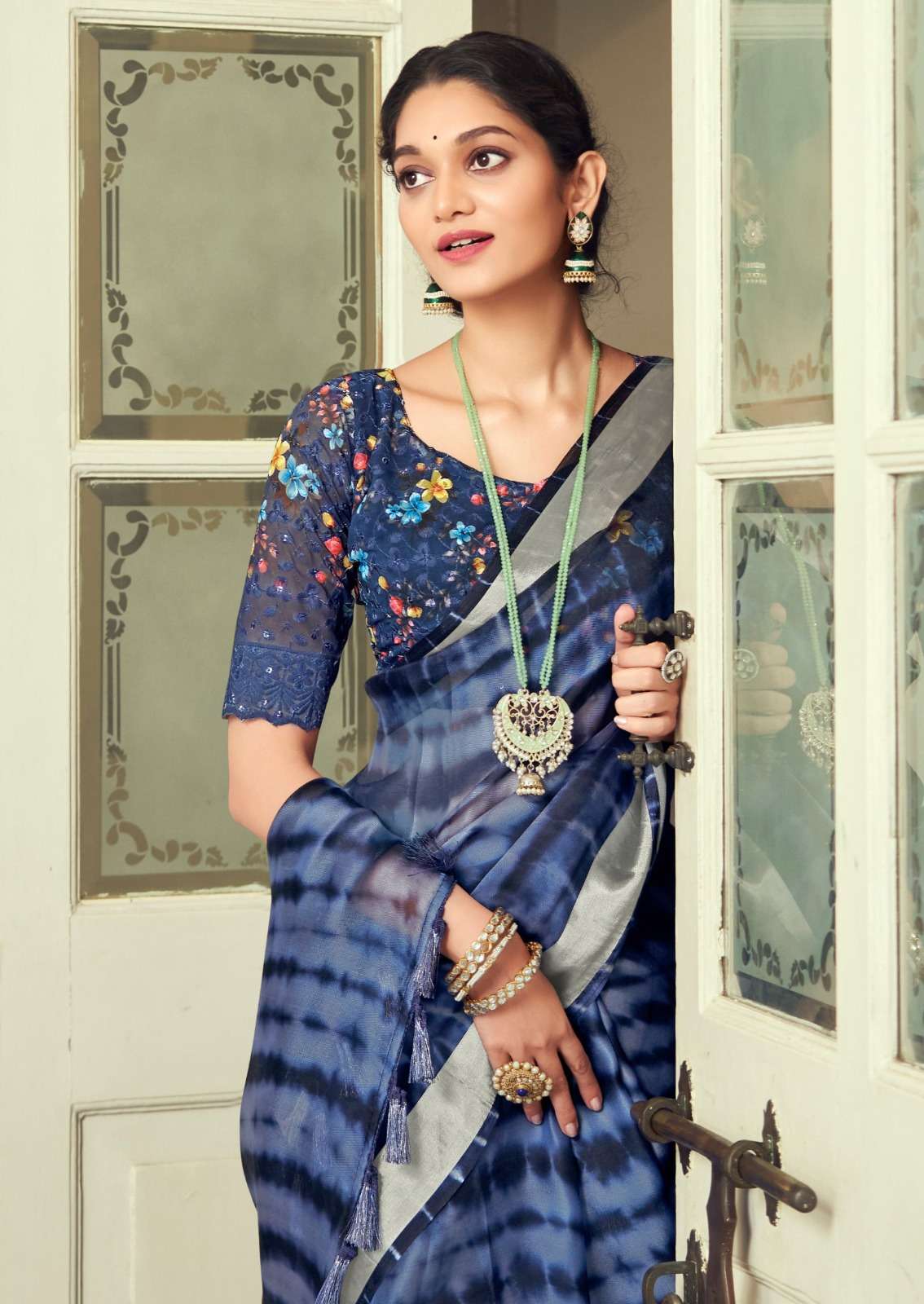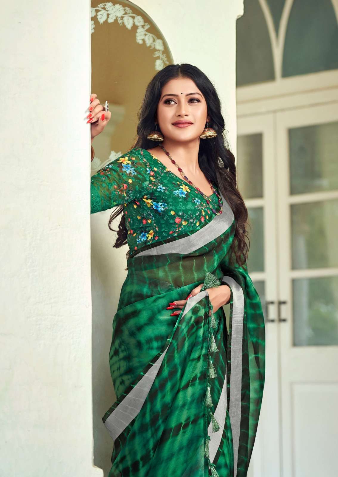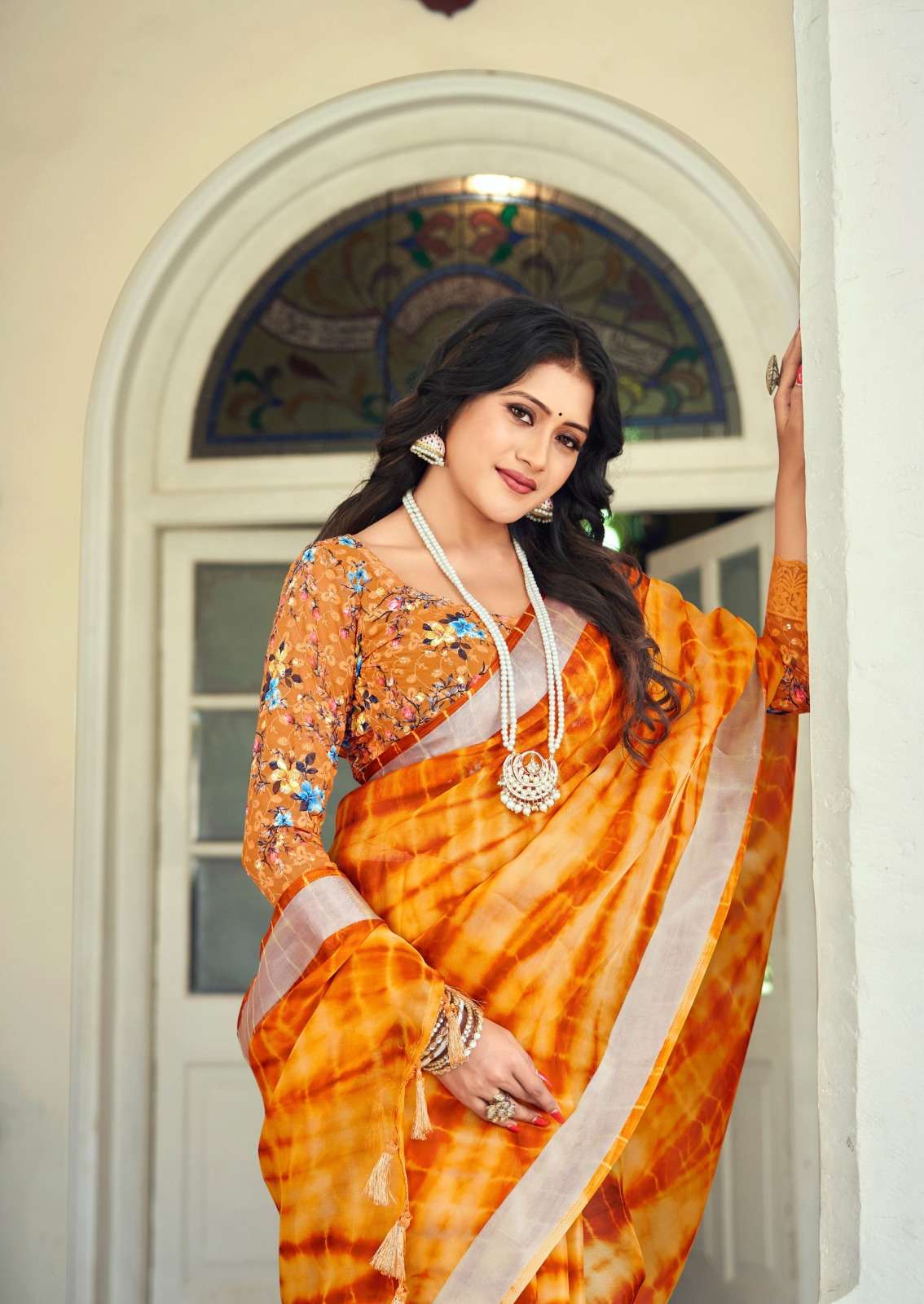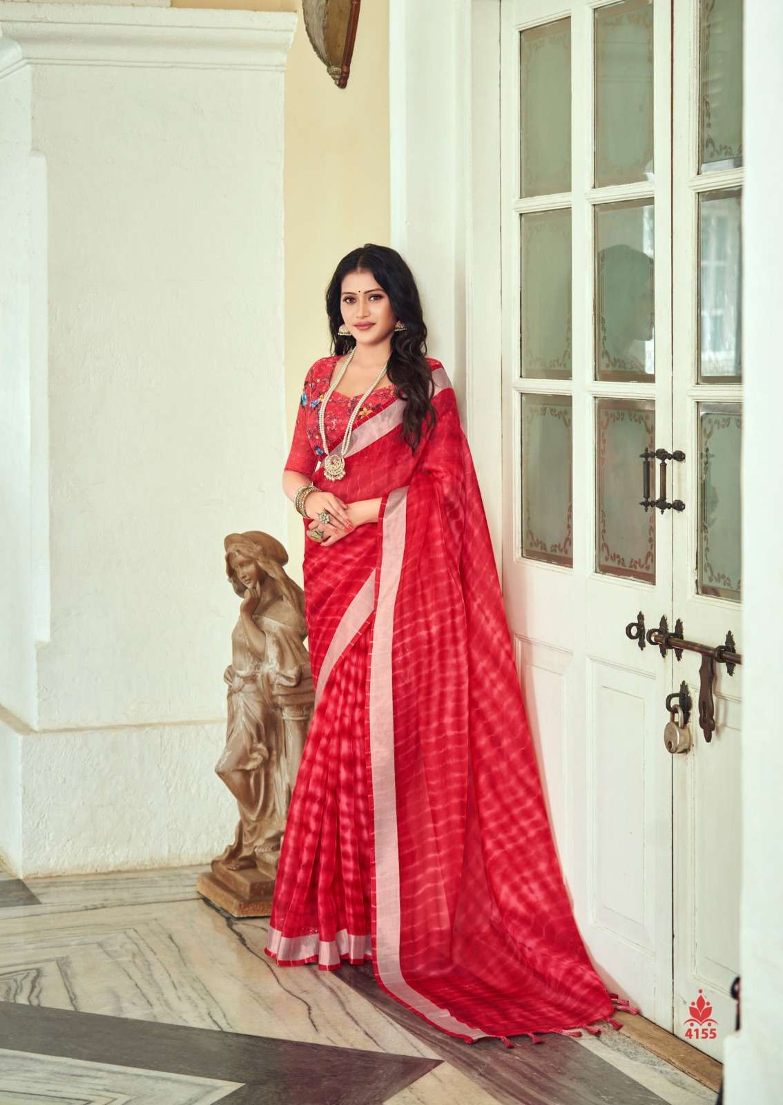 kashvi creation vamika 4151-4158 series fancy organza with silver border sarees
