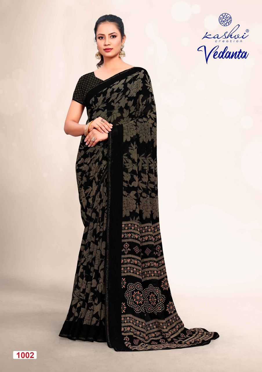 kashvi creation vedanta arriving georgette denting with swarovski lace saree in best quality