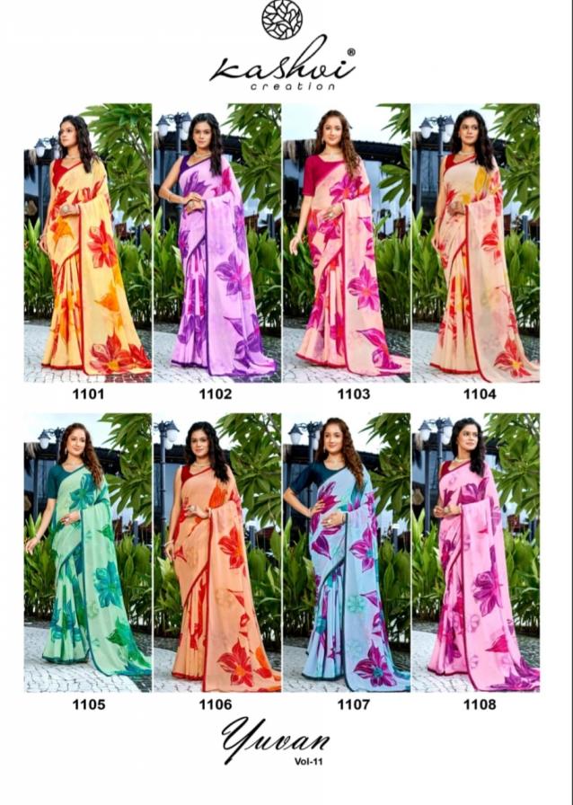 kashvi creation yuvan vol 11 georgette gorgeous look saree