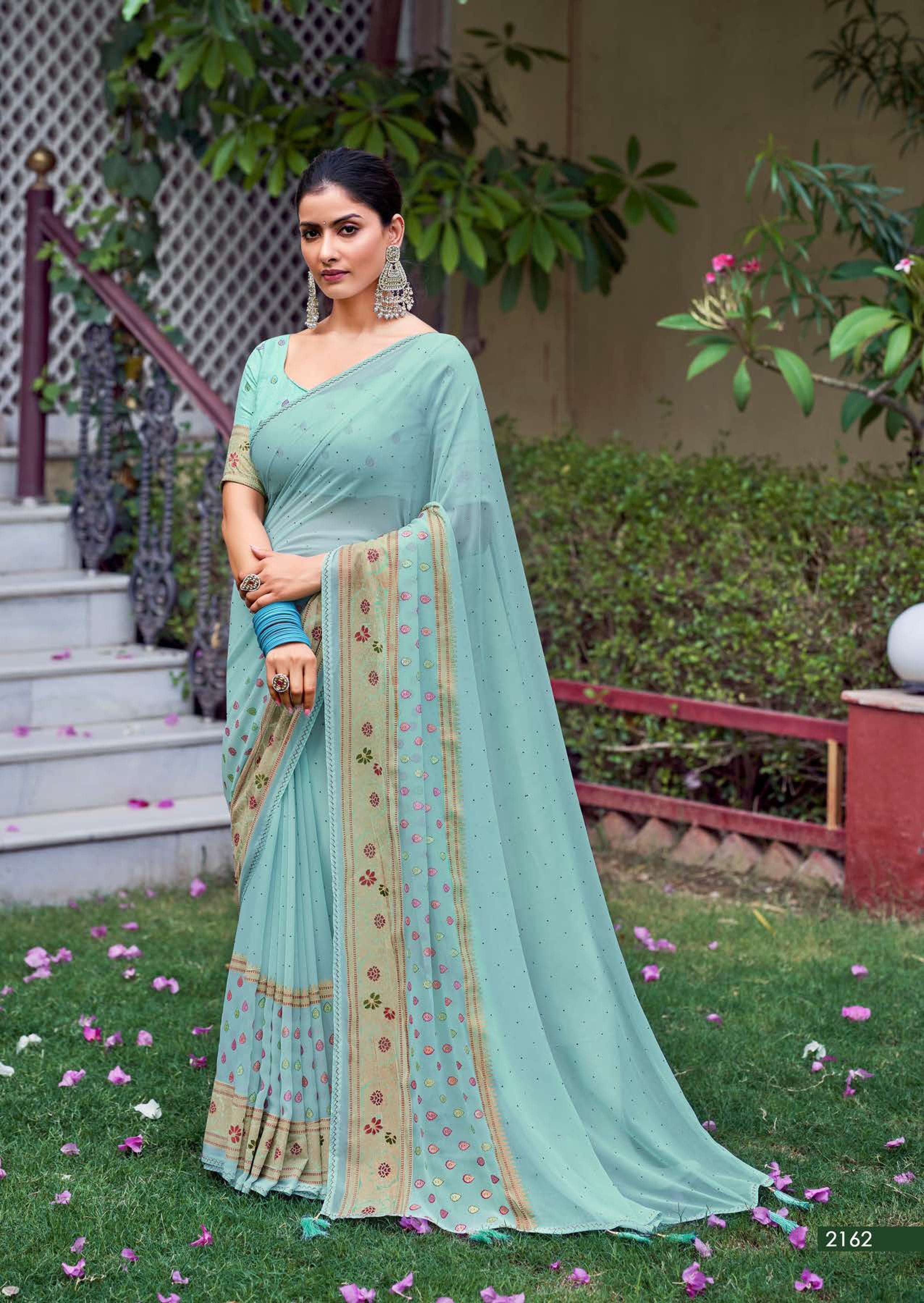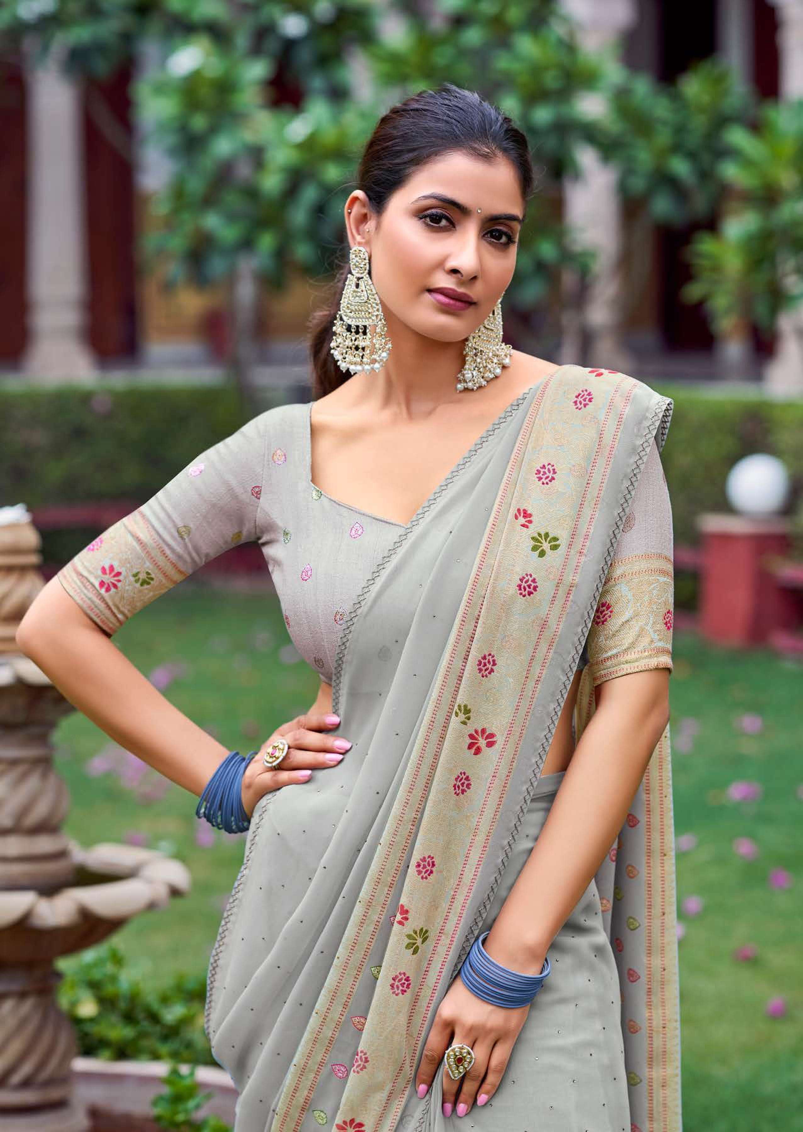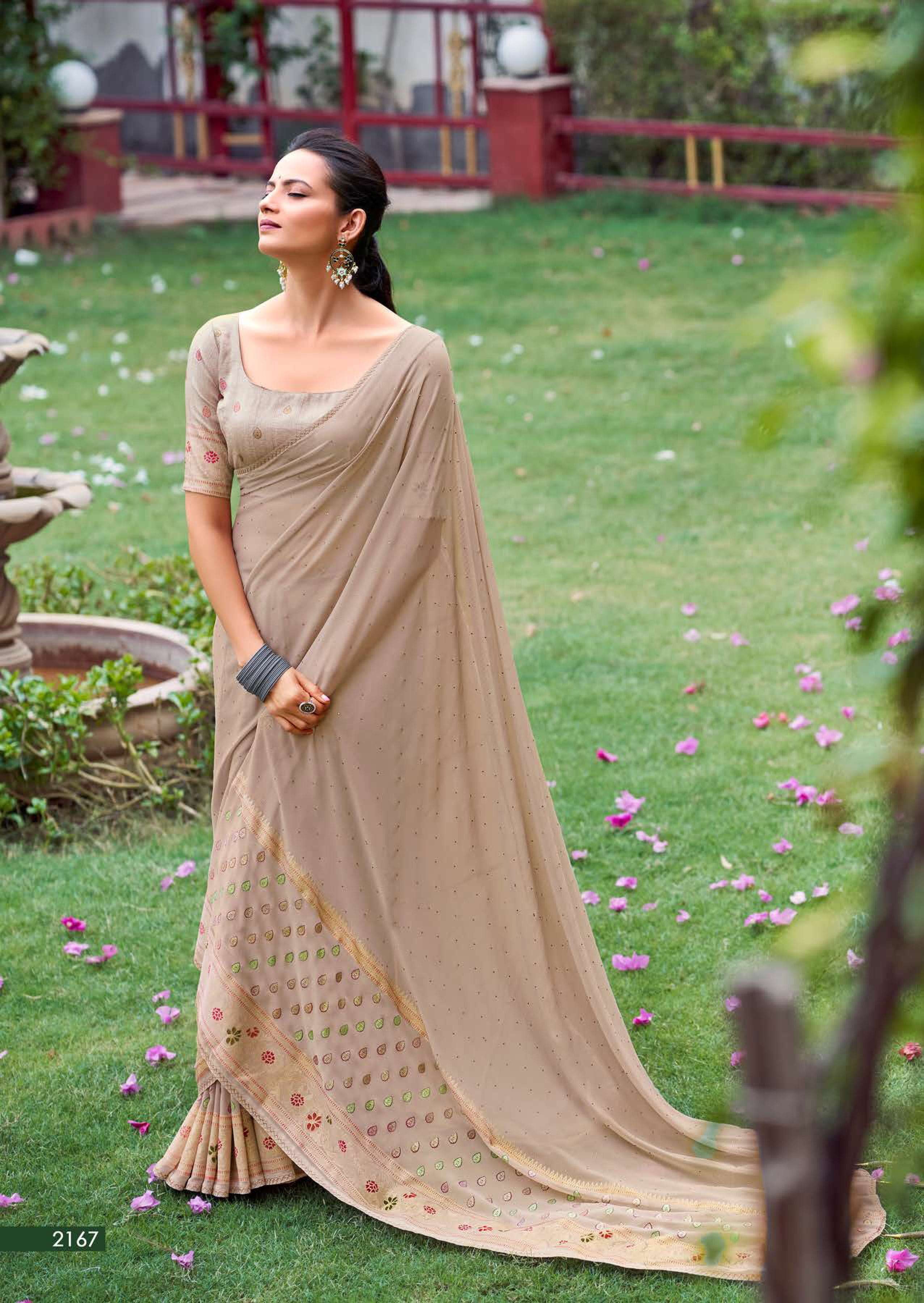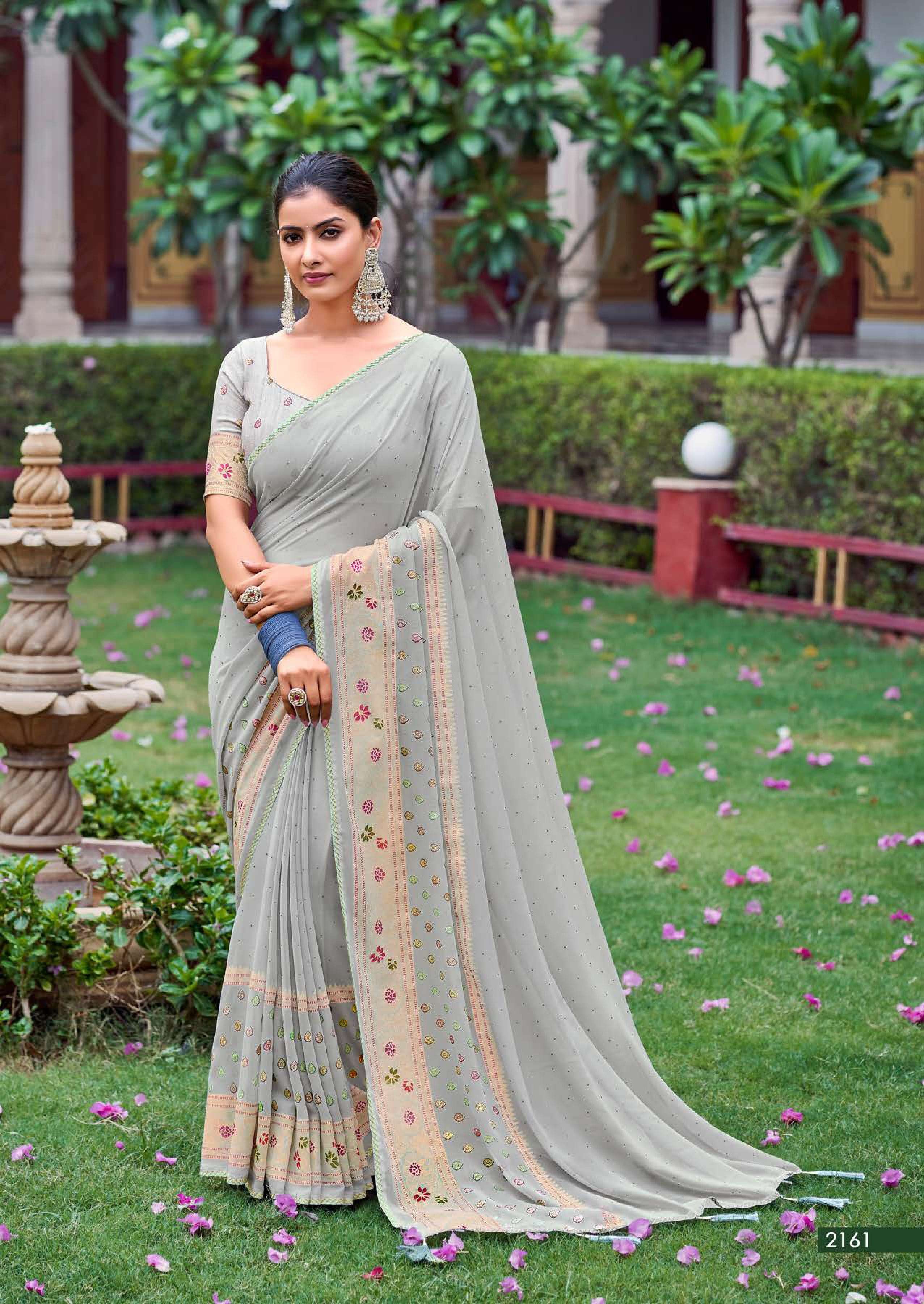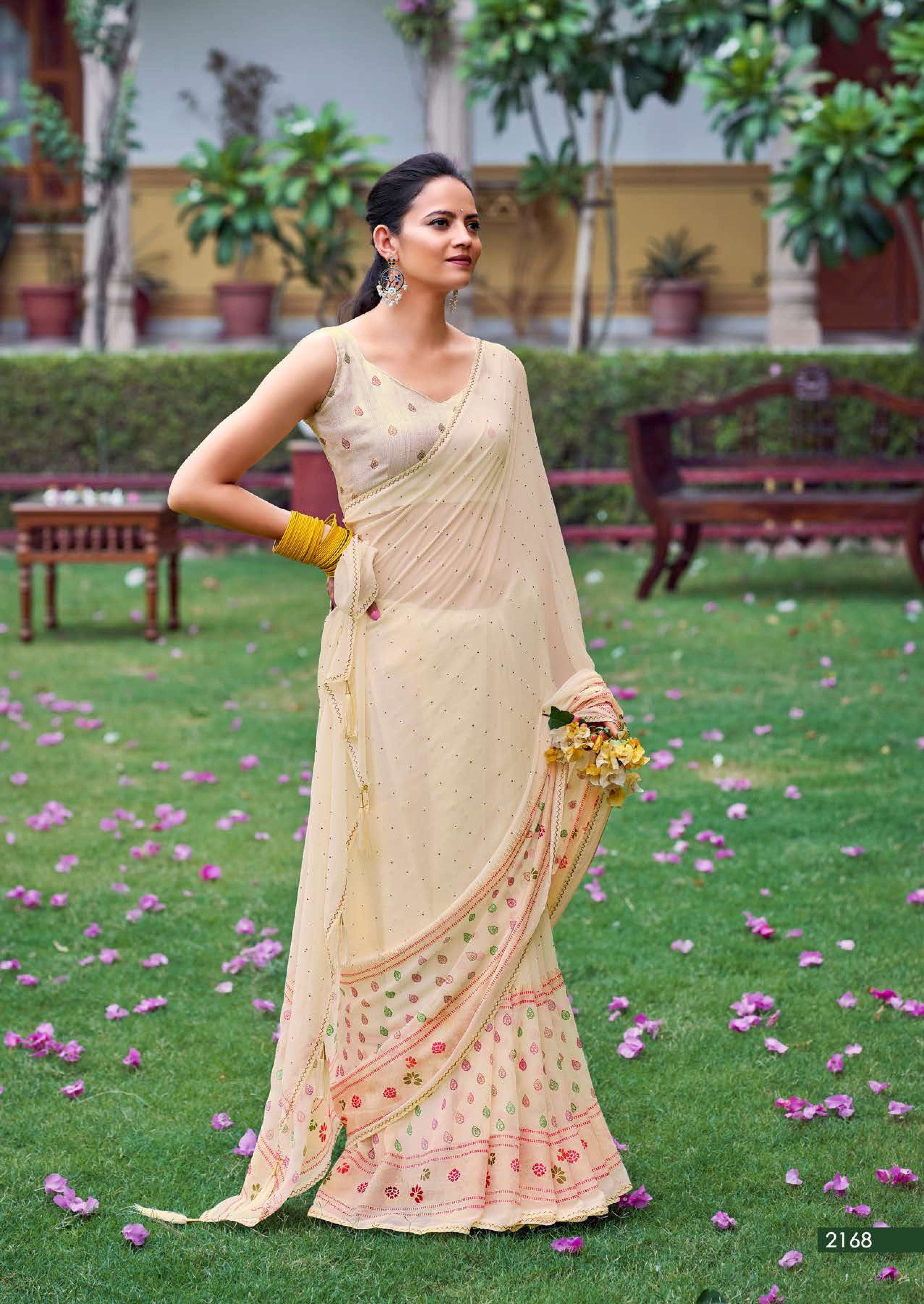 kashvi glamour foil print with swarovski work sarees design