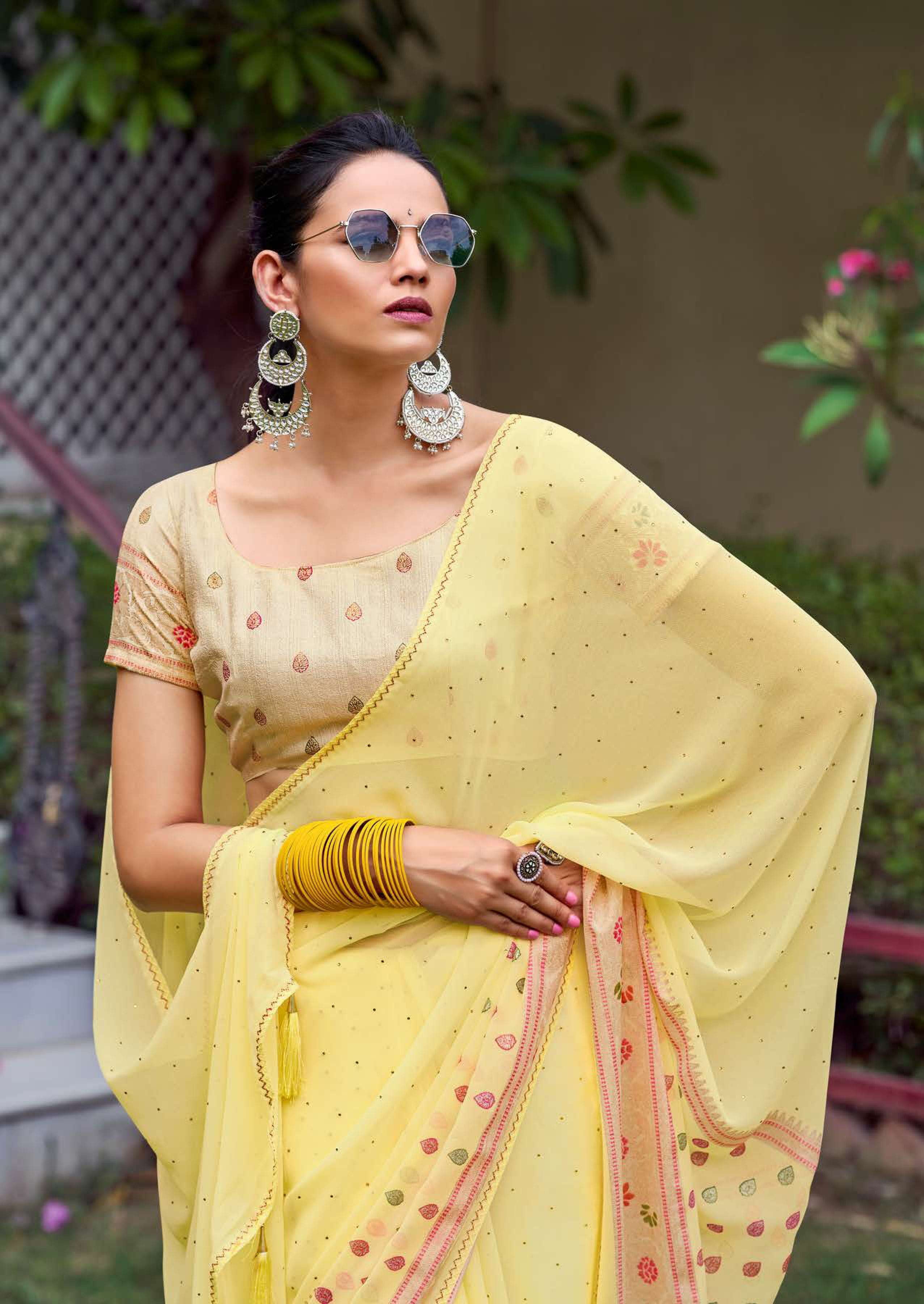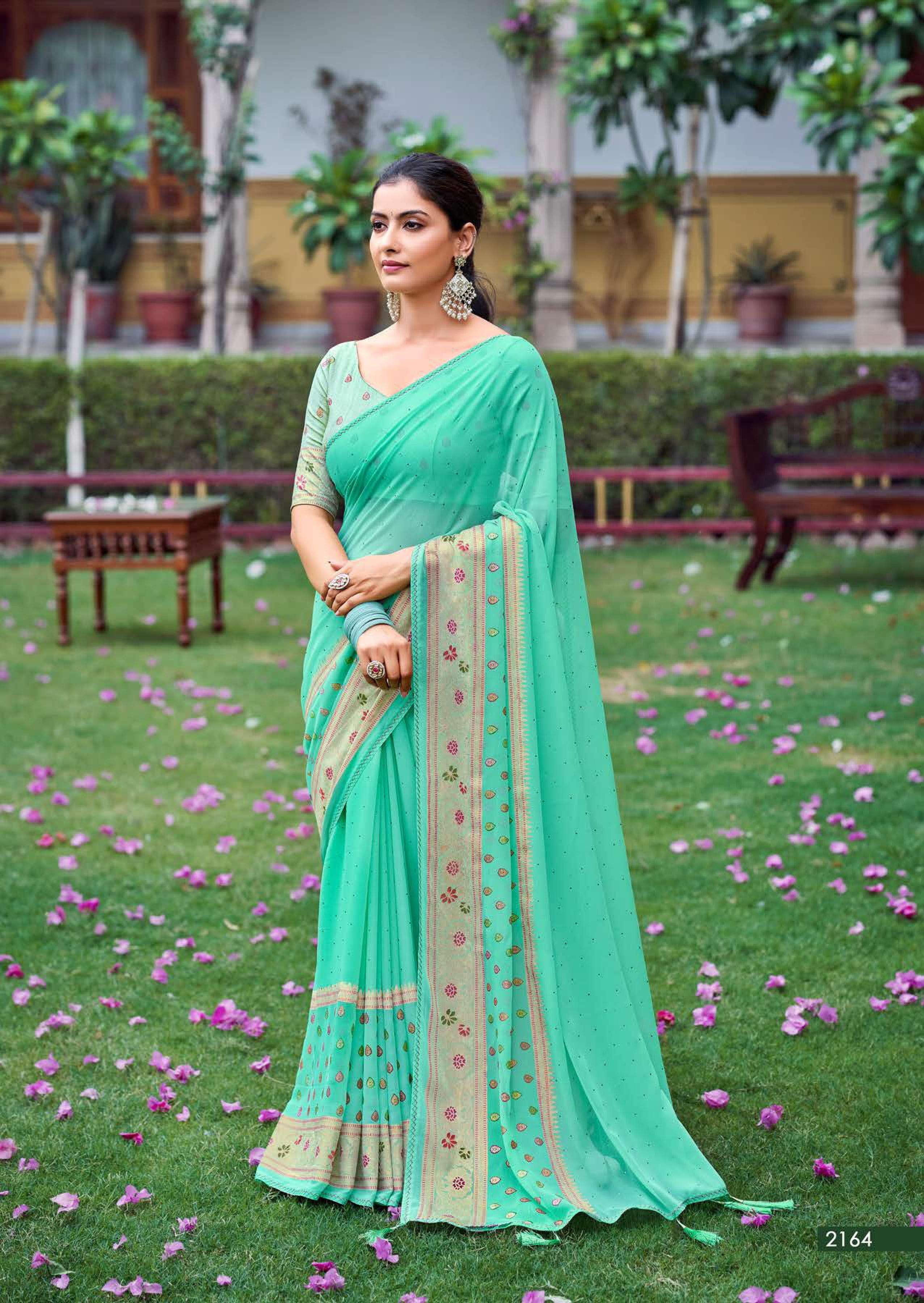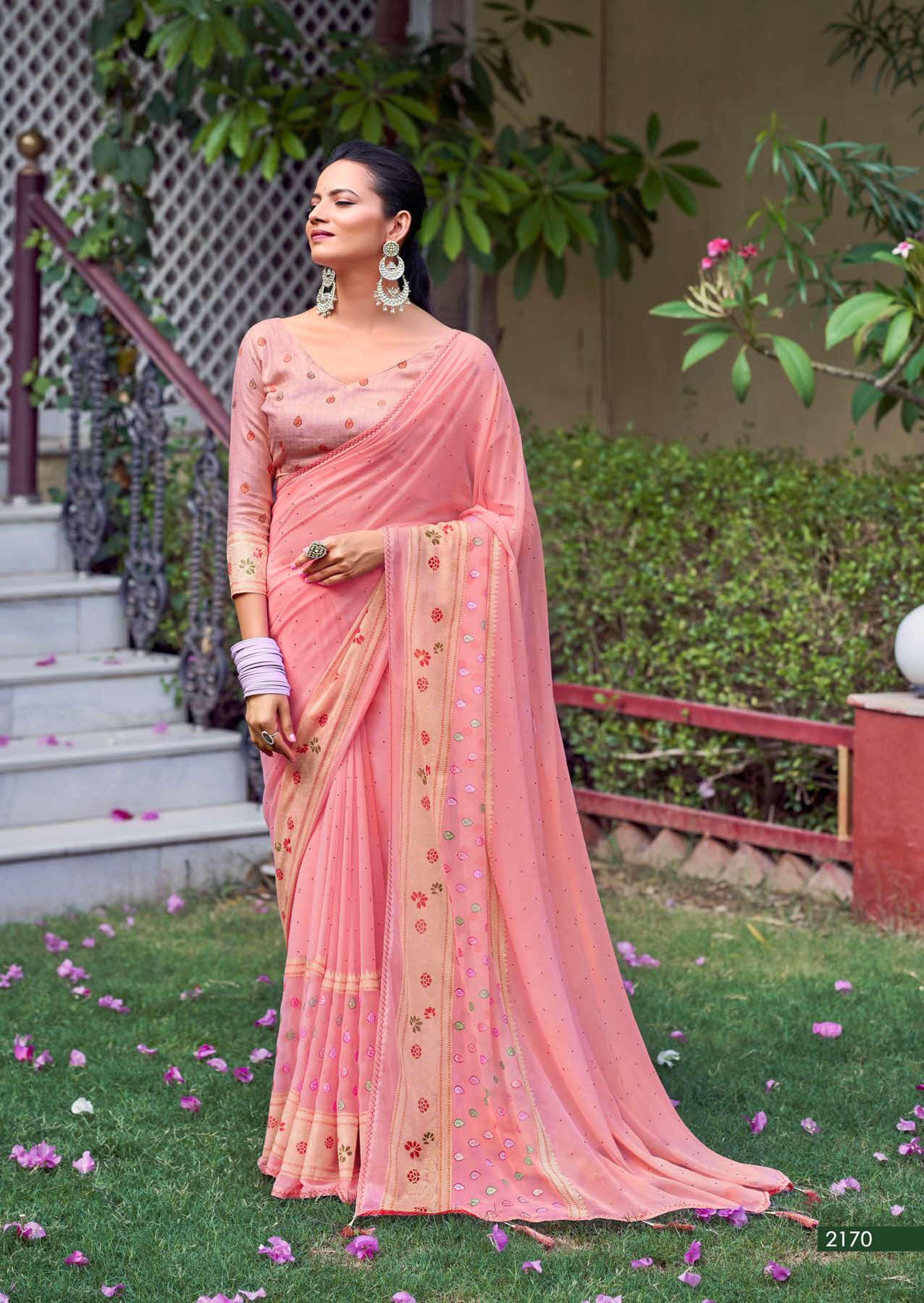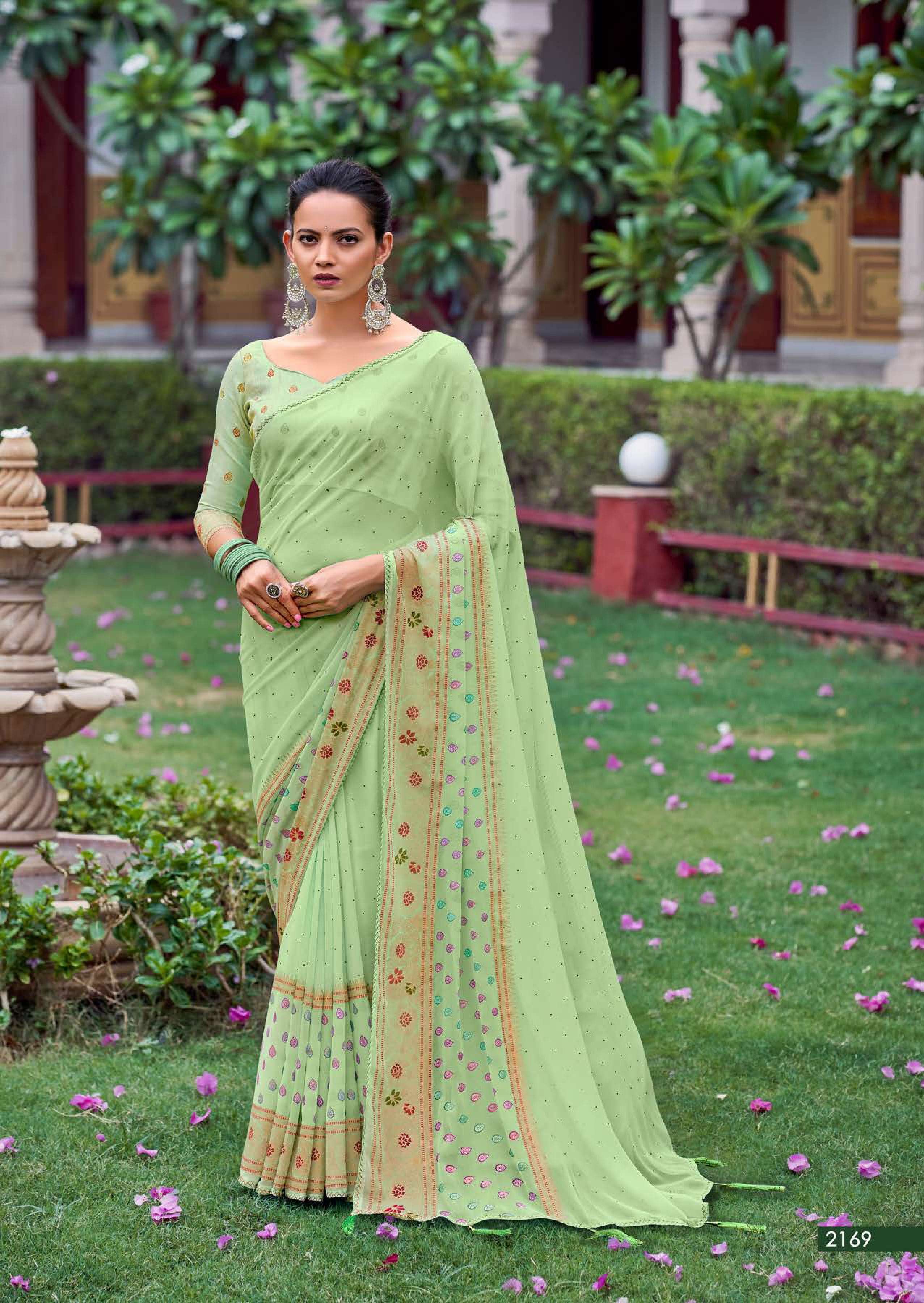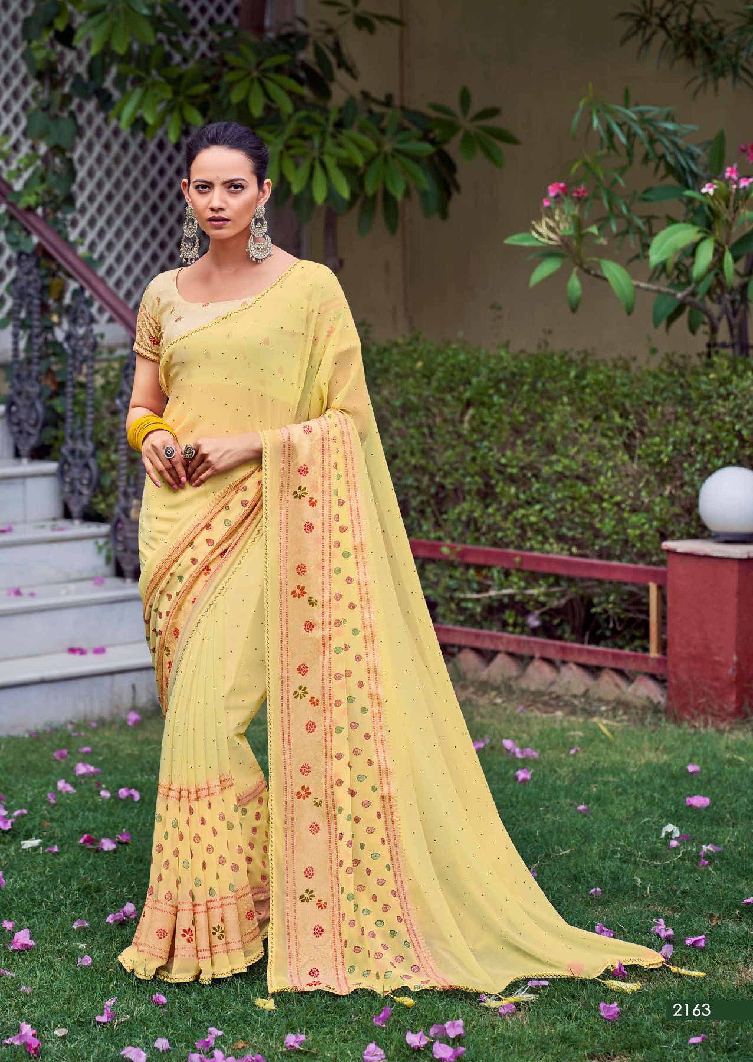 kashvi glamour foil print with swarovski work sarees design