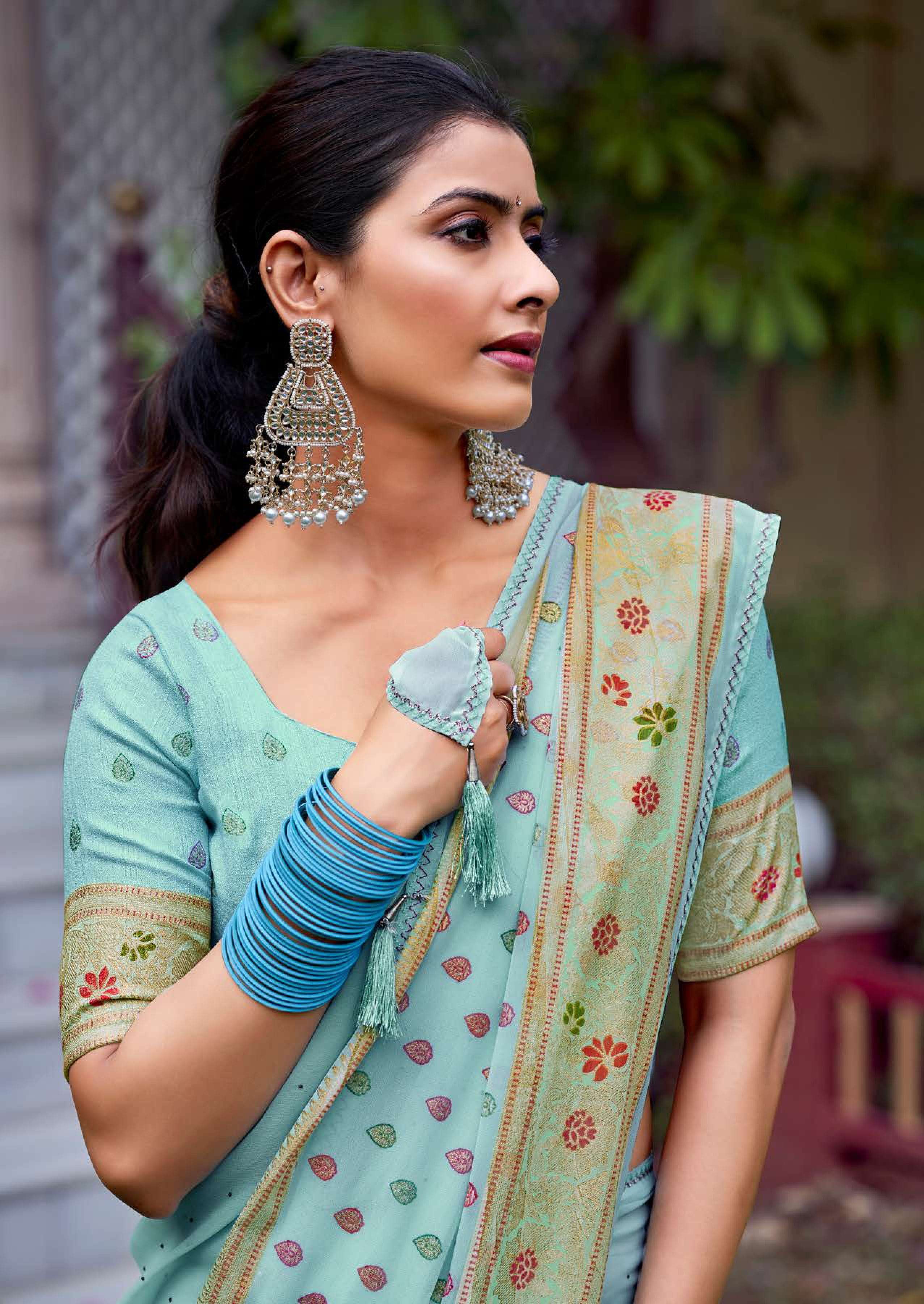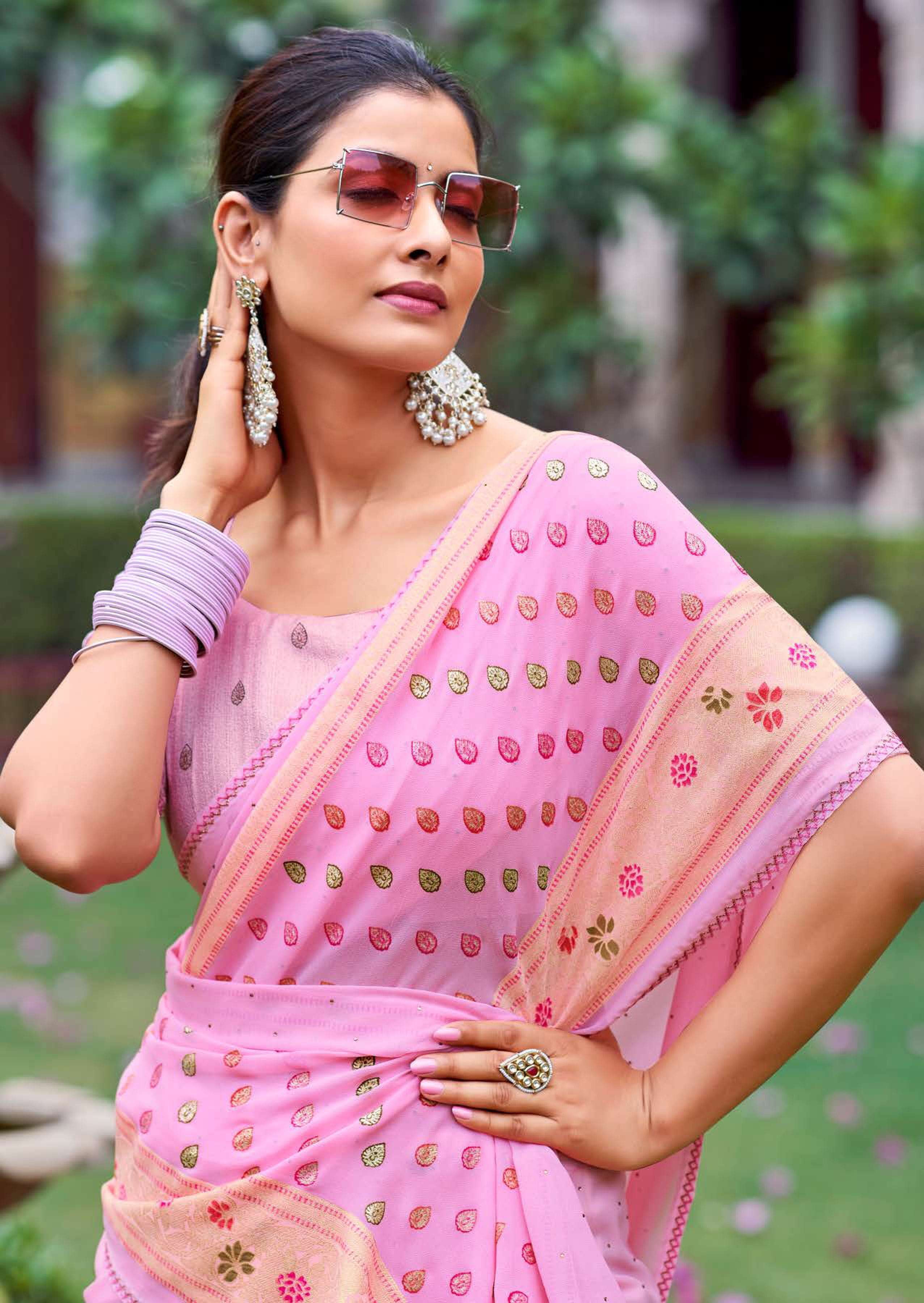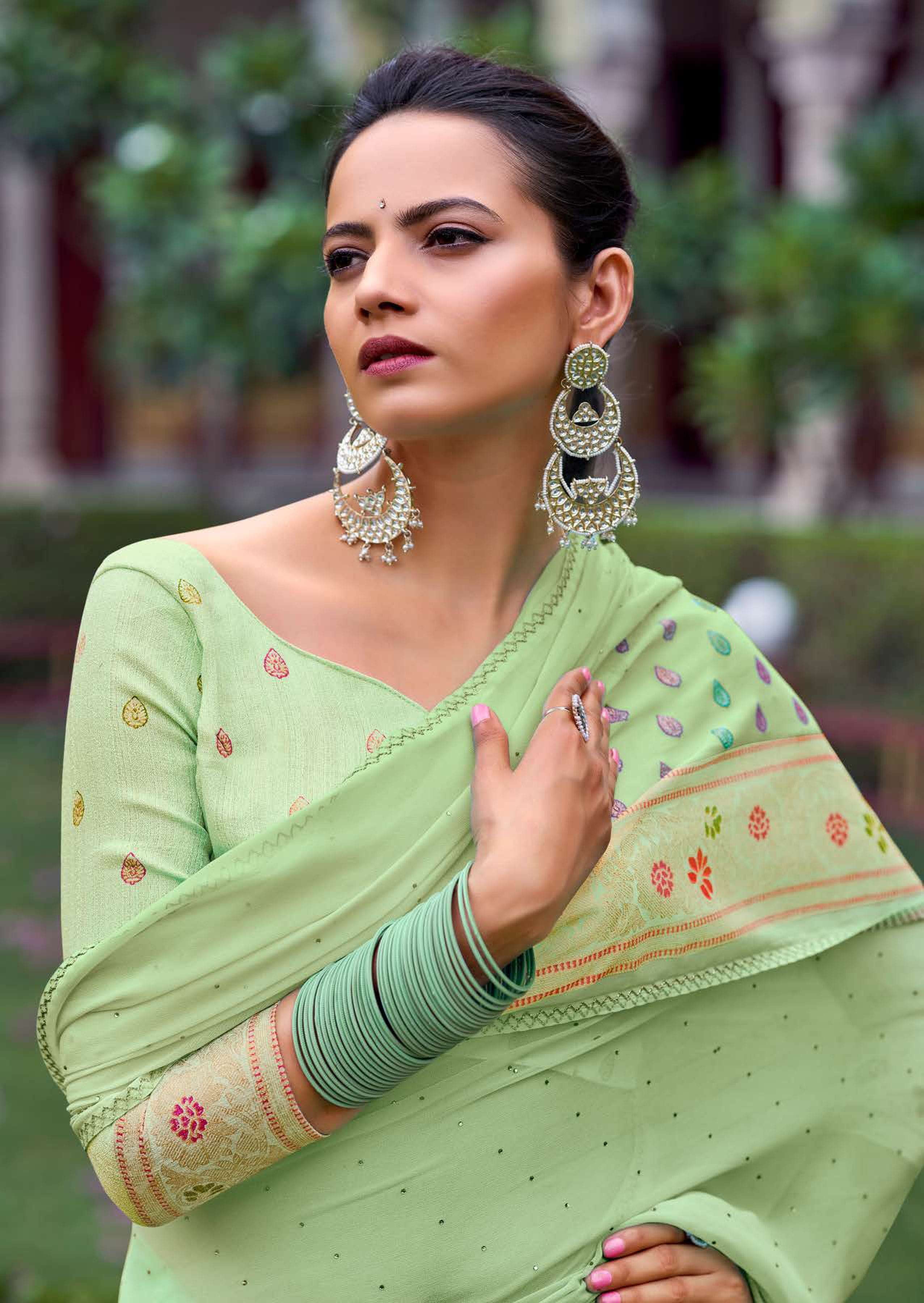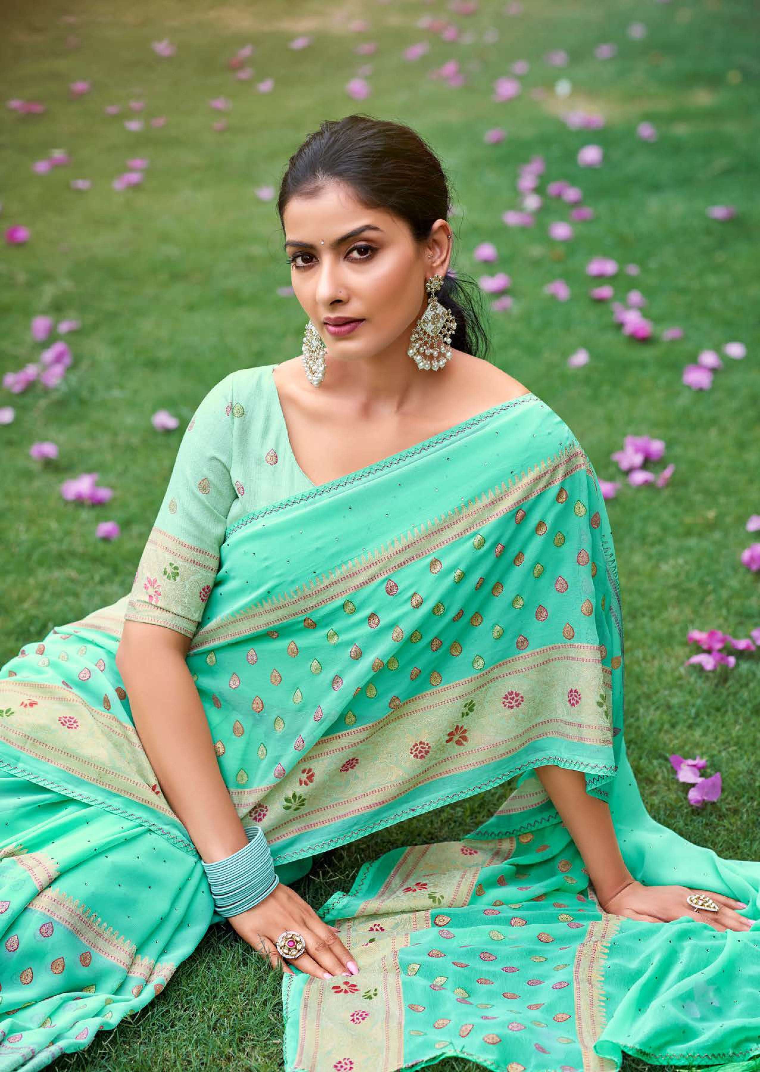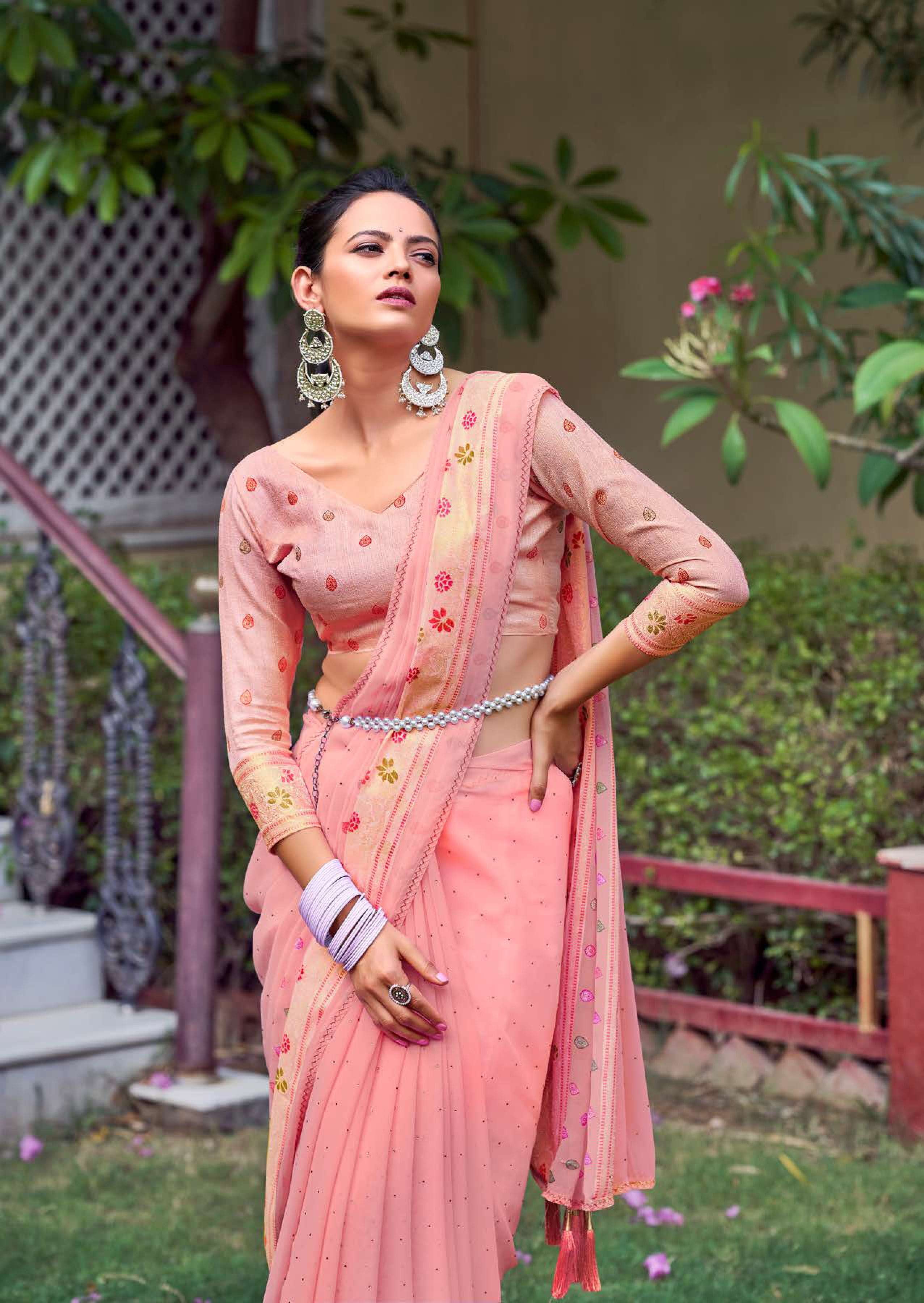 kashvi glamour foil print with swarovski work sarees design
