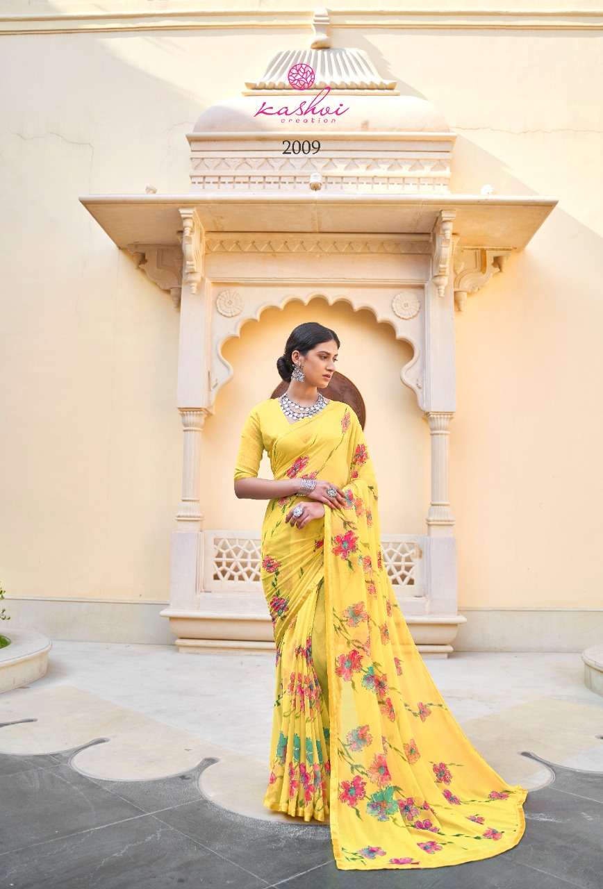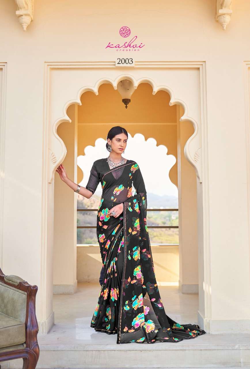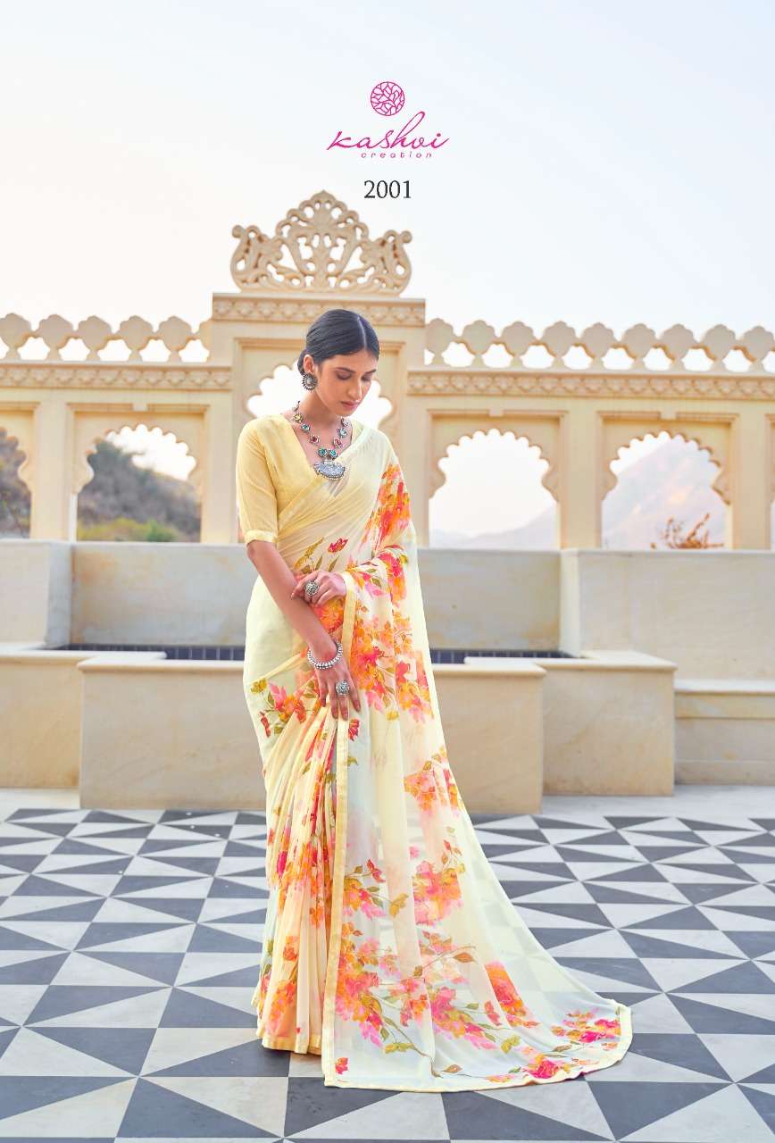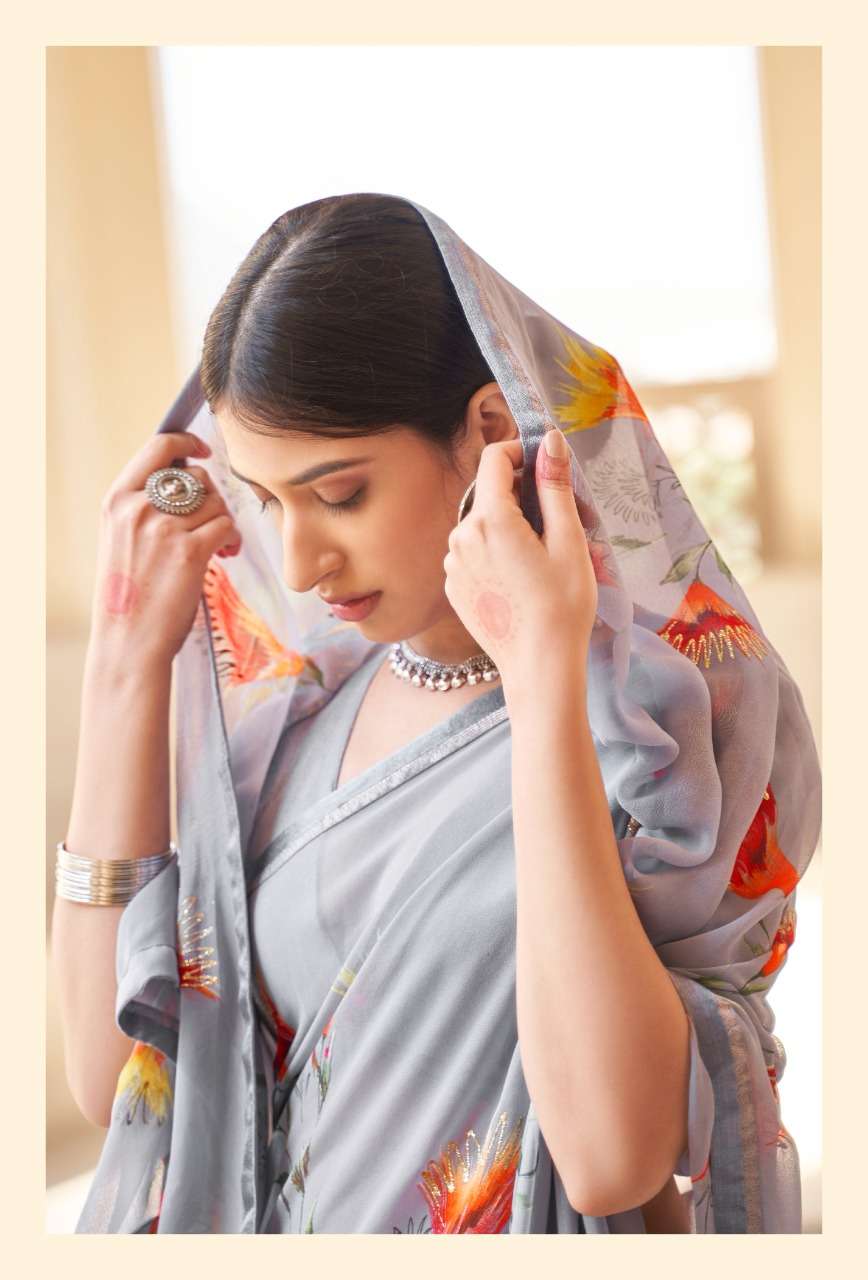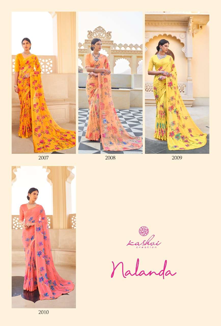 kashvi nalanda georgette foil printed designer saree collection