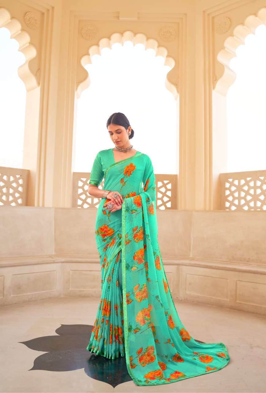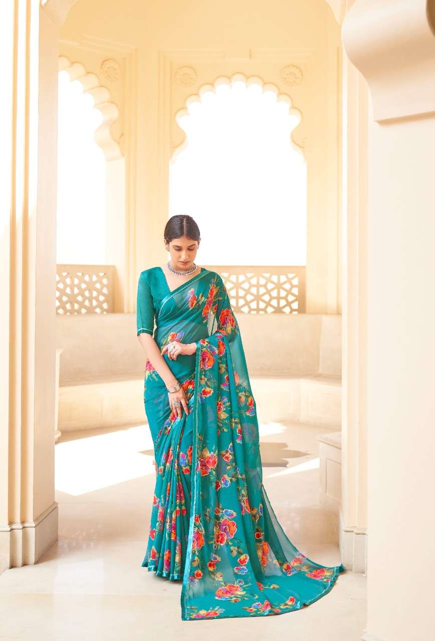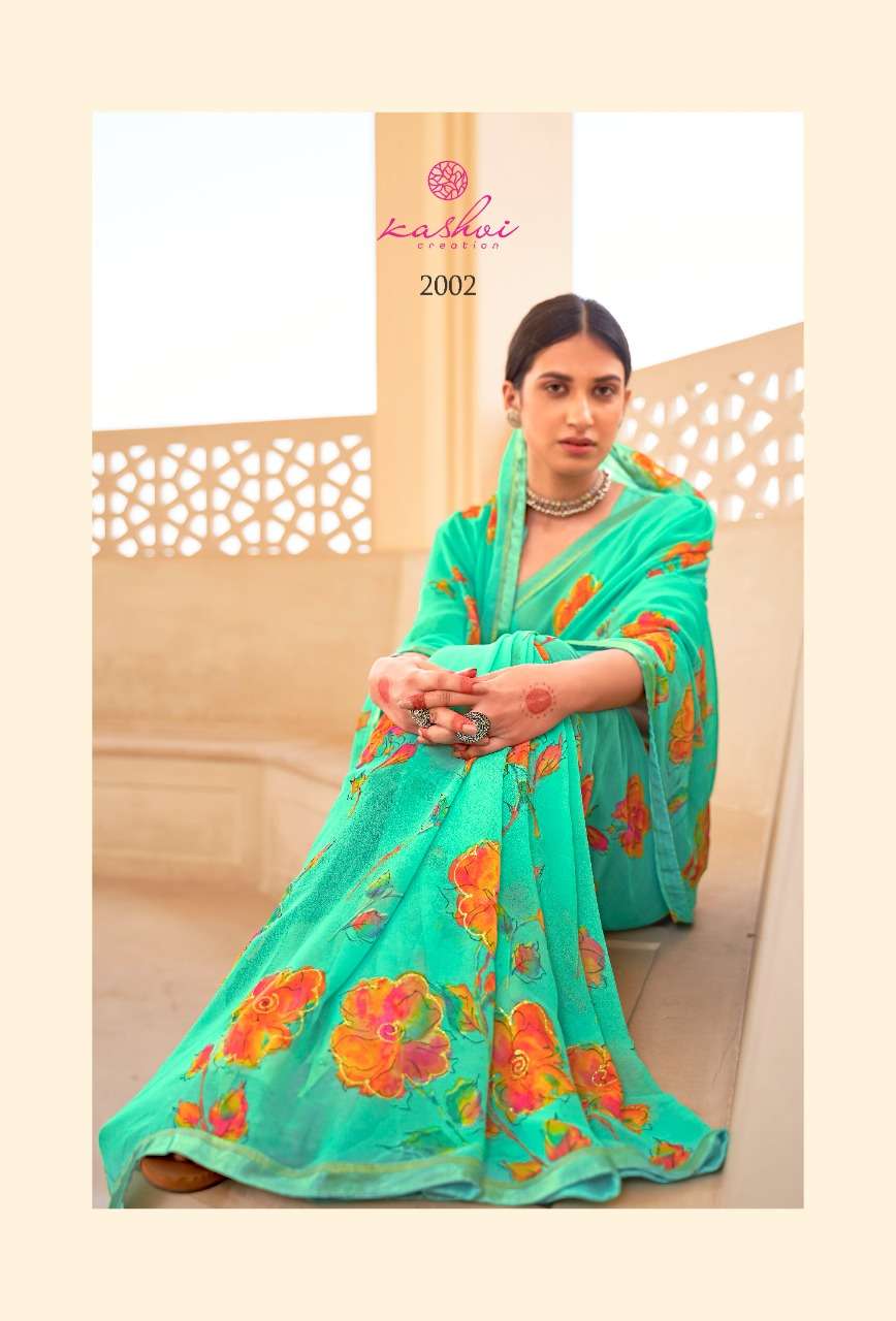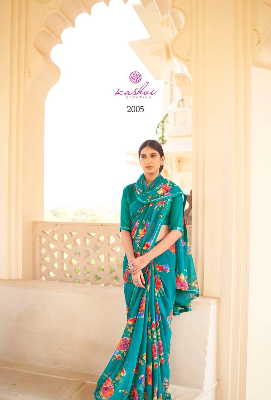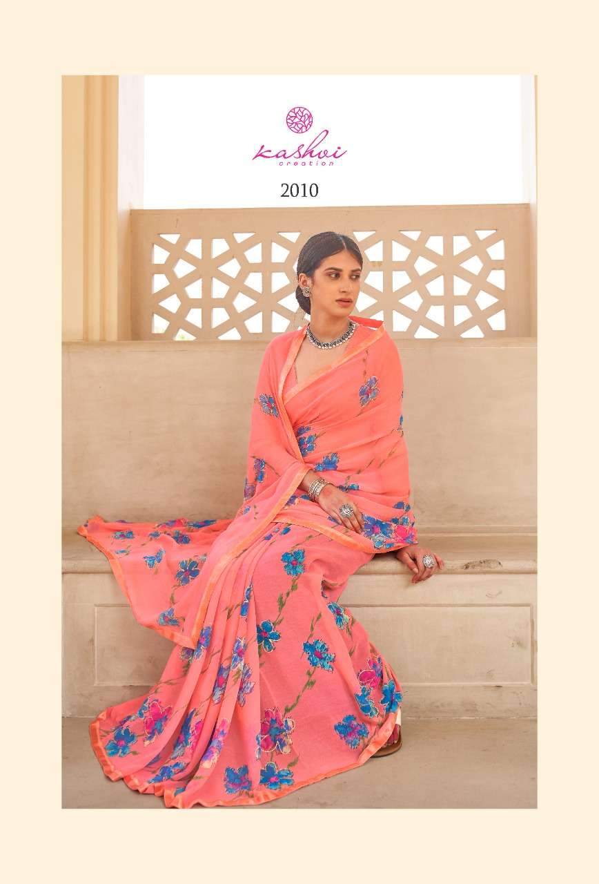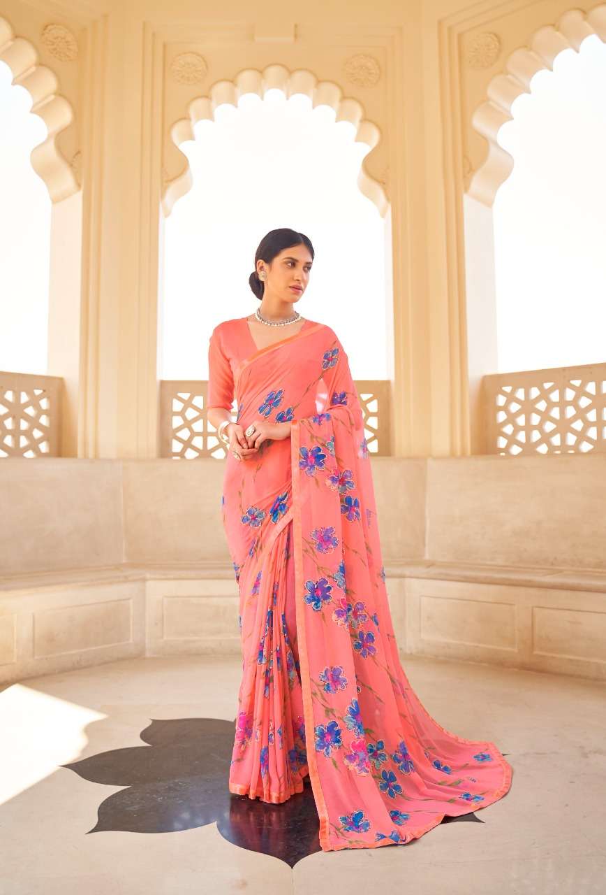 kashvi nalanda georgette foil printed designer saree collection