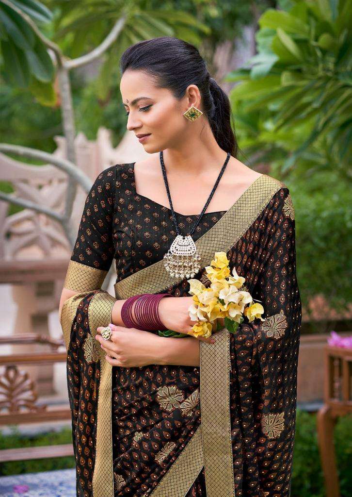 kashvi present aashvi black moss padding foil printed designer sarees