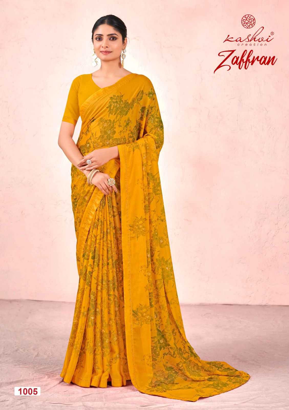 kashvi zaffran georgette daily wear saree collection
