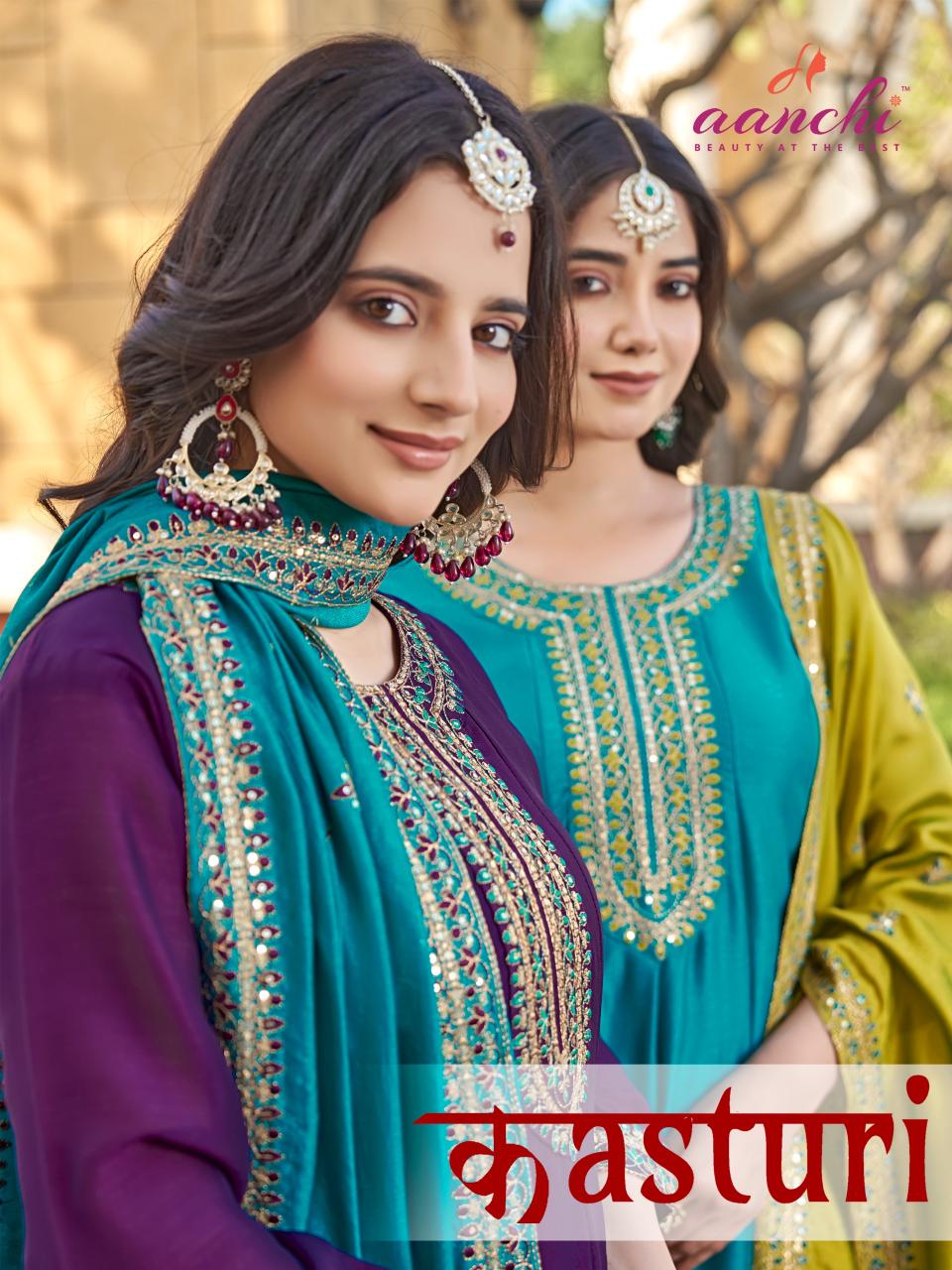 kasturi by aanchi vichitra silk full stitch pretty look suits online