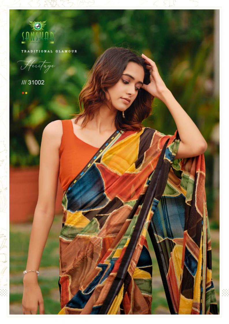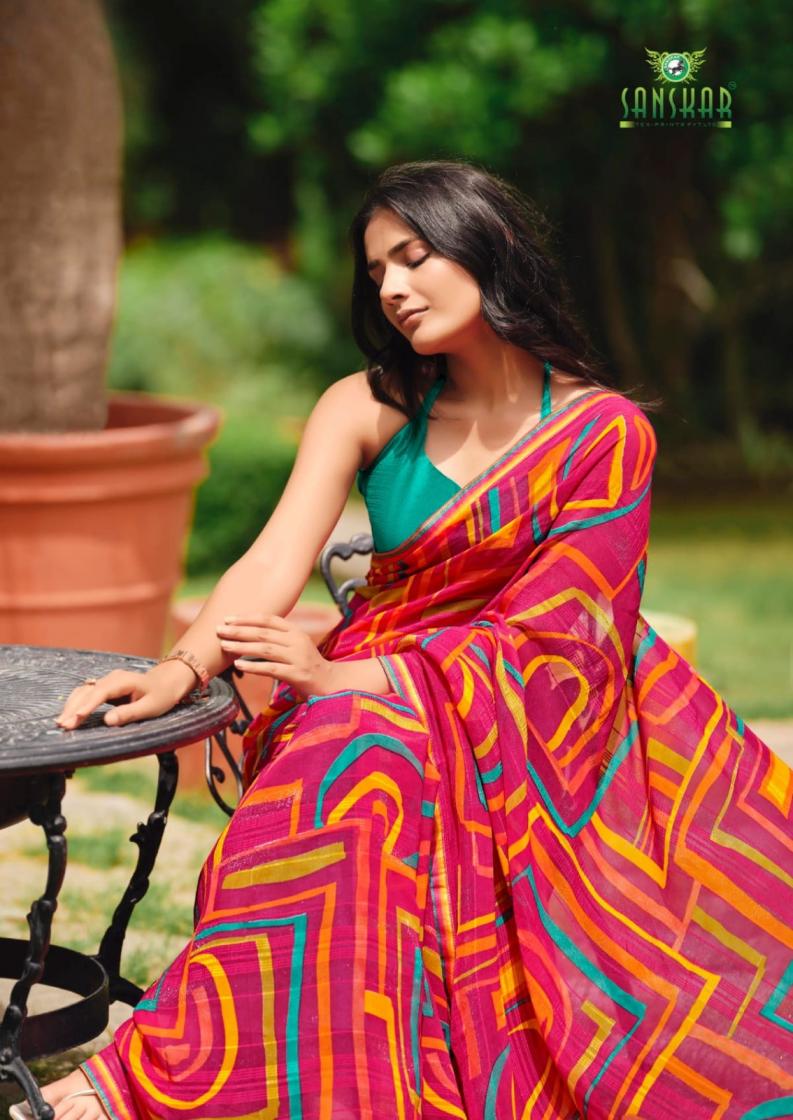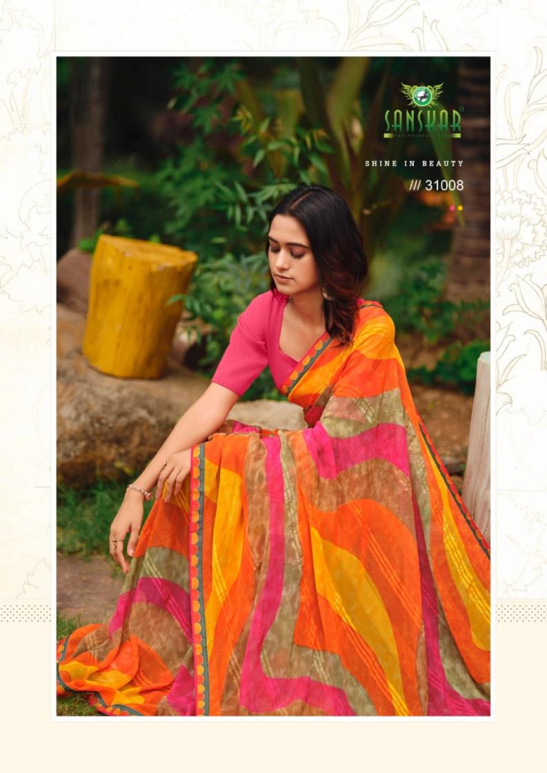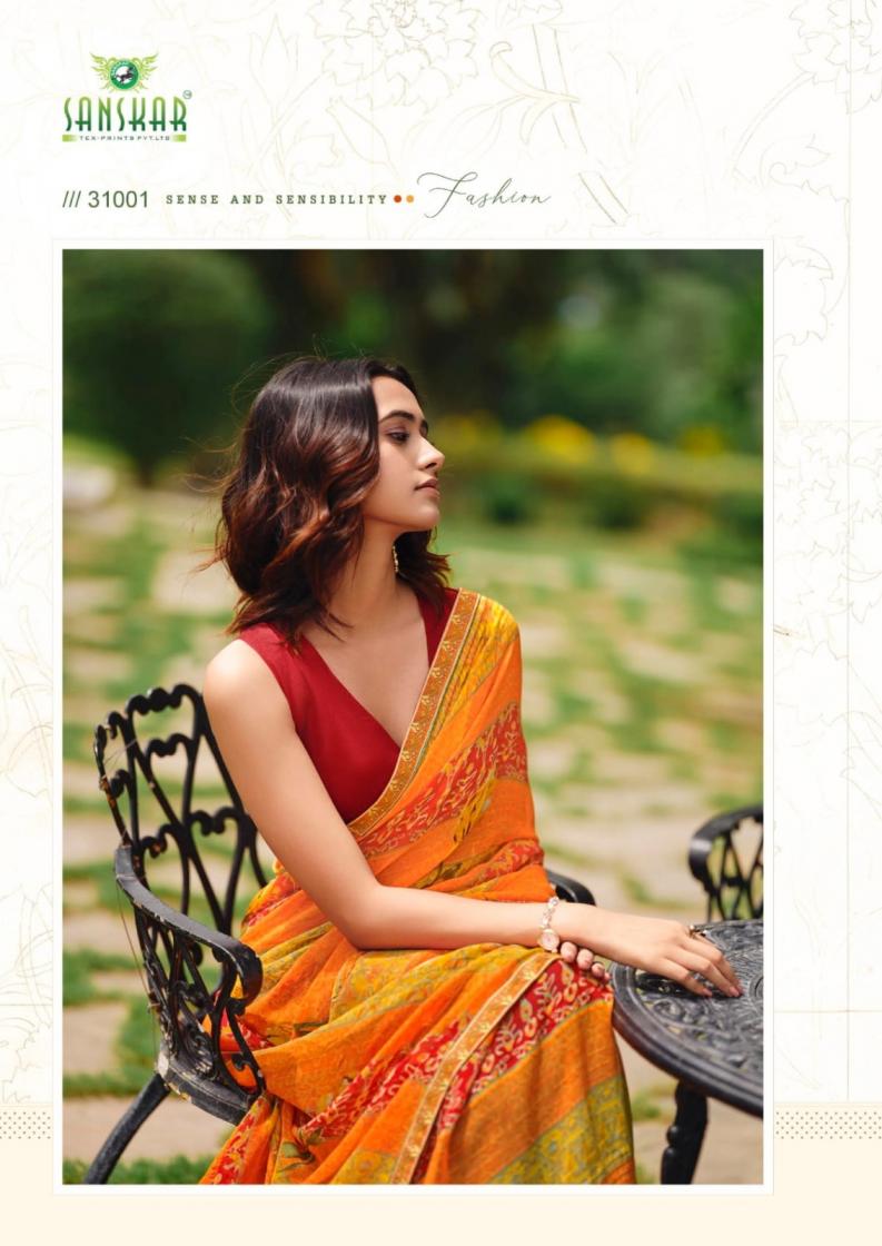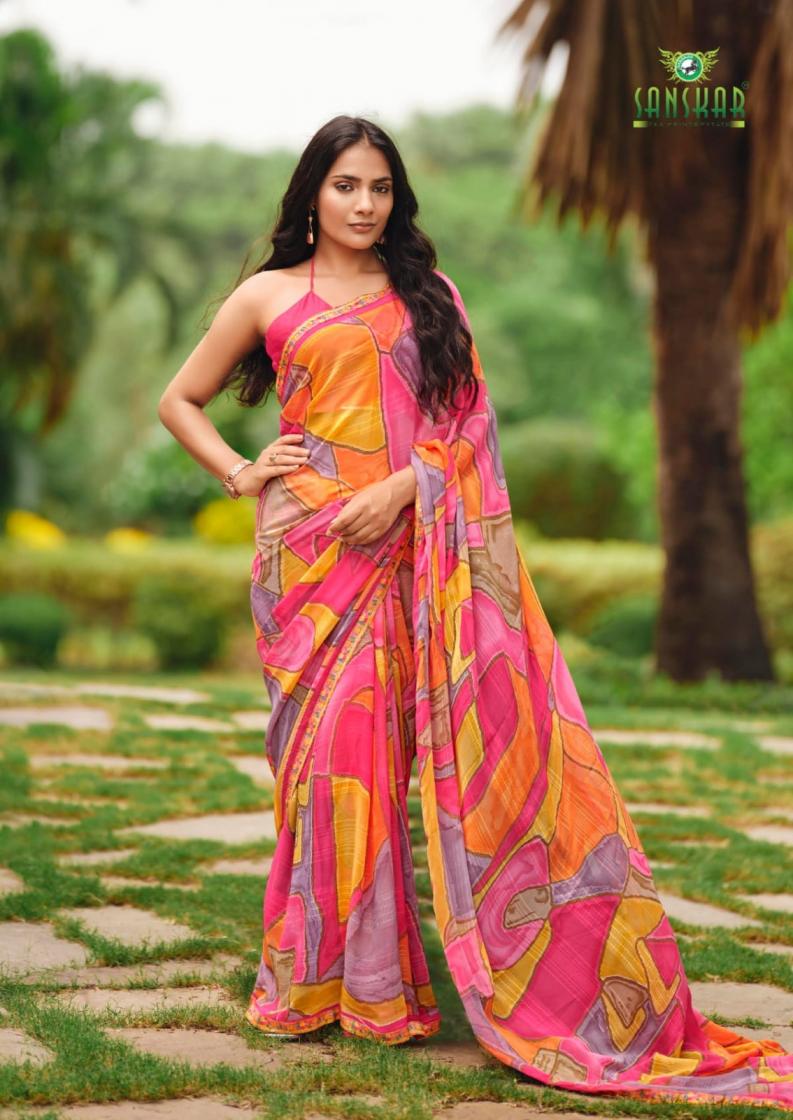 kasturi by sanskar tex prints amazing georgette printed sarees
