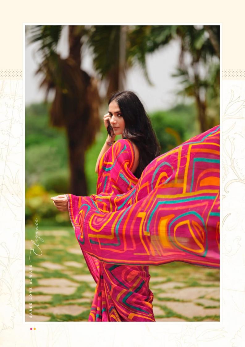 SANSKAR TEX PRINTS PVT LTD CATLOUGE= KASTURI Fabric- Georgette pettern with digital border & blouse Qty- 7 Designs RATE - 485₹ |