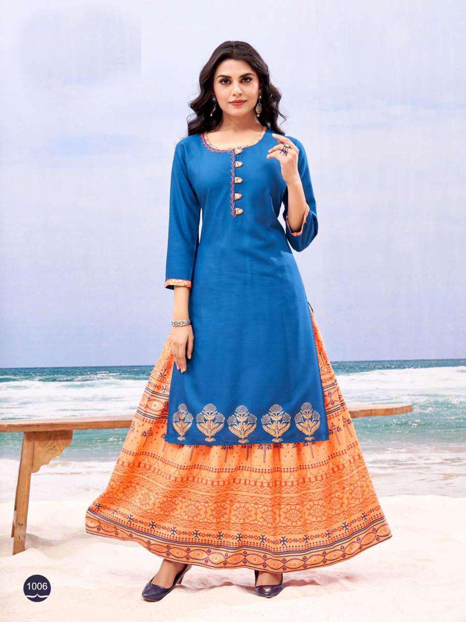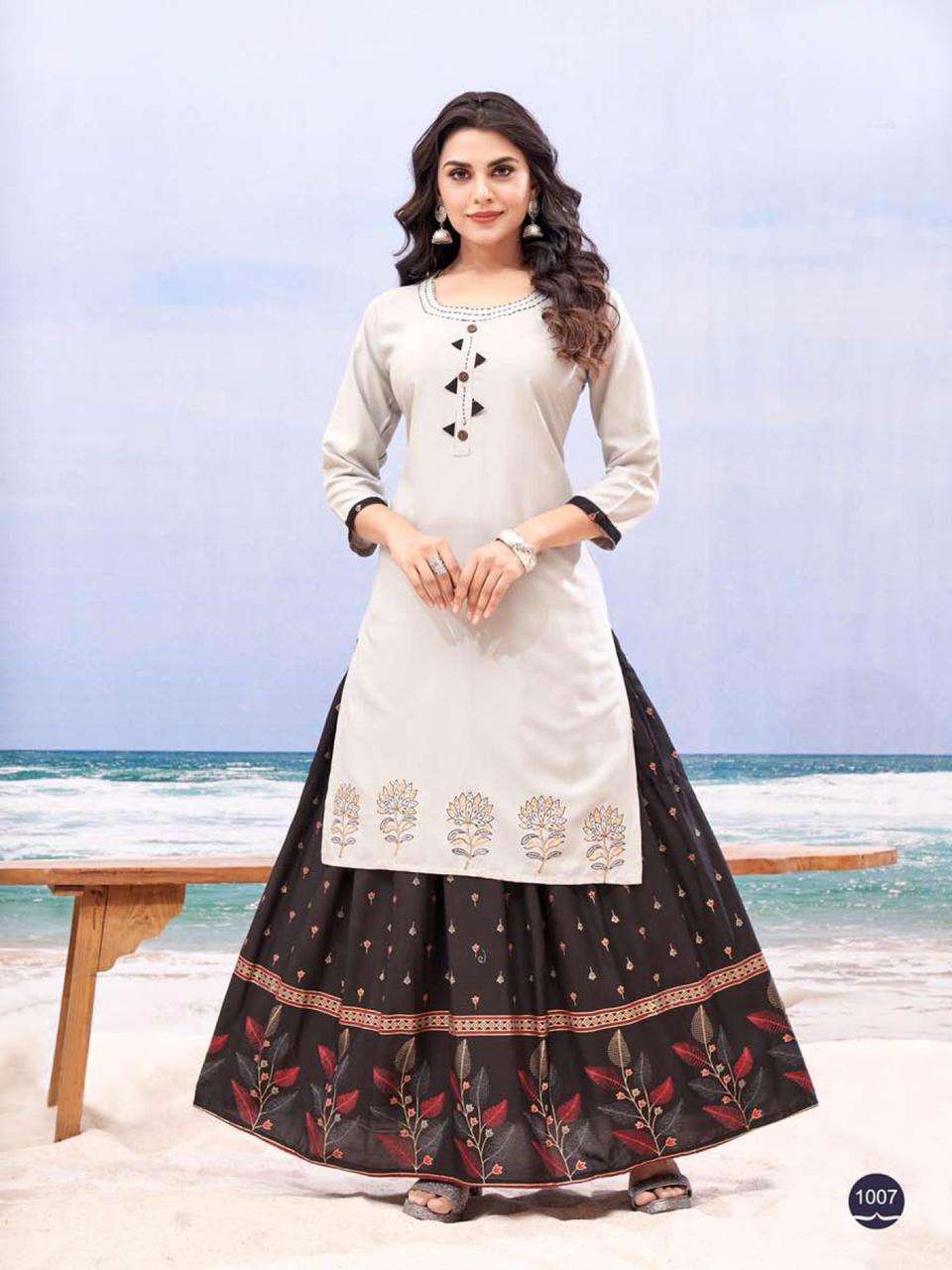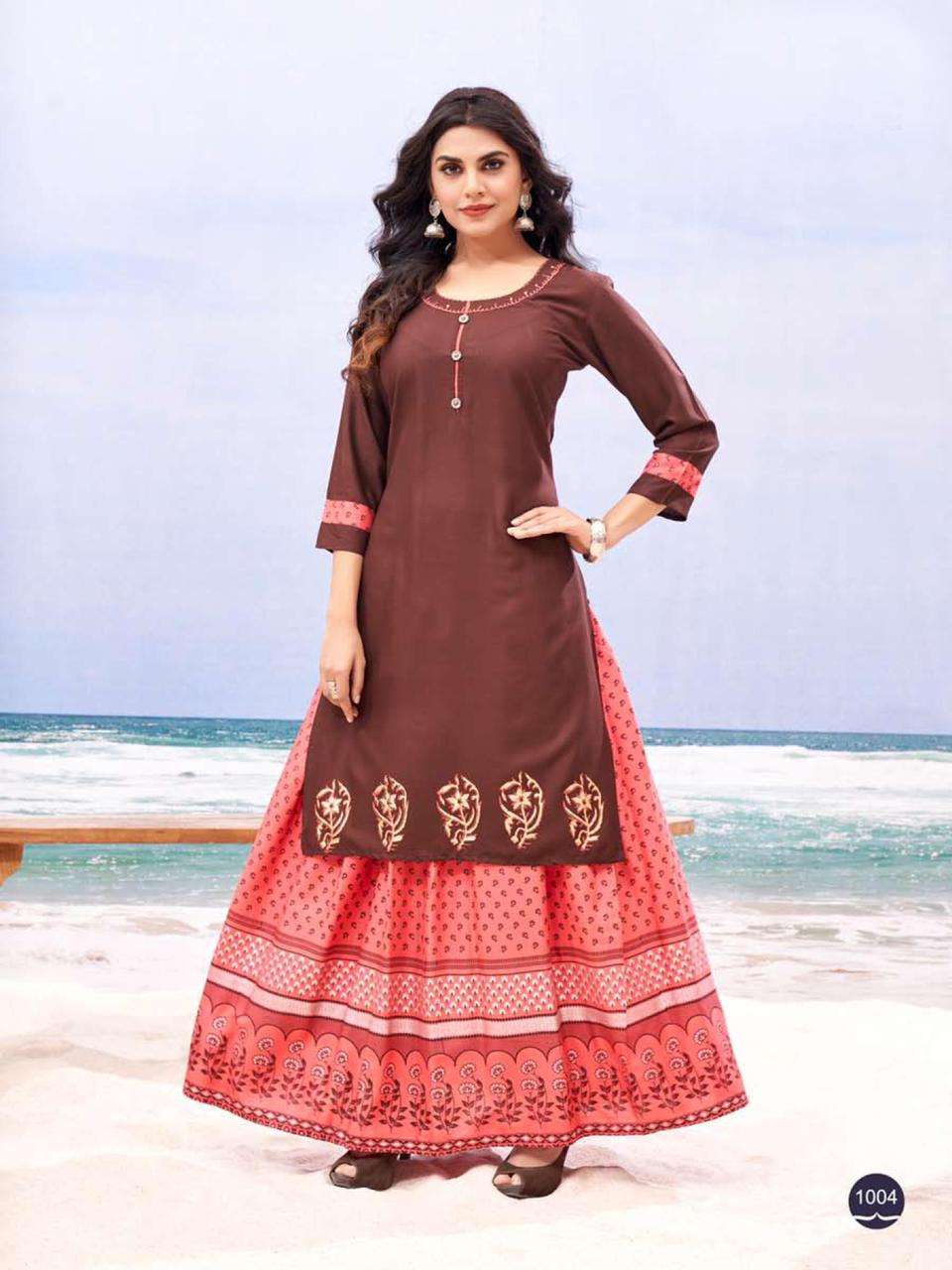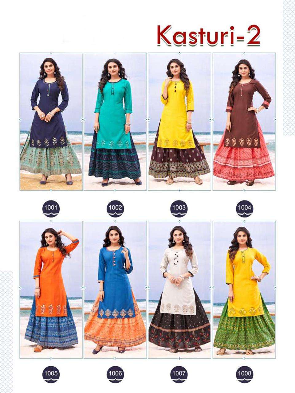 KASTURI VOL.2 HEAVY RAYON 14KG PRINT TOP SKIRT KURTI CATALOG WHOLESALER BEST RATE