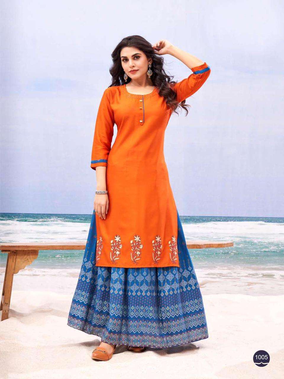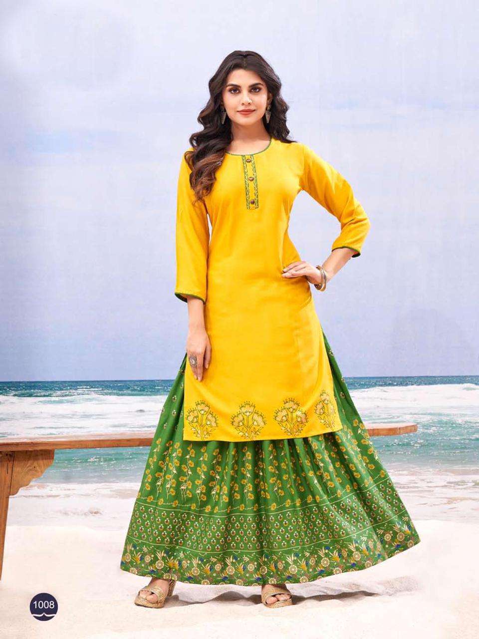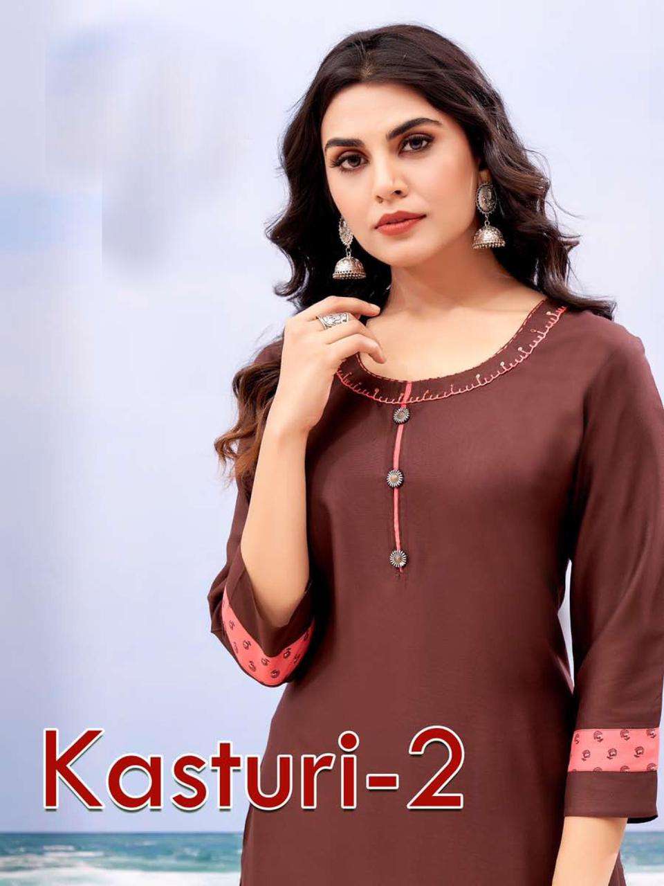 KASTURI VOL.2 HEAVY RAYON 14KG PRINT TOP SKIRT KURTI CATALOG WHOLESALER BEST RATE