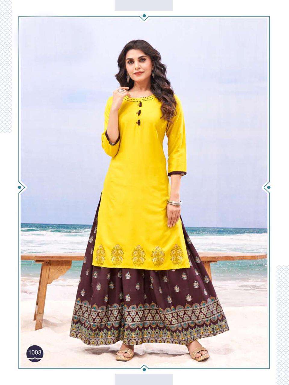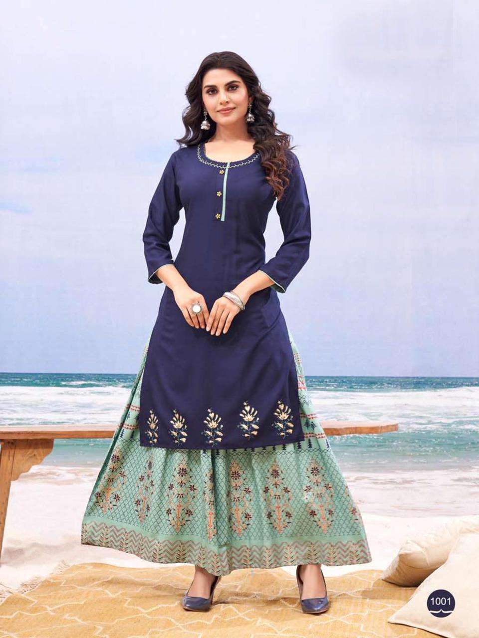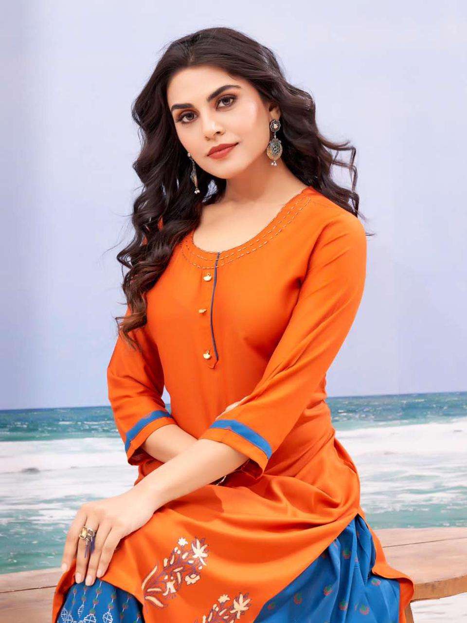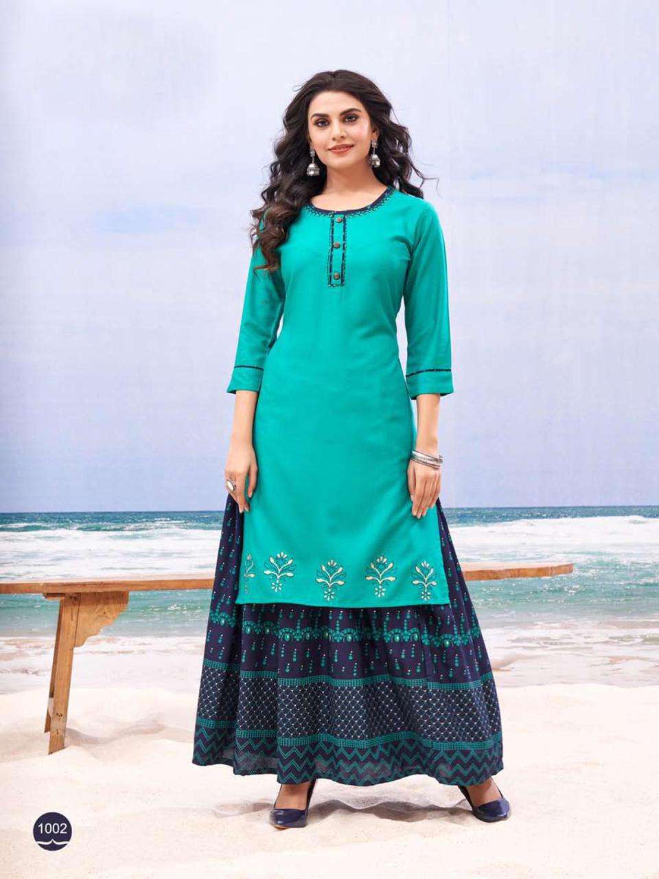 KASTURI VOL.2 HEAVY RAYON 14KG PRINT TOP SKIRT KURTI CATALOG WHOLESALER BEST RATE