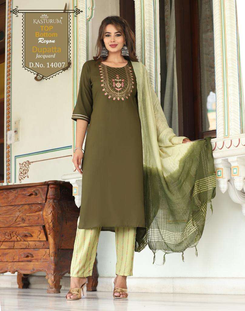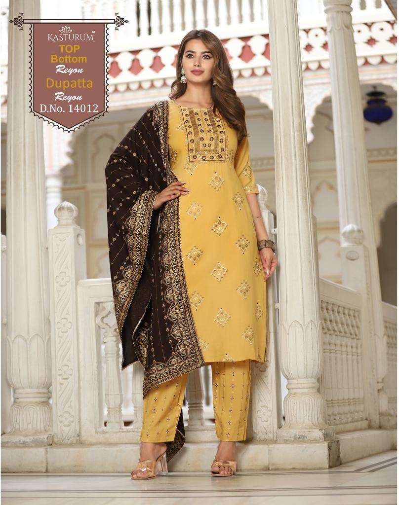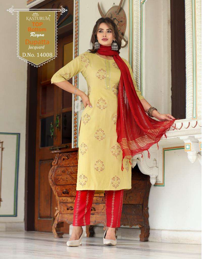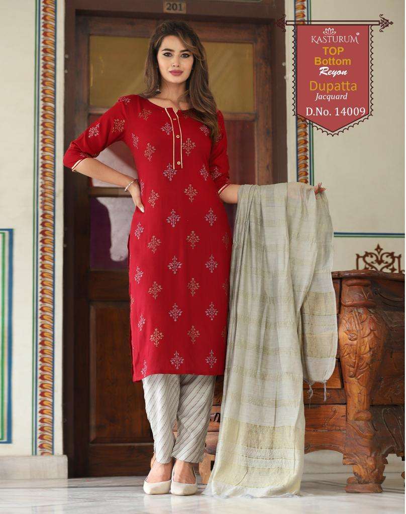 kasturum 14004-140012 readymade rayon kurti with pant and chanderi dupatta combo set