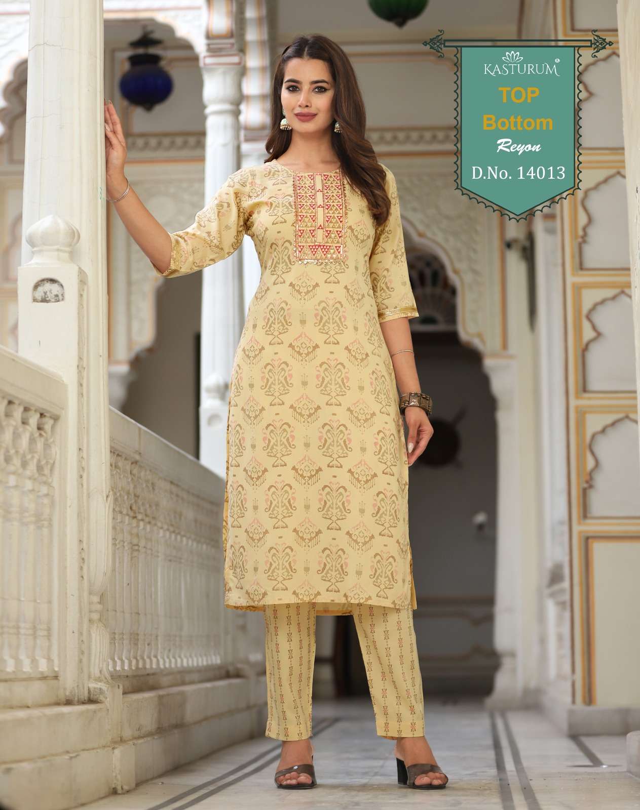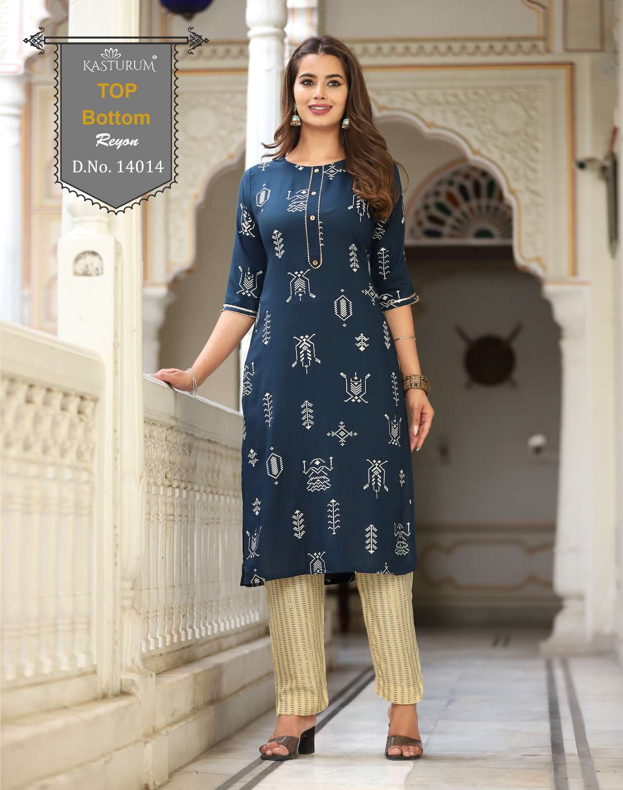 KASTURUM ✅We offer you a unique service of 'PICK AND CHOOSE' ✨Details 👗Fabrics :- ▶️Bottom :- RAYON WITH PRINT 🌈Length :- 44 To 46 ✨Designs :- 4 pcs Rate 390 |