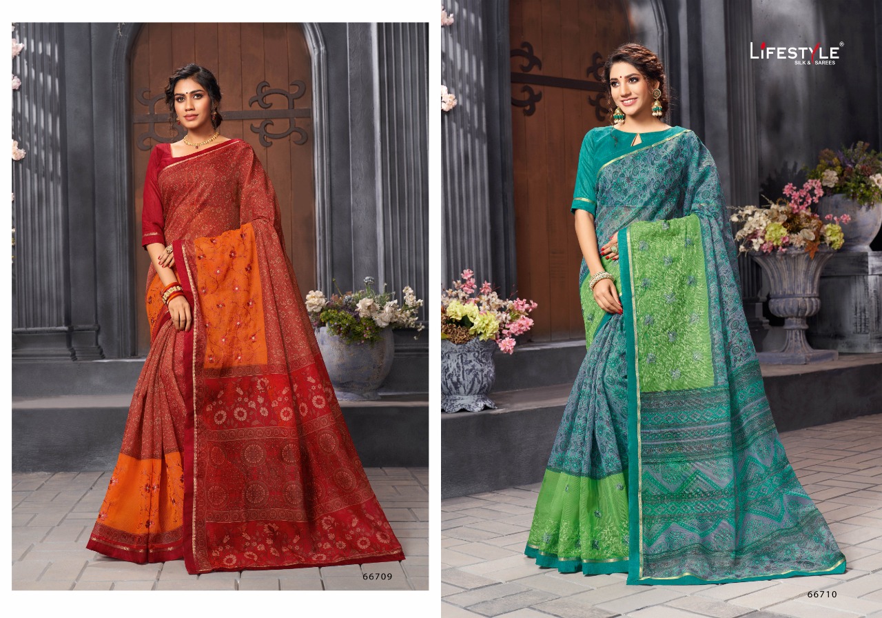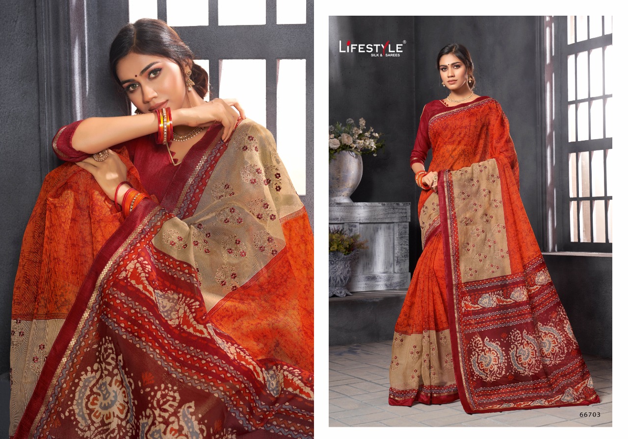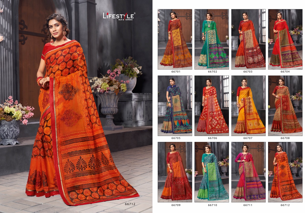 Lifestyle Saree Presents Latest Collection Launched on 18-01-2020. Presenting Beautiful collection of 12 PCS with Unstitched .