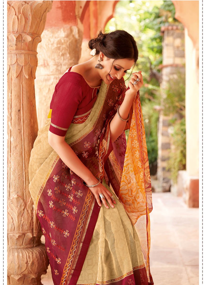 Catalog :- KATHA COTTON Volume :- 19 Fabric :- RAJJO NET Packing :- BOX Price :- 657 per Pcs. Set to set . GST 5 Percent Extra Cut/Length :- 6.3 *COTTON PRINTED SAREE WITH PANEL WORK & BANGALORI BLOUSE * PACKING - IN THIS WEEK |