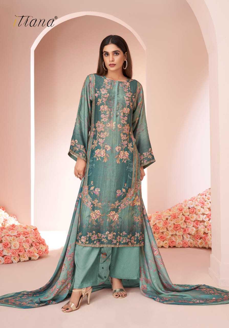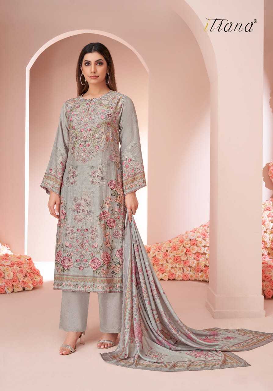 SAHIBA ITRANA TOP - MUSLIN SILK DIGITAL PRINT WITH THREADLE WORK BOTTOM - MULBERRY SATIN DUPATTA - COTTON BUTTI DIGITAL PRINTED DUPATTA RATE: |