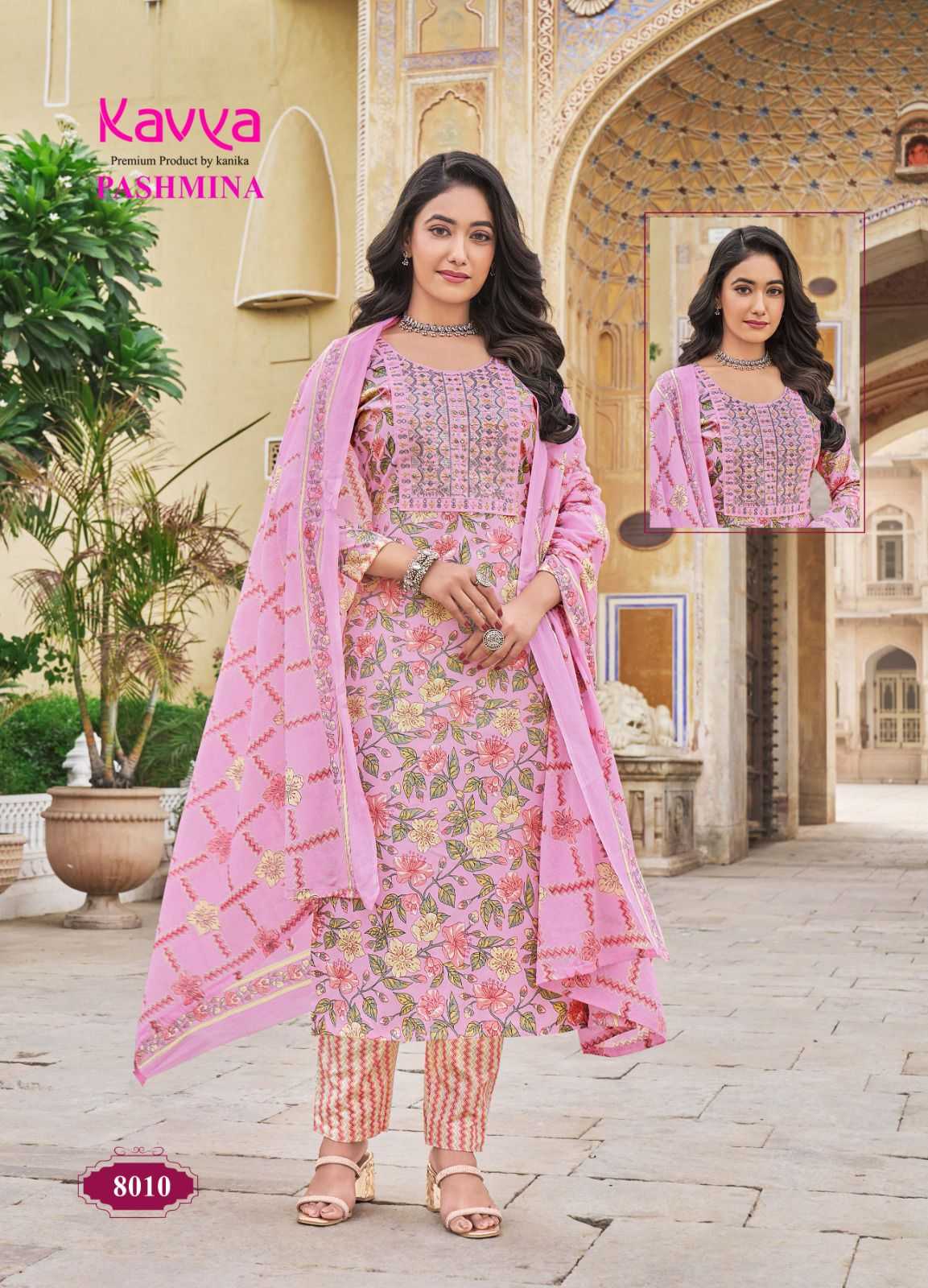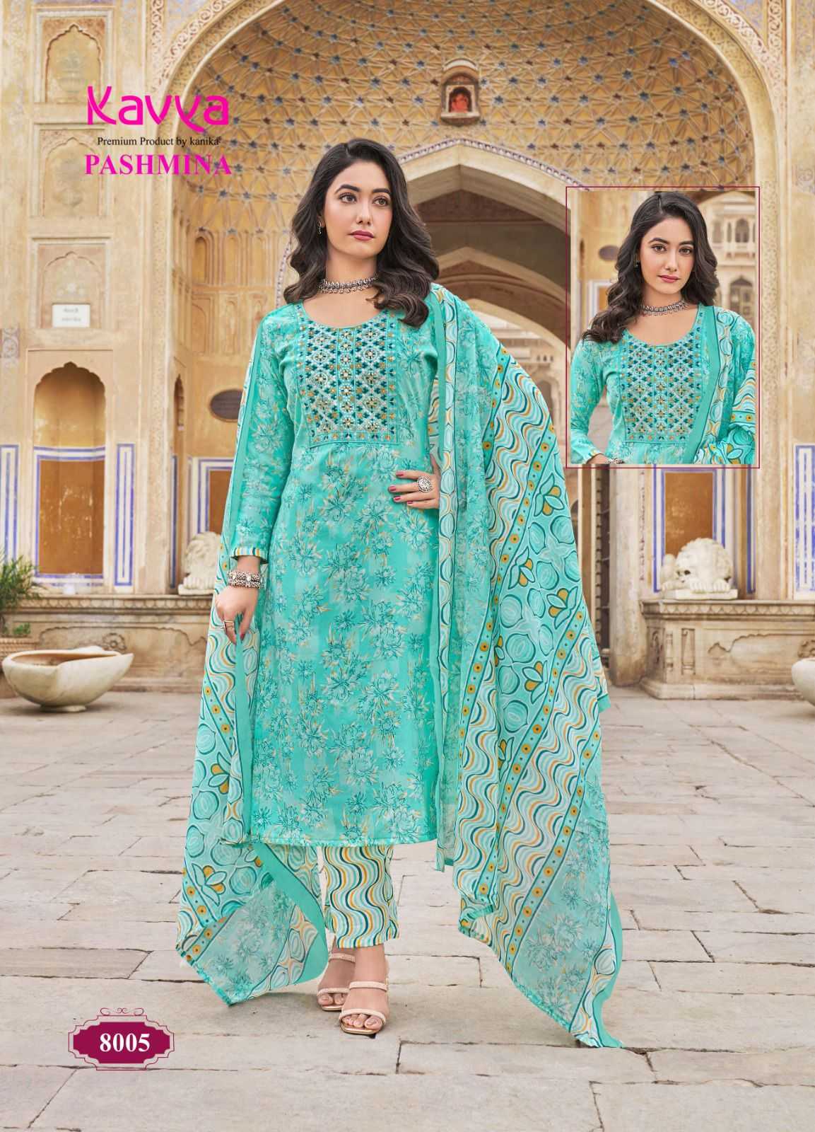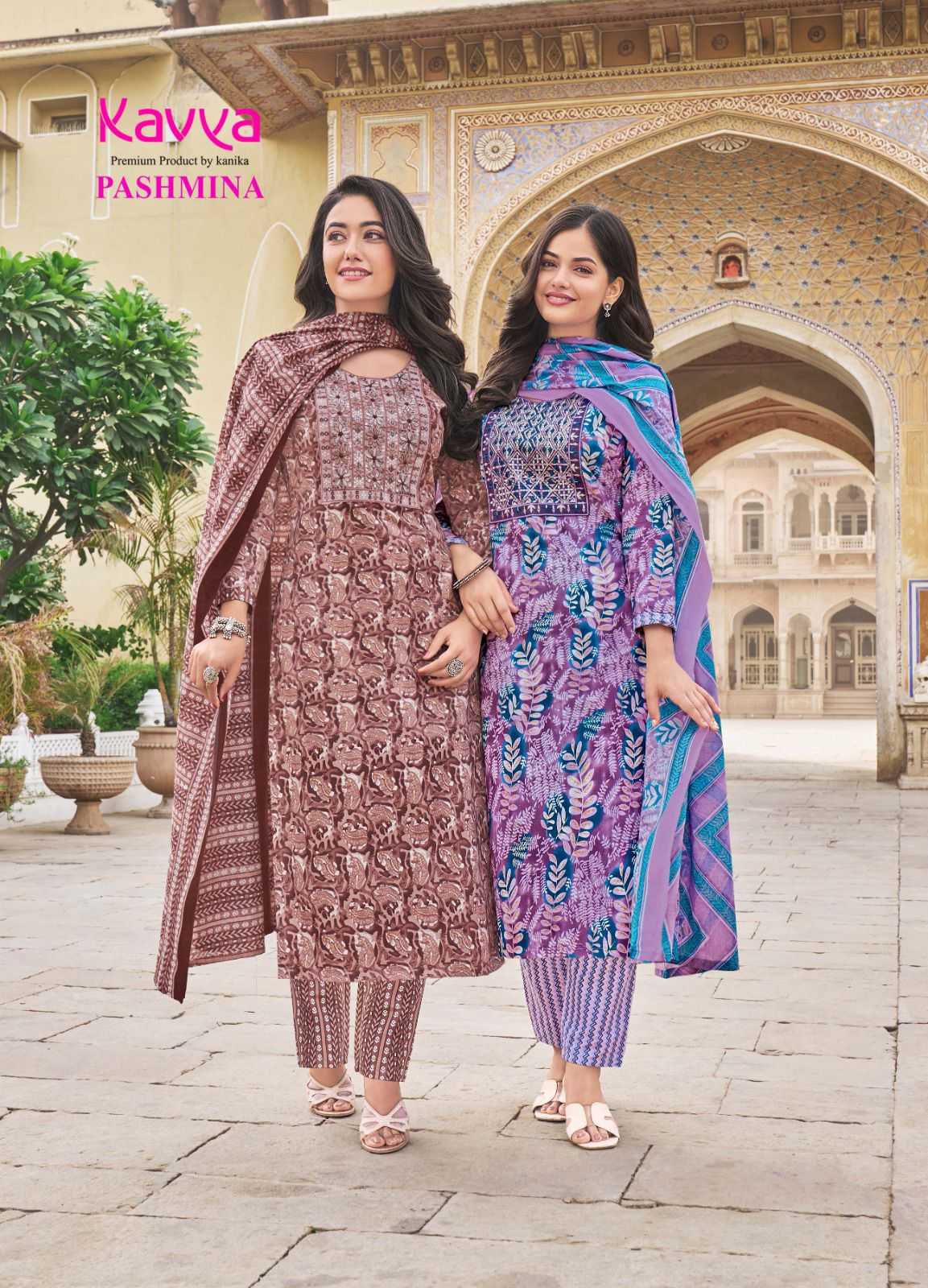 kavya pashmina vol 8 cotton lining fancy casual wear readymade kurti pant with dupatta