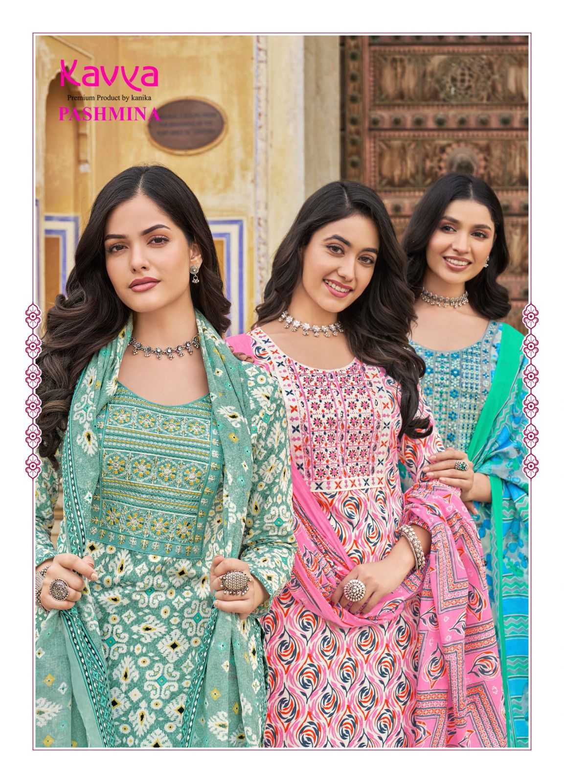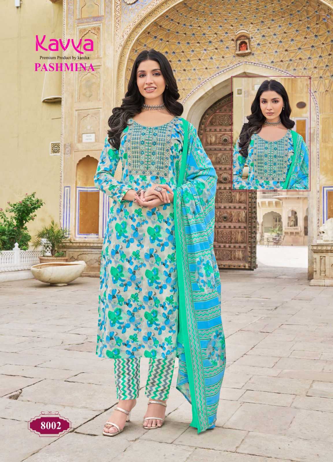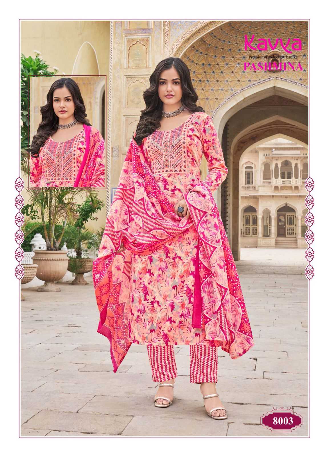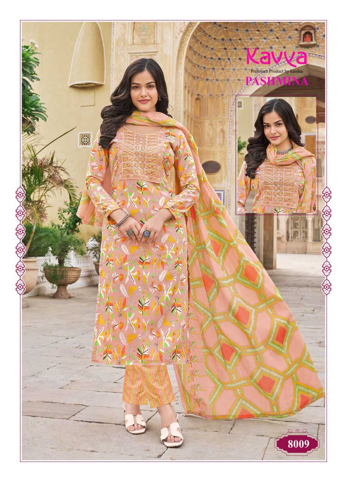 kavya pashmina vol 8 cotton lining fancy casual wear readymade kurti pant with dupatta