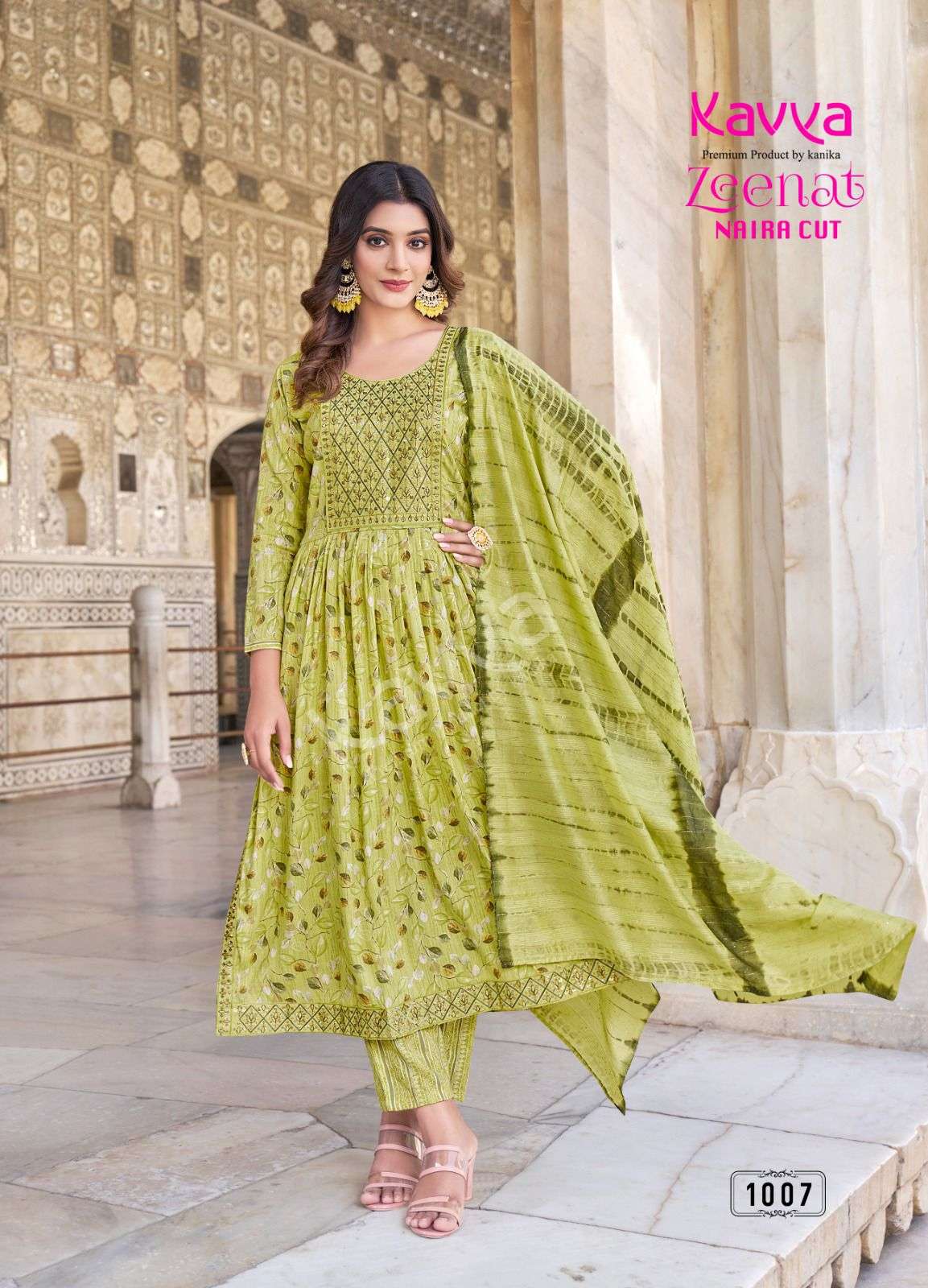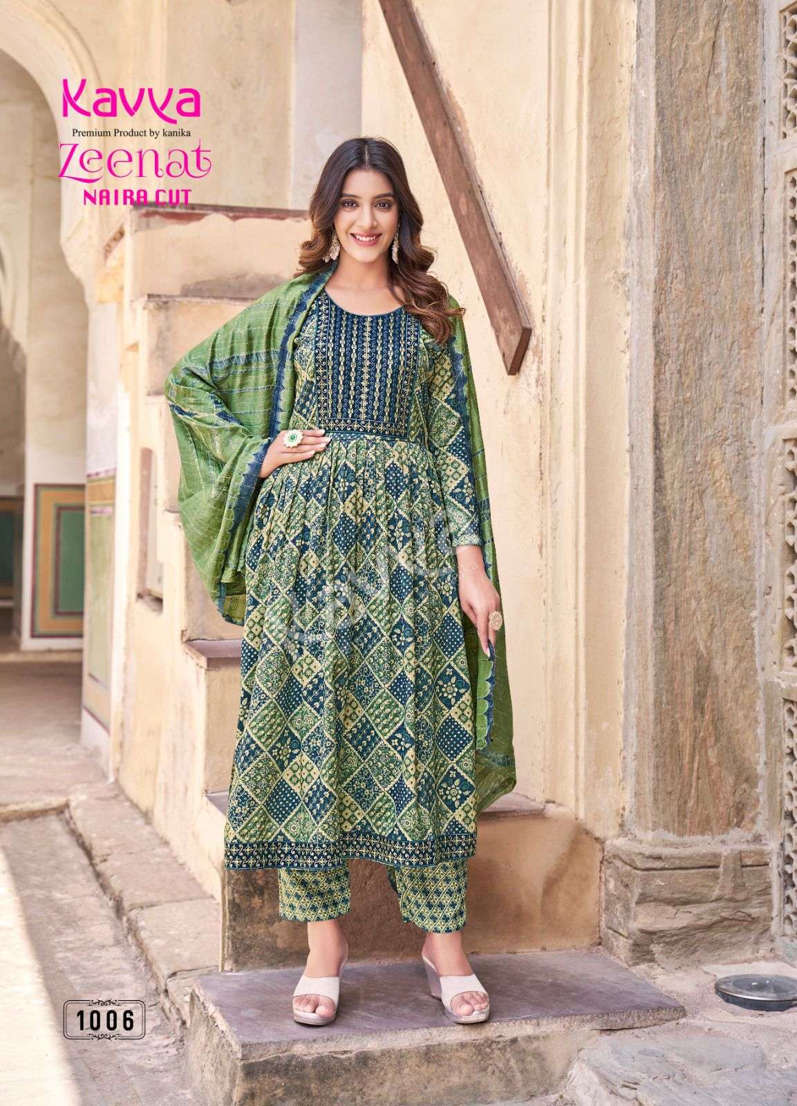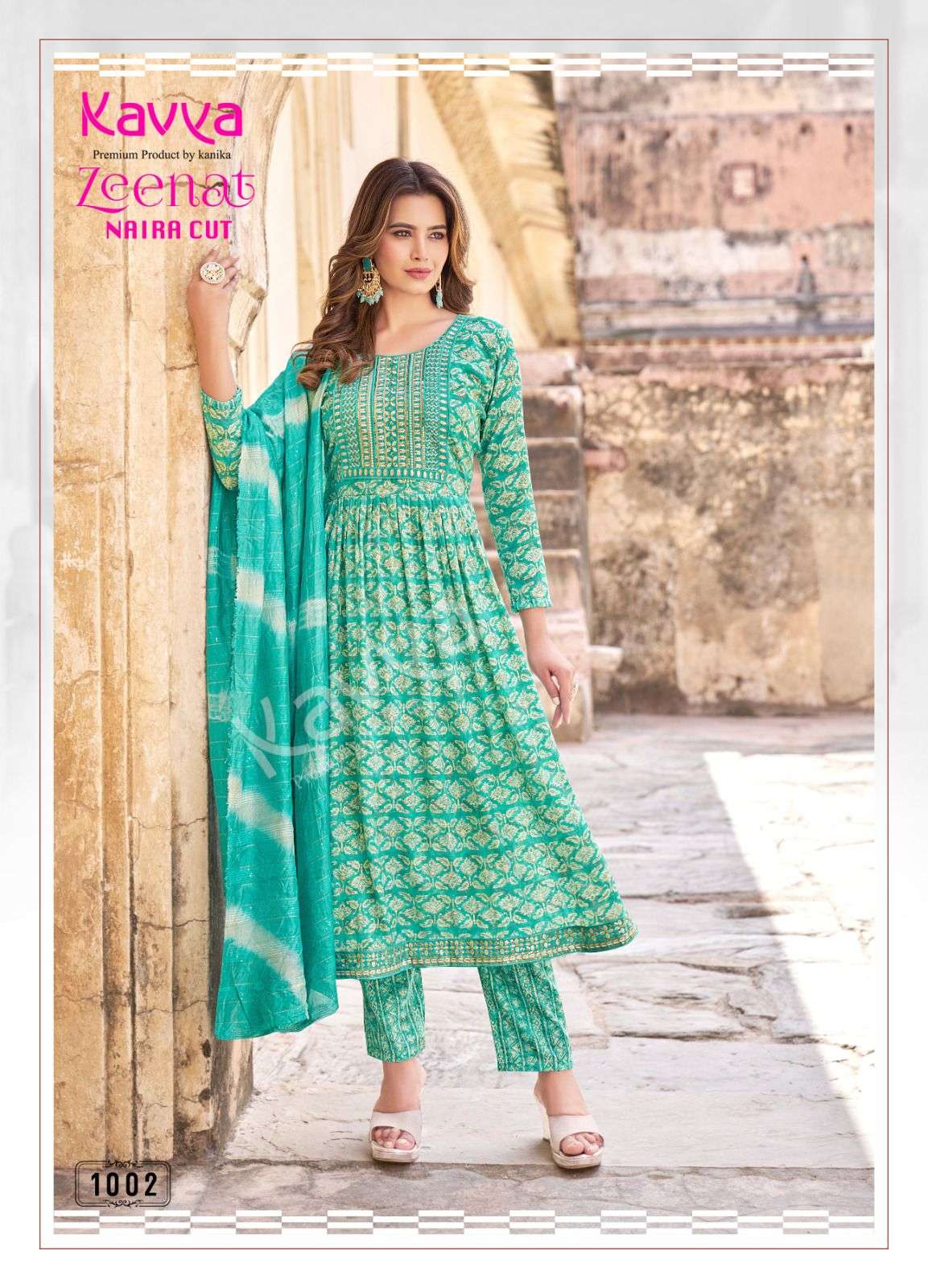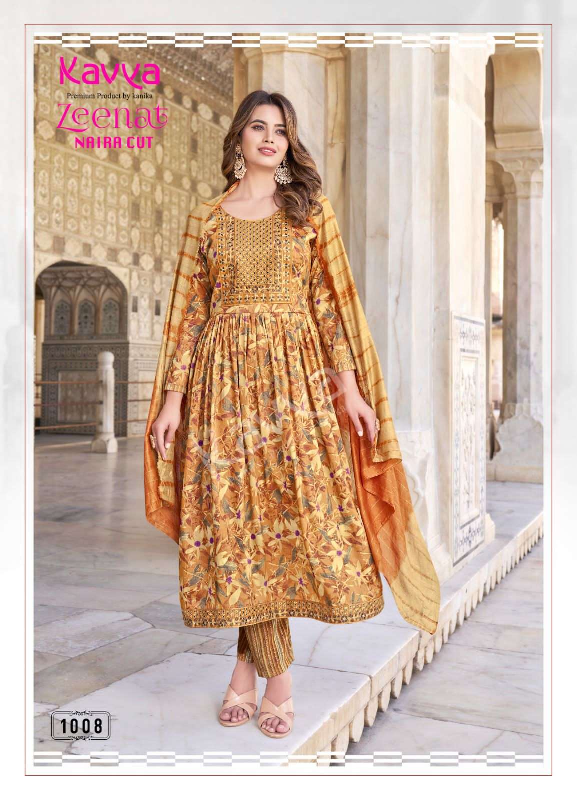 Launching new catalouge KAVYA ZEENAT VOL 1 *STYLE * : Nayra cut FABRIC : capsule foil print top and capsule print bottom with chanderi cotton dupatta Top : Embrodiery on neck and daman with sides with 44 inch height bottom : comfort fit premium quality stiched pants Limited stock ! Book fast RATE : 675 Despatching aftr 1 week |