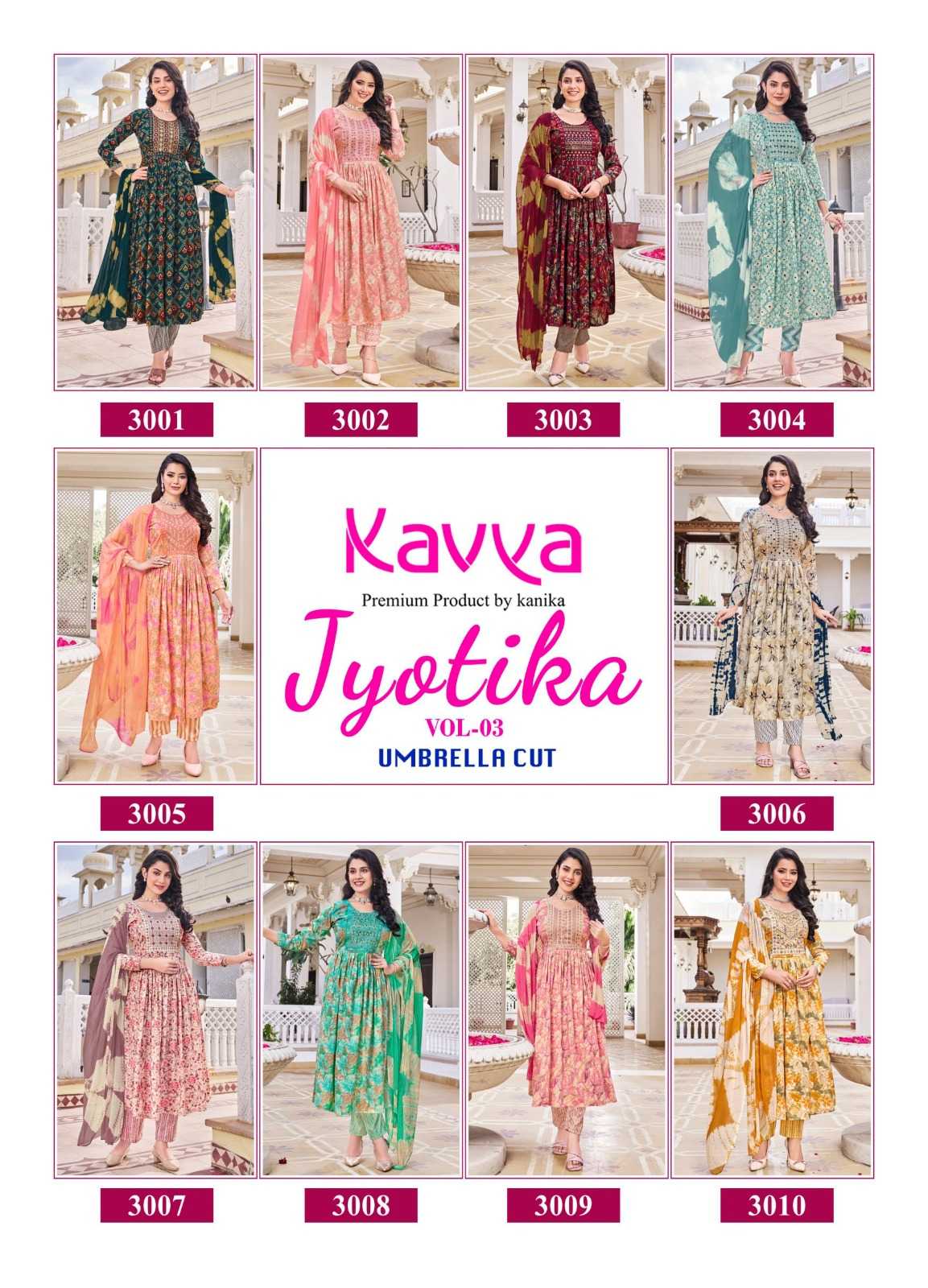 kavya presents jyotika vol 3 fashionable umbrella cut full stitch capsule salwar suit