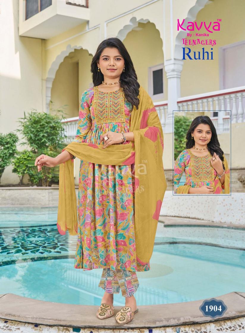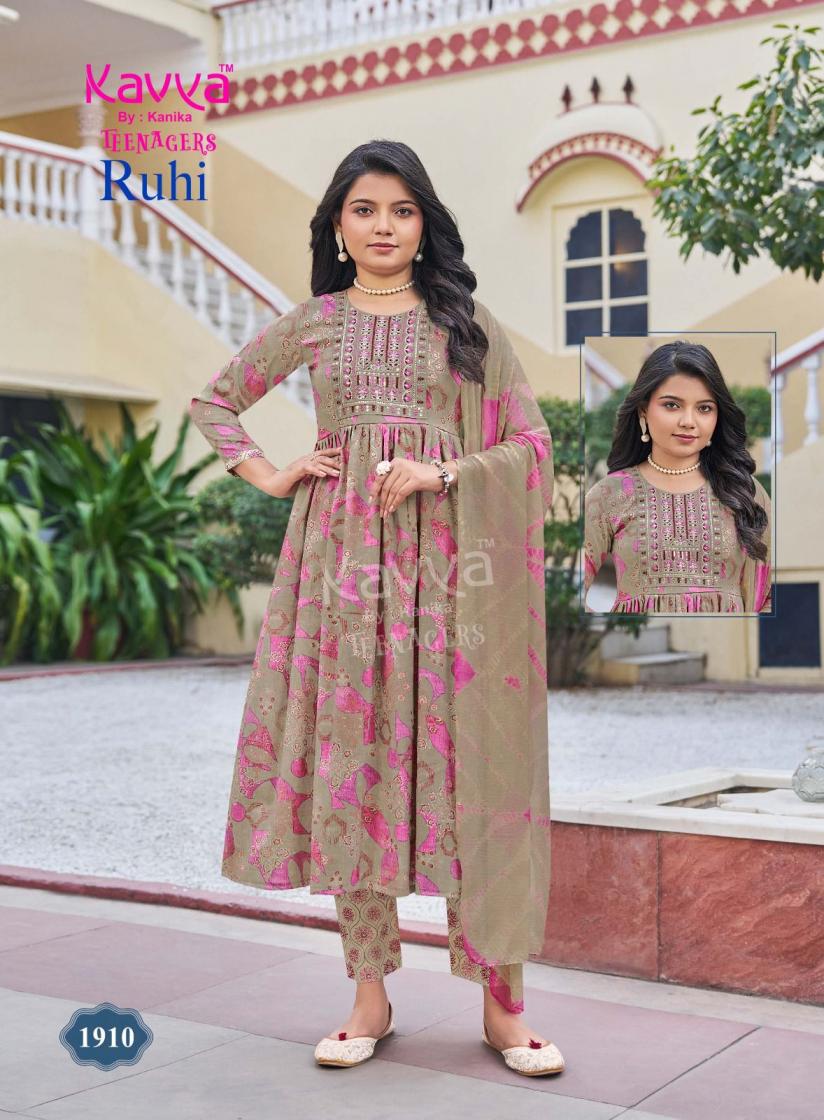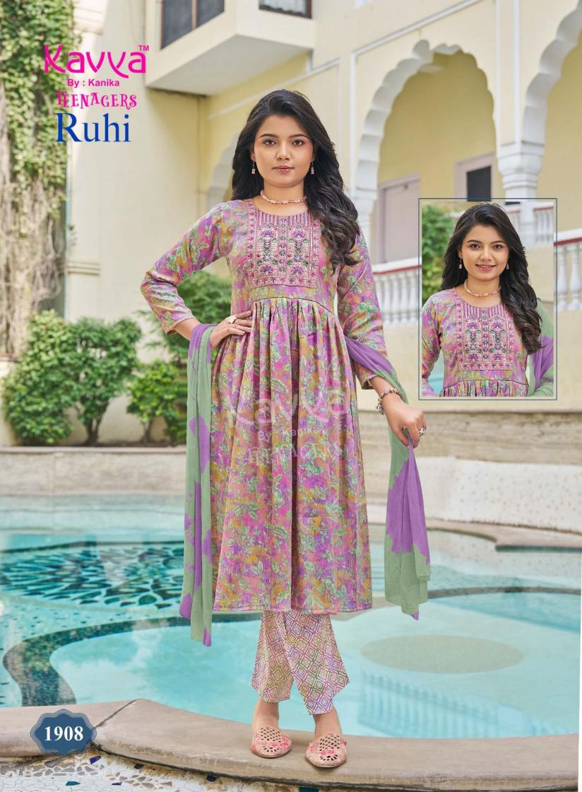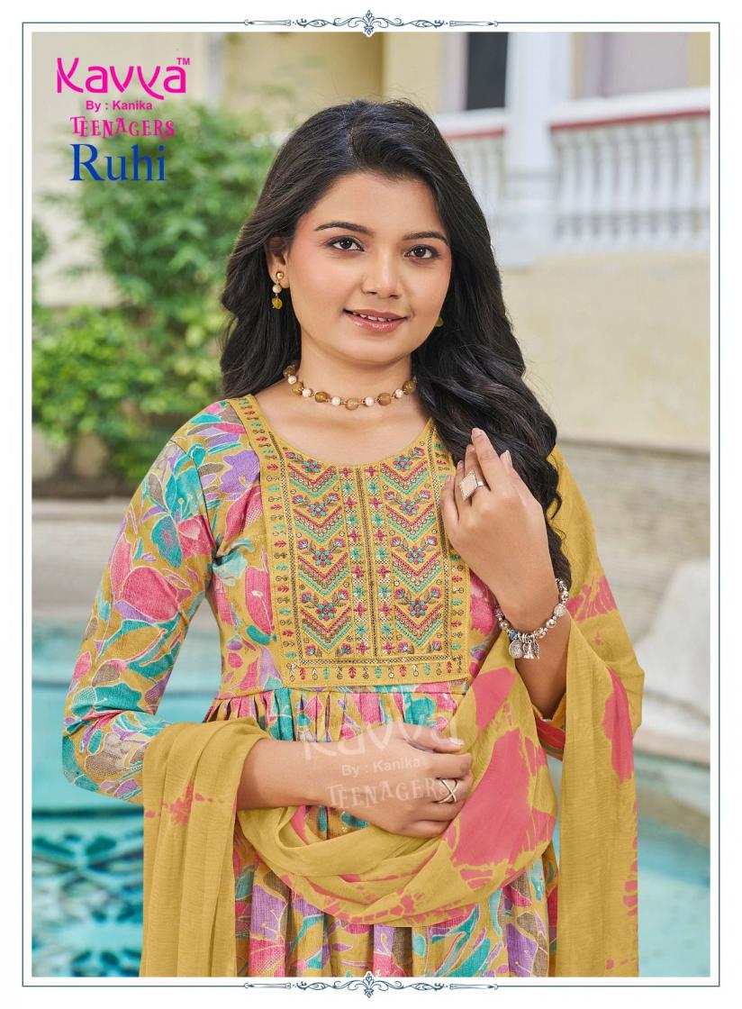kavya ruhi vol 19 fully stitch capsule print umbrella cut unique combo kids dress