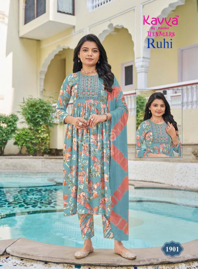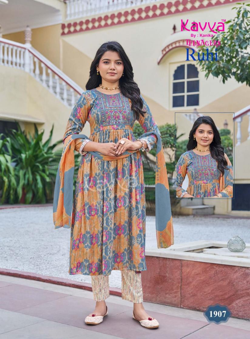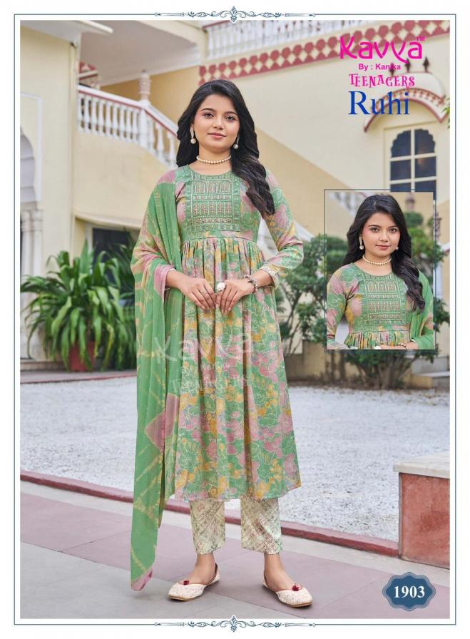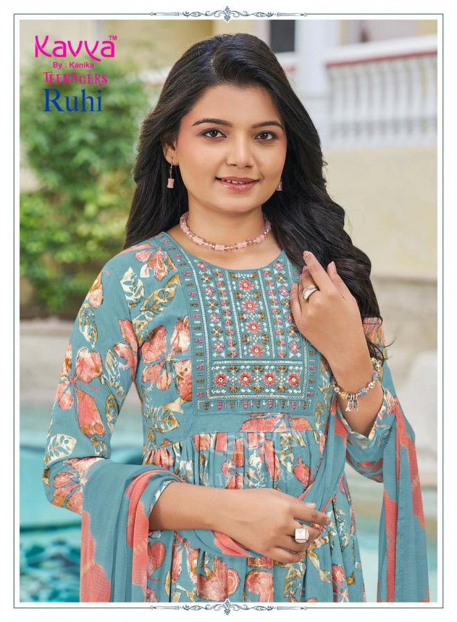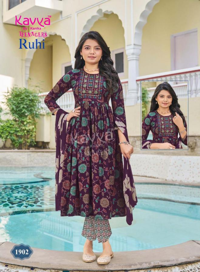 kavya ruhi vol 19 fully stitch capsule print umbrella cut unique combo kids dress